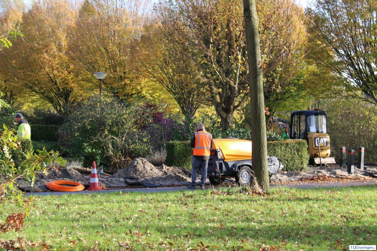 De oorzaak was graafwerkzaamheden bij de aanleg van glasvezelkabels. Netbeheerder Enexis kwam ter plaatse om het lek op te sporen en te dichten.