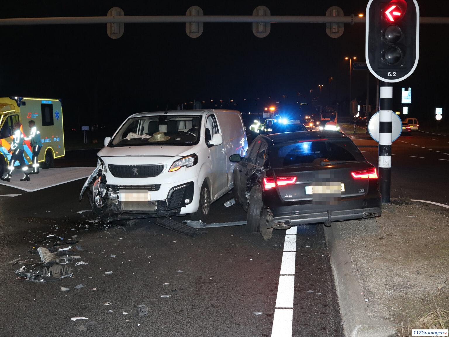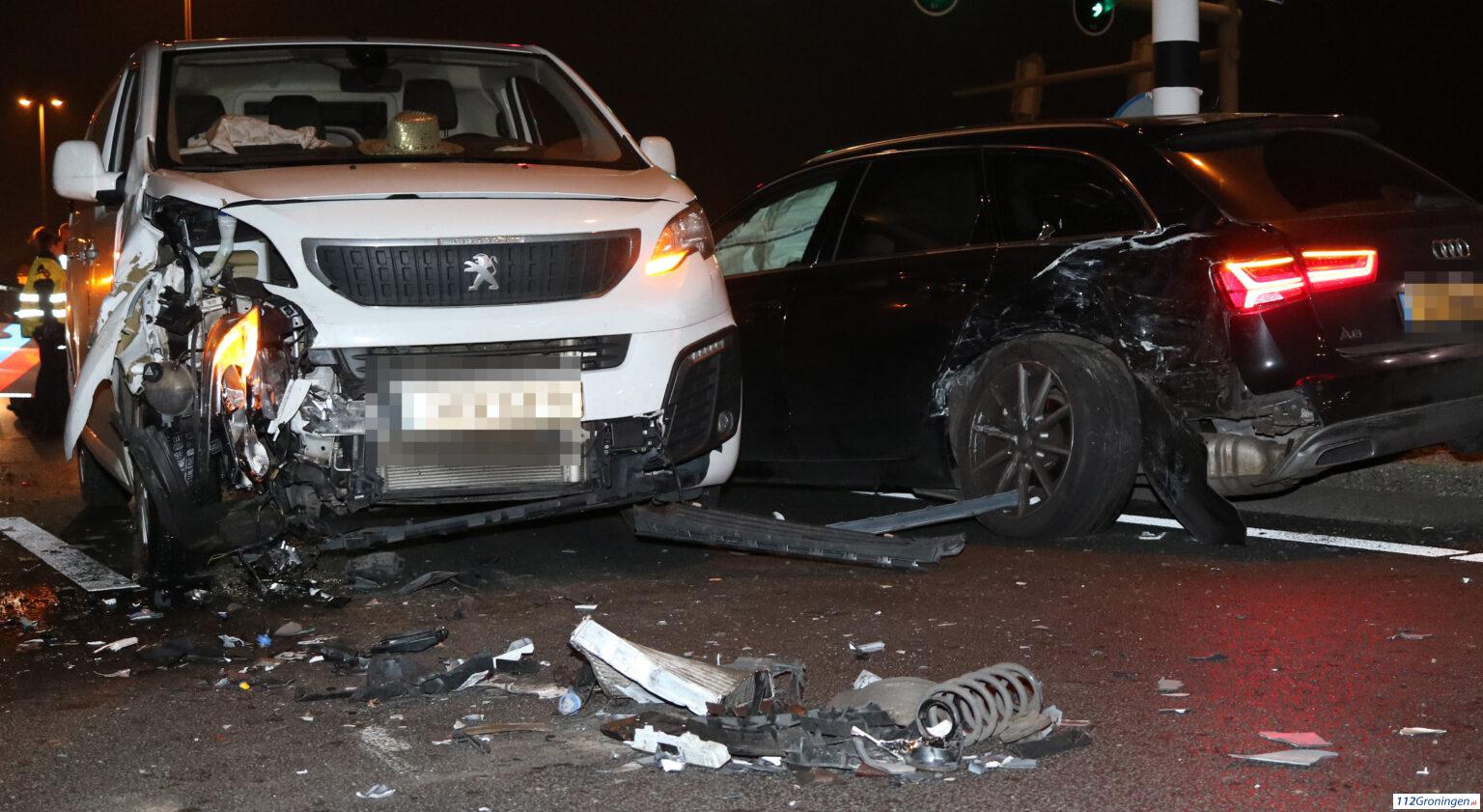 Groningen – Op de Europaweg/ Verlengde Bremerhavenweg heeft vrijdagavond om 18:15 uur een forse aanrijding plaatsgevonden tussen twee auto’s. De schade is groot.