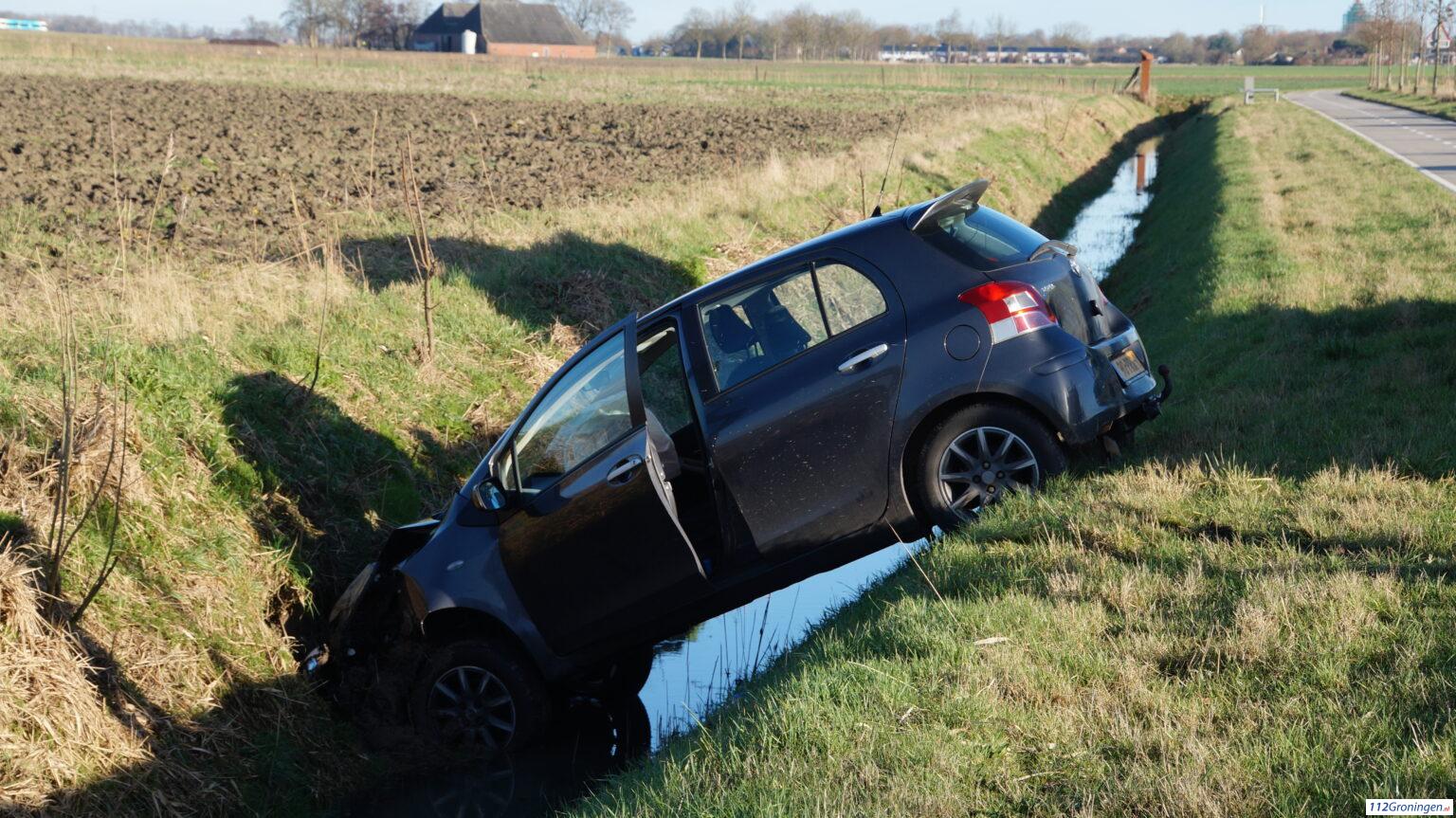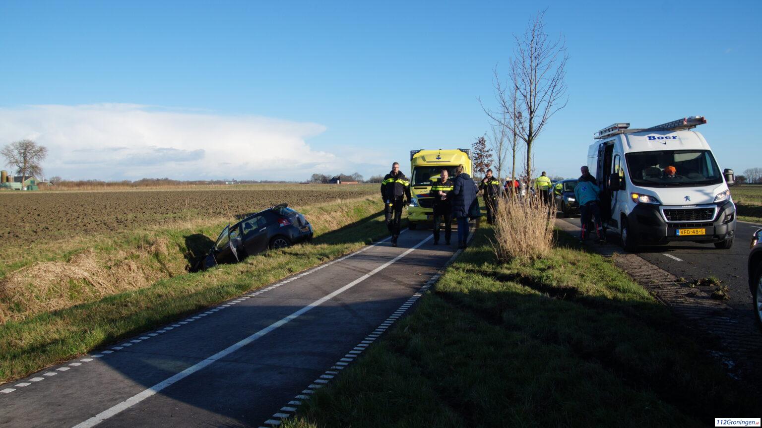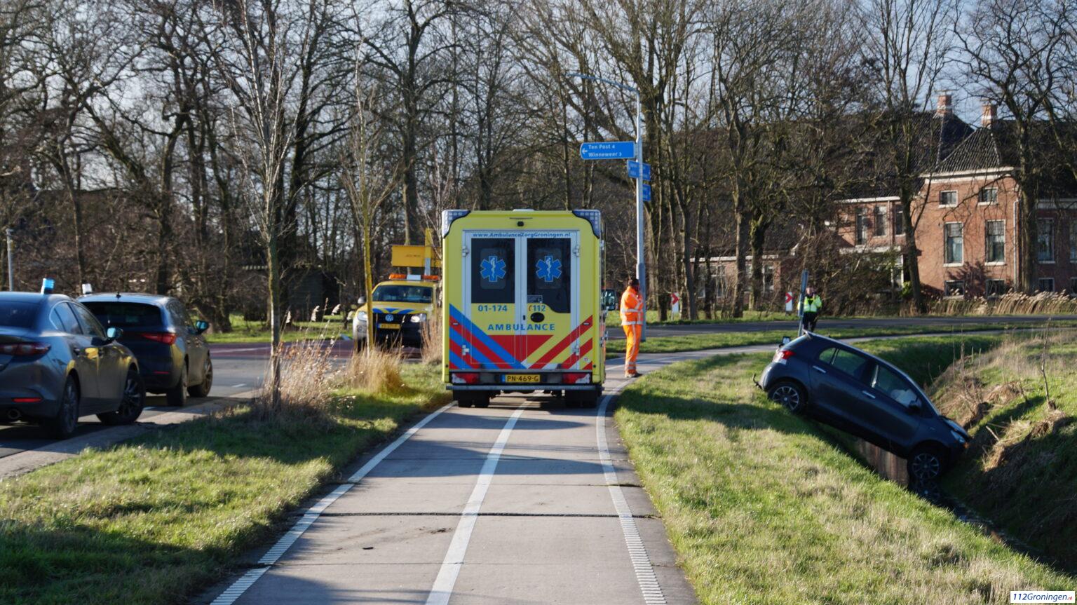 De auto lag in een sloot de bestuurder werd gecontroleerd in de ambulance. Vermoedelijk raakte de oudere man de macht over het stuur kwijt. De man werd overgebracht naar een ziekenhuis.
