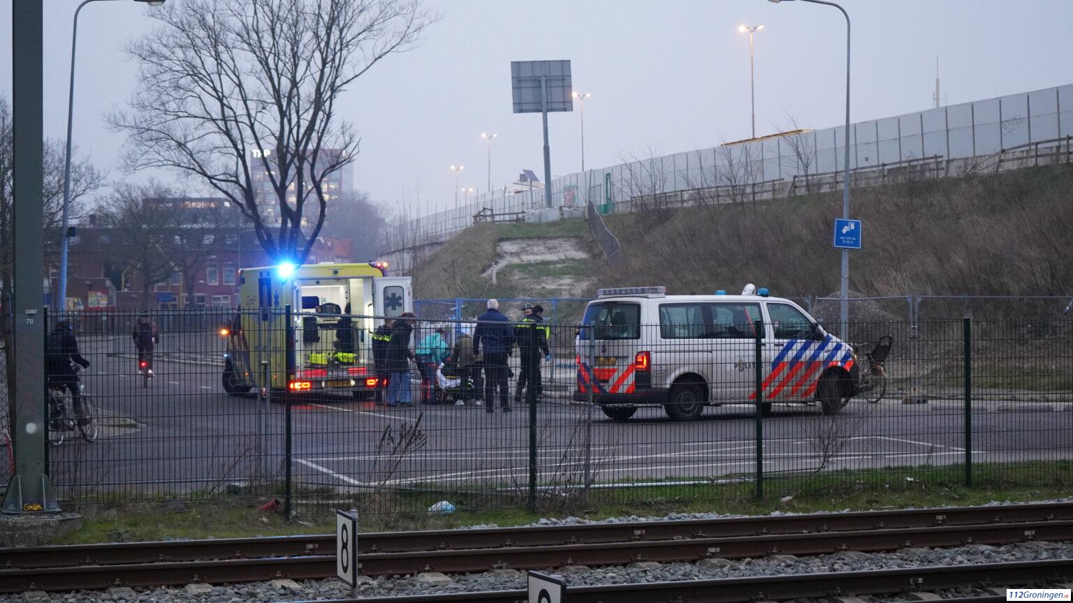 Groningen – Op de kruising Verlengde Lodewijkstraat /Esperantosstraat heeft woensdagmorgen naast het spoorvak een eenzijdige aanrijding plaatsgevonden met een fietser.