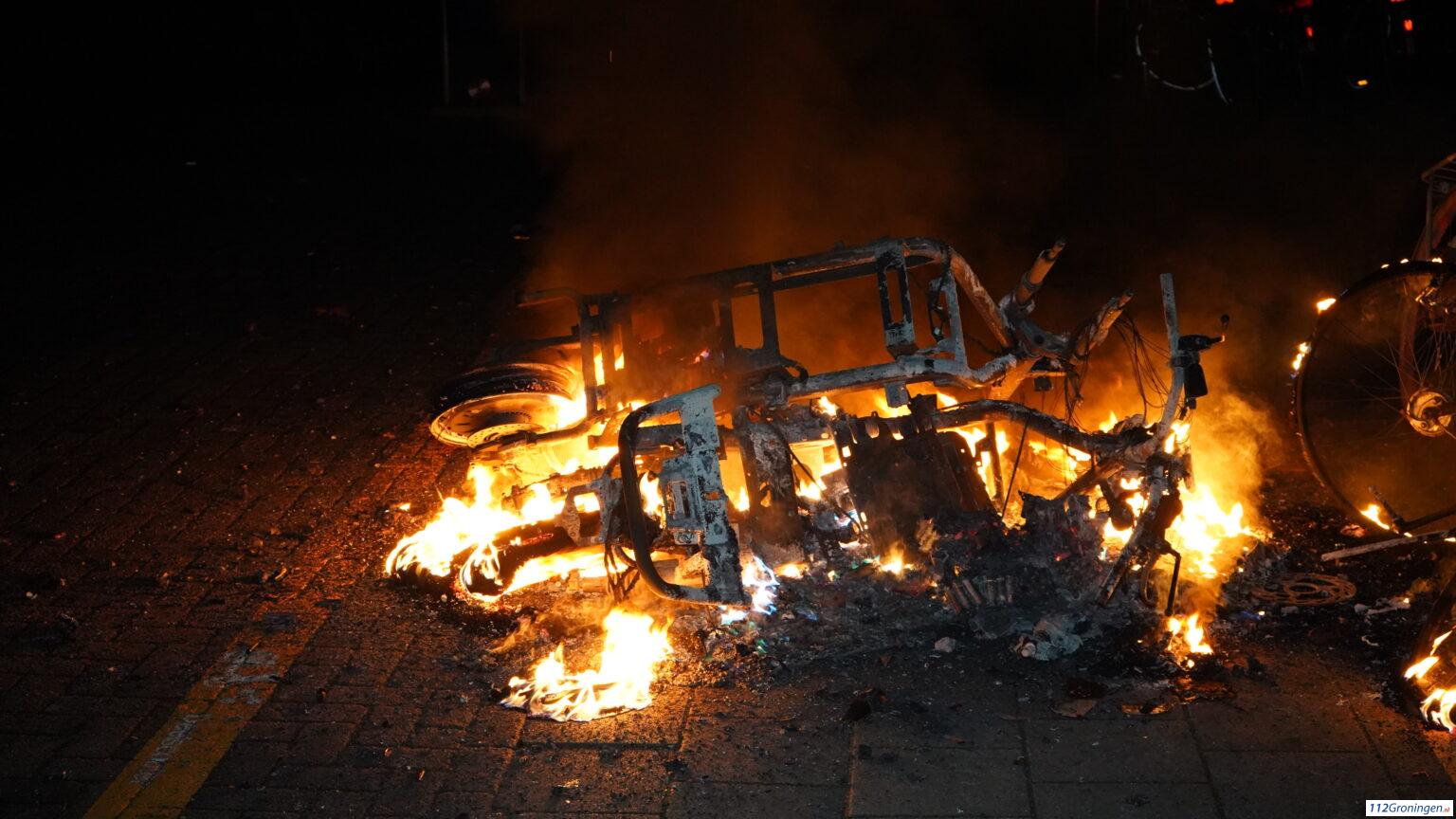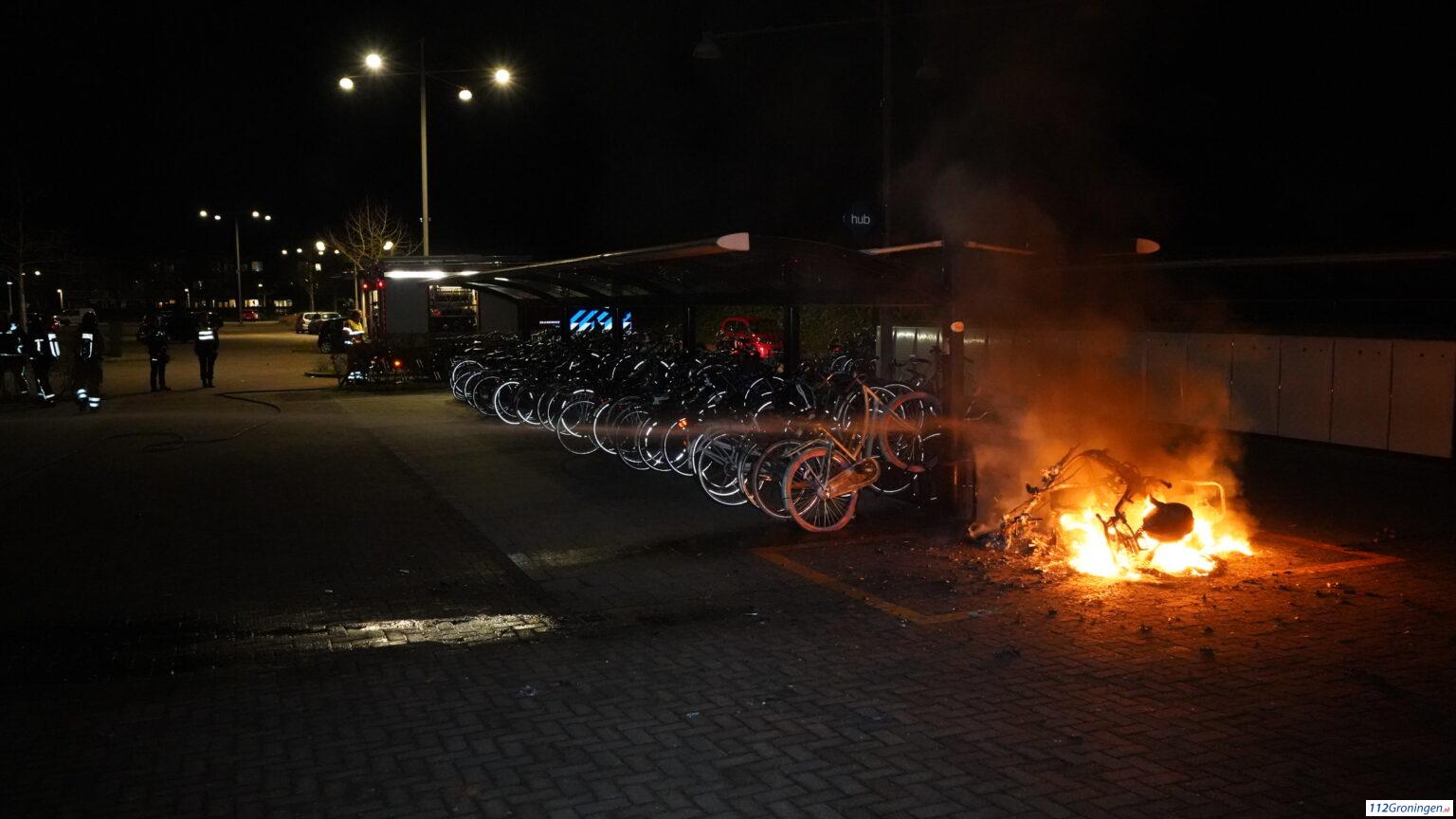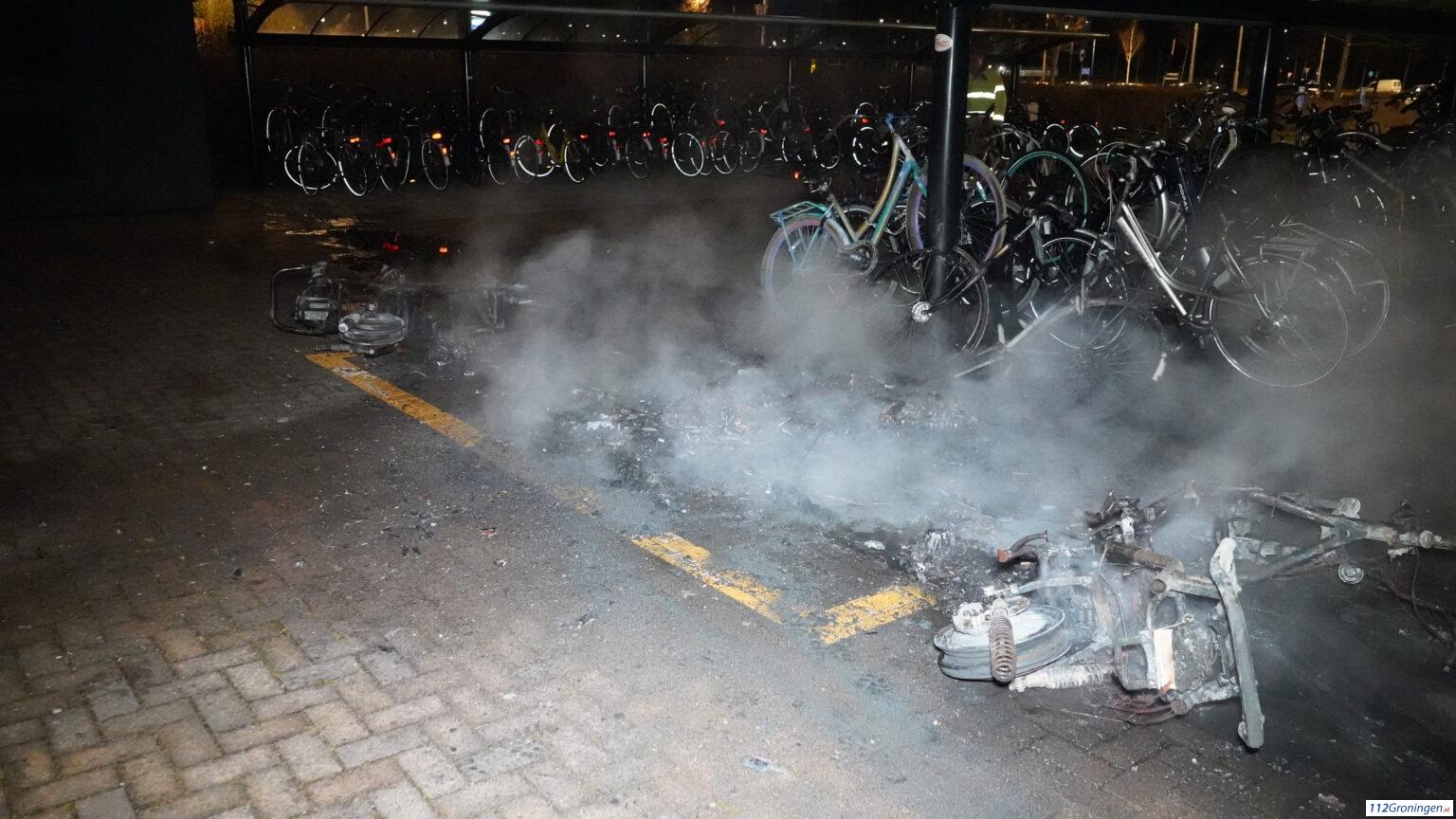 Haren – Aan de Warmoltslaan bij P+R Haren heeft vrijdag op zaterdagnacht om 04:10 uur een forse buitenbrand gewoed, Ter plaatse bleek het te gaan om twee deelscooters van CHECK en een aantal fietsen.