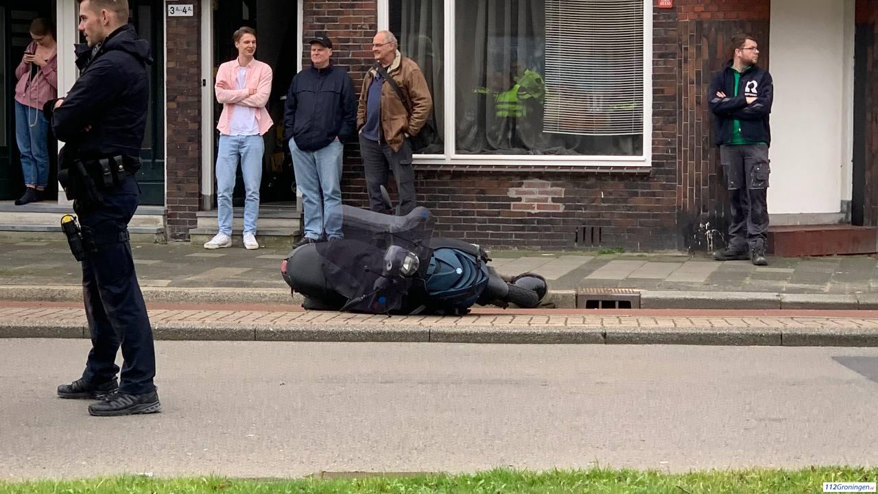 Agenten besloten dinsdagmiddag om een scooter op de Korreweg te onderwerpen aan een controle, omdat er geen helm gedragen werd. Toen duidelijk werd dat de politie de scooter in de smiezen had, stapte de bijrijder af en zette het op een lopen.