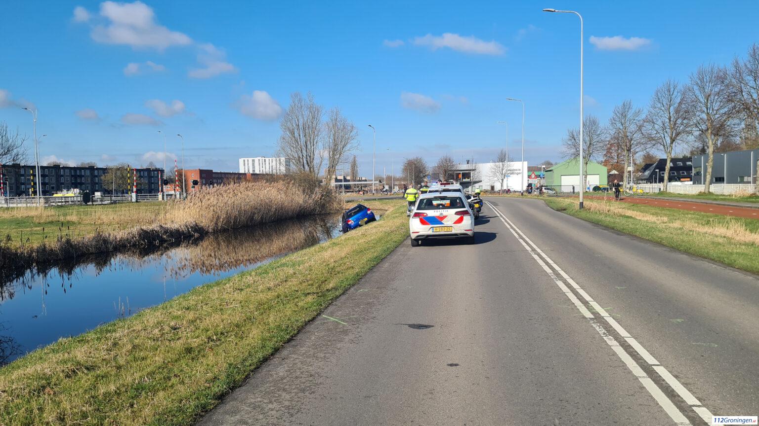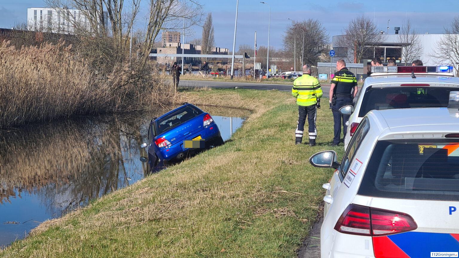 Groningen – Bij de Oostersluis is aan het einde van de dinsdagochtend een auto in een sloot beland. Men dacht eerst aan het kanaal.
