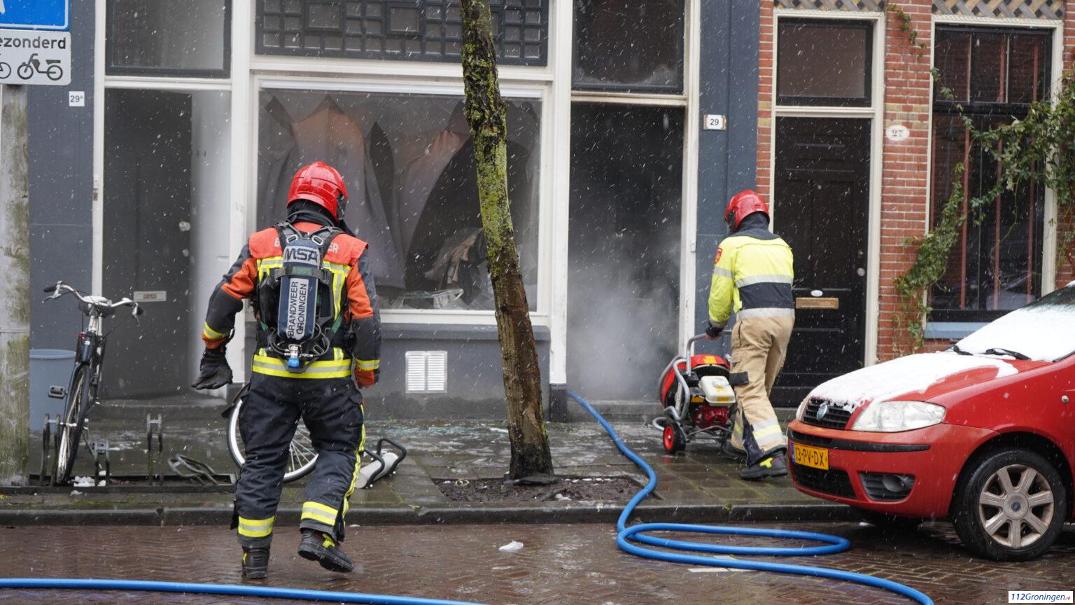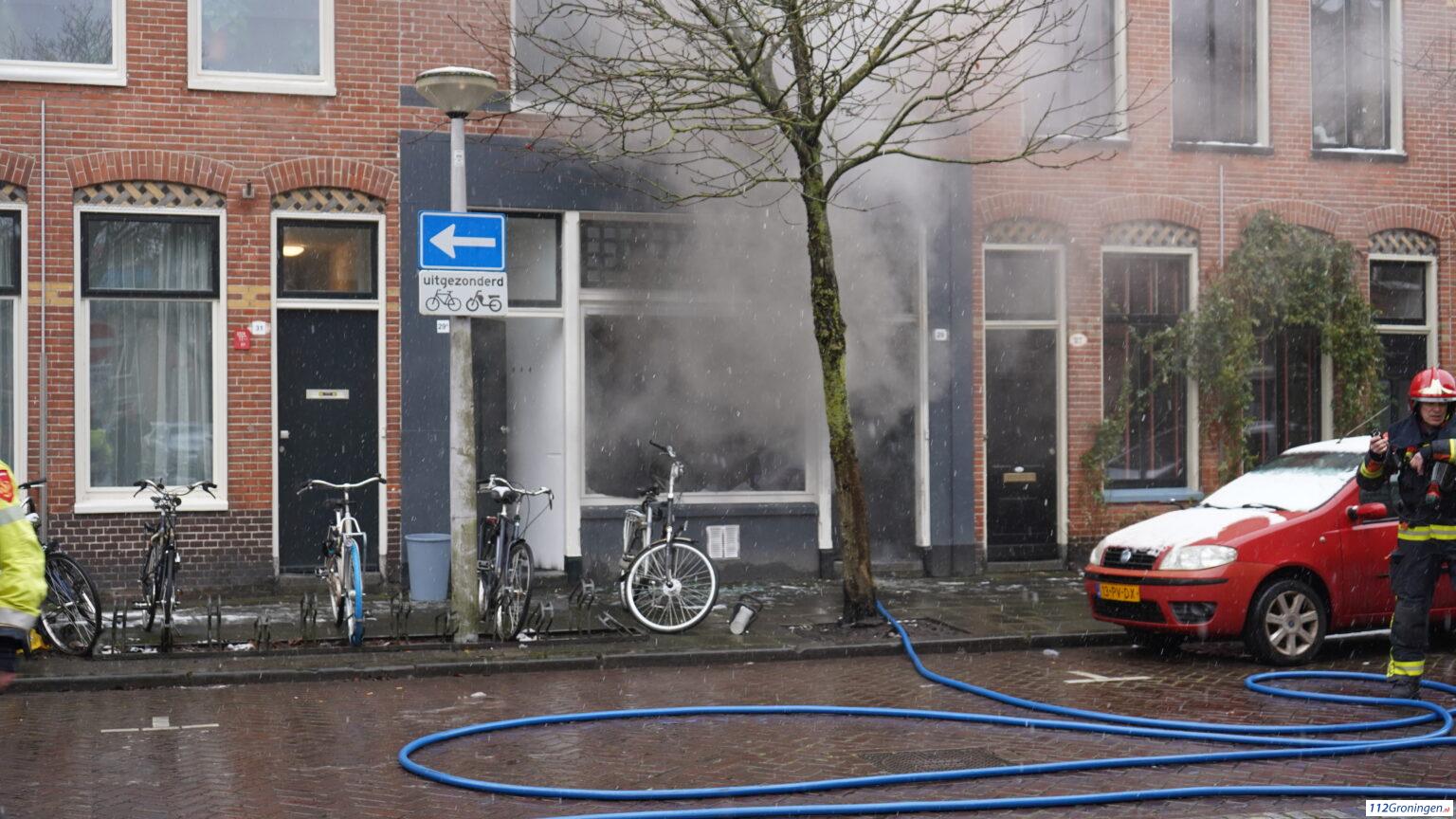 Groningen – Aan de Van Sijsenstraat in de Oosterpoortbuurt woedde vrijdagmiddag om 14:10 uur een flinke brand in een woning.