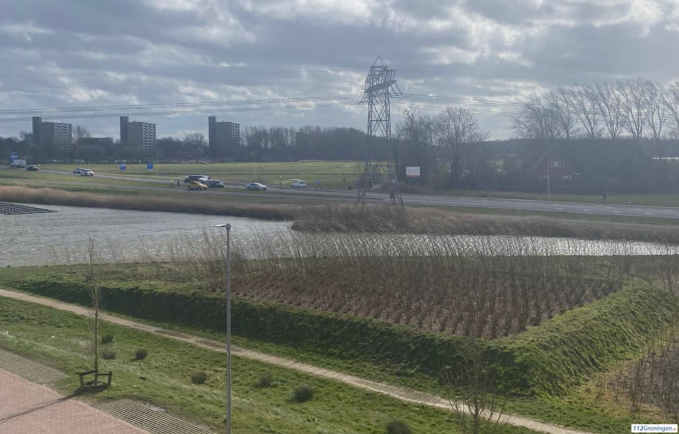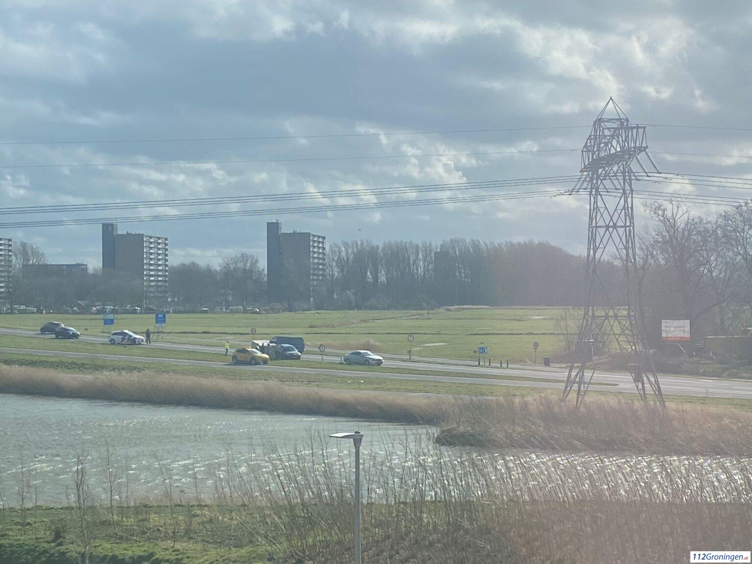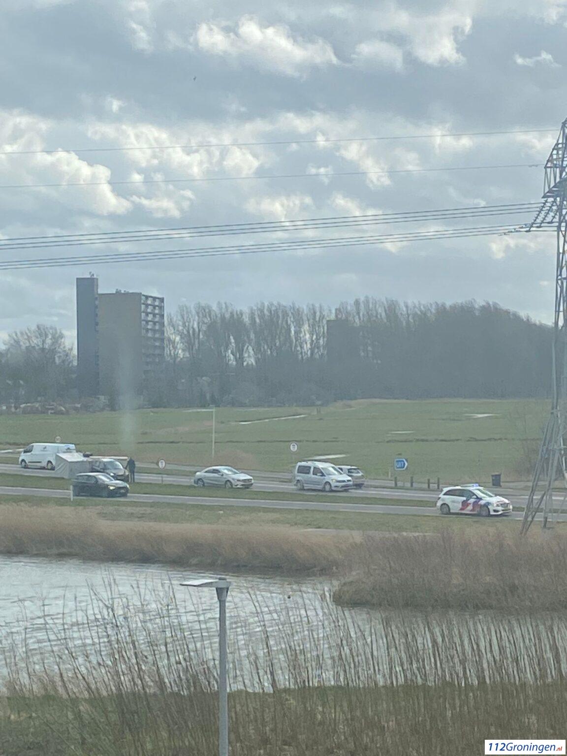 Poort komt voor afsleep van de aanhanger. Auto’s worden tijdelijk omgeleid. Vanaf Groningen richting Aduard gaan ze via de rotonde en dan weer de N355 op.