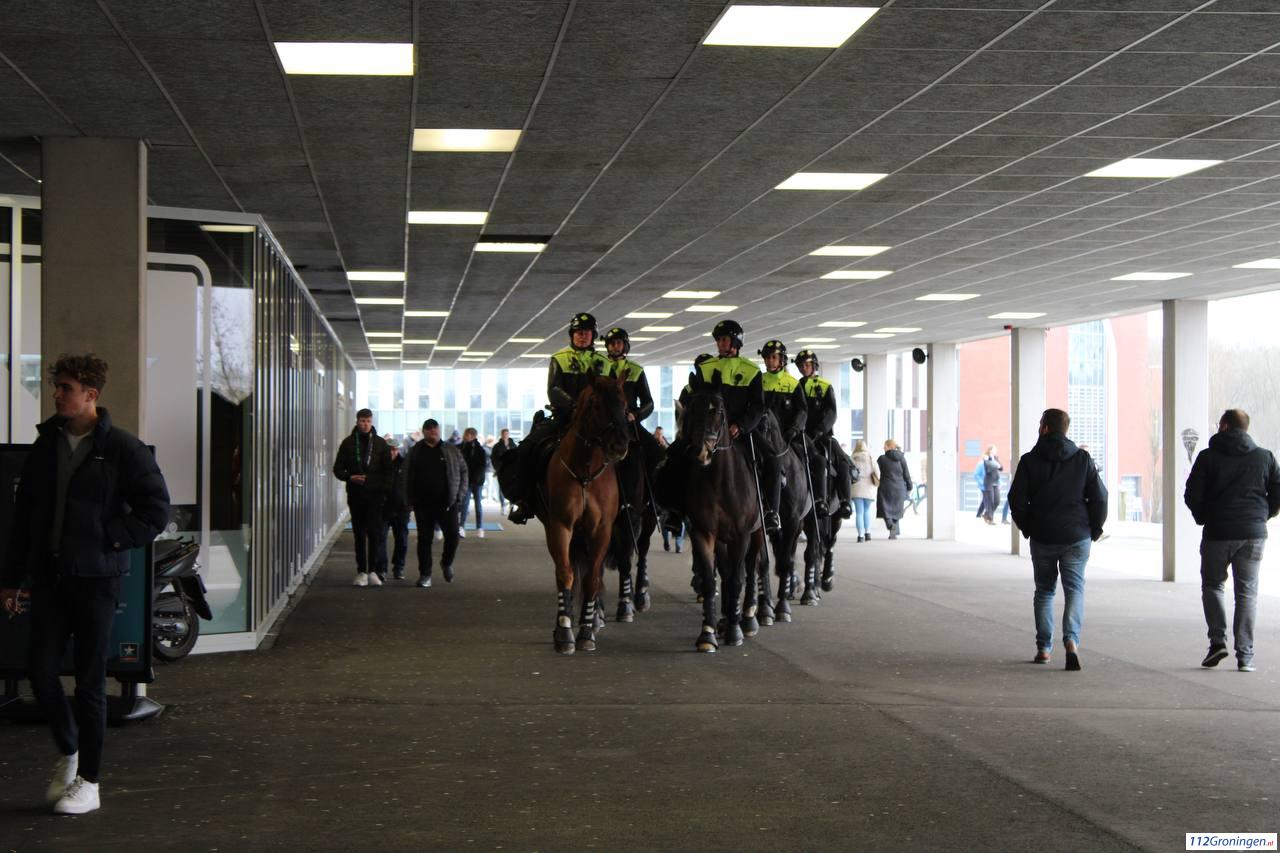 Tijdens de wedstrijd zou de man een speler van FC Groningen hebben geslagen. De man is aangehouden en overgebracht naar het Politiebureau.