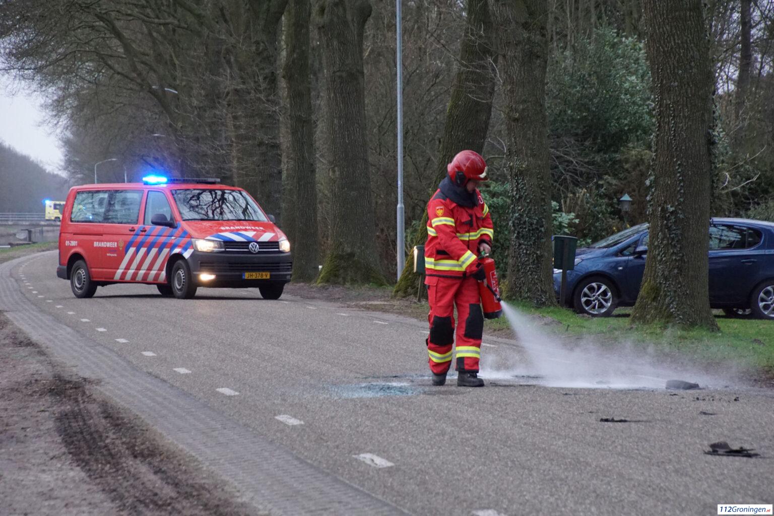 Tijdens het rijden is het voertuig in brand geraakt, waarbij de bestuurder gewond is geraakt. De bestuurder is met prio 1 vervoerd naar een ziekenhuis. De weg is enige tijd afgesloten geweest voor al het verkeer. Een berger heeft het voertuig geborgen. Oorzaak van de brand is onbekend.