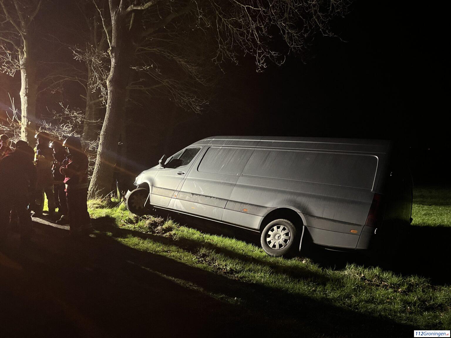 Bellingwolde – Bij de Sportweg in Bellingwolde is vrijdagavond om 23:45 uur een bestelbus uit de bocht gevlogen, de exacte toedracht is niet bekend. Het voertuig kwam tot stilstand in een slootwal. De man bleek eerst spoorloos.