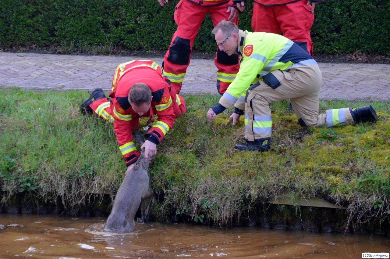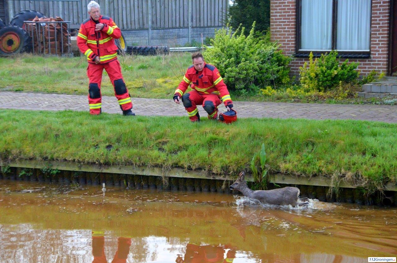 Nieuwe Pekela – De brandweerlieden van korps Nieuwe Pekela moesten zondagochtend vroeg uit de veren. Even na 7.15 uur zag een voorbijganger aan de Jan Oldenburgerstraat in het dorp een ree in het Pekelerhoofddiep. De ree poogde meerdere malen op de wal te klimmen maar dit zonder resultaat.