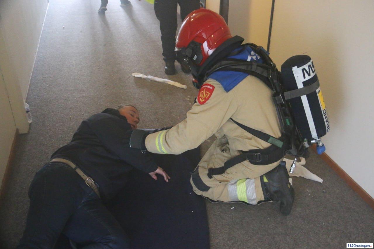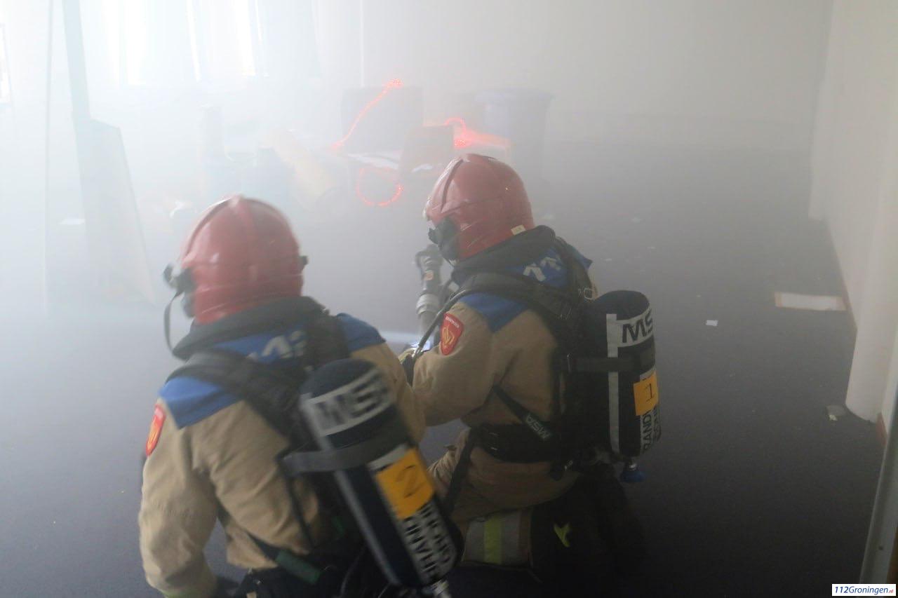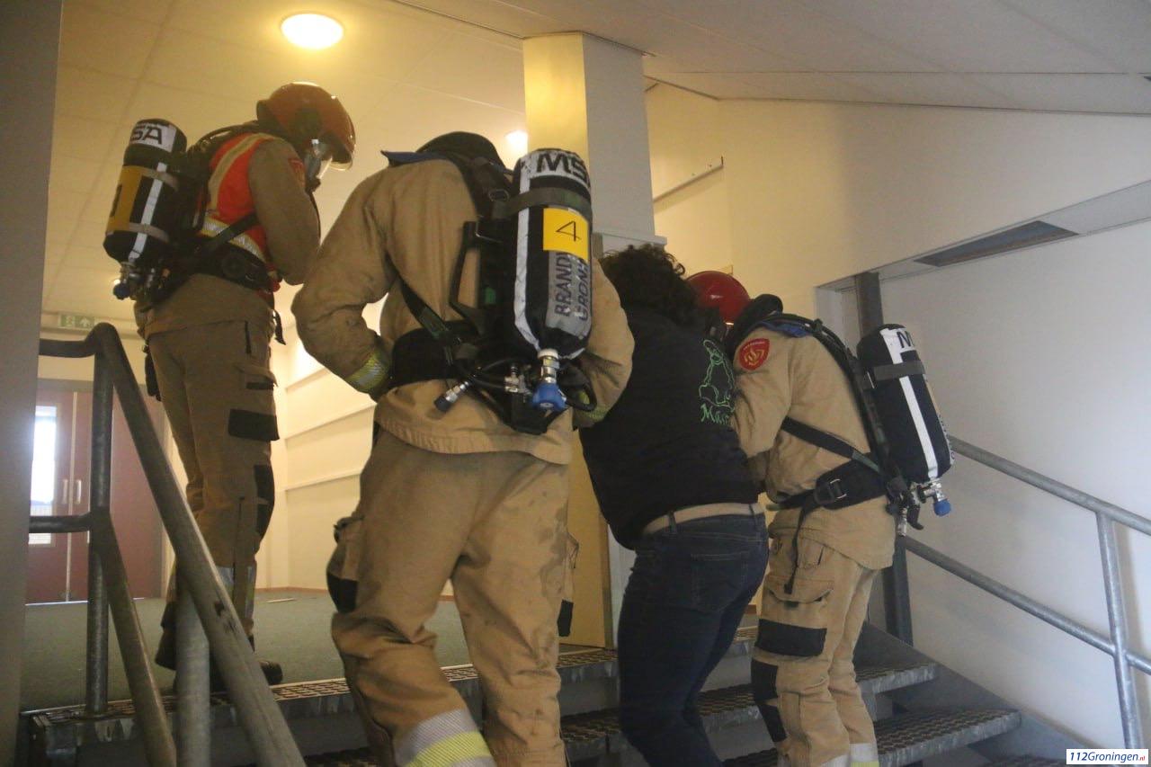 Een beveiliger heeft nog geprobeerd een van de branden te blussen maar dit lukt niet, ze loopt hierbij brandwonden op en zit in een ruimte nabij de hoofdingang. De brand ontwikkelt zich verder en is bij aankomst van de brandweer uitslaand. De brandstichtster die nog op de tweede etage is strompelt en ligt in de gang, zij moet door de brandweer naar buiten worden geholpen. In een ander deel van het pand zijn nog vier mensen aan het werk die niet weten dat er brand is, zij schrikken als ze de brandweer horen aankomen en willen zo snel mogelijk naar buiten.