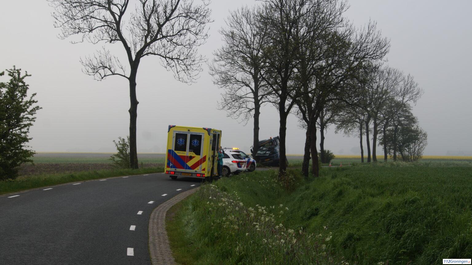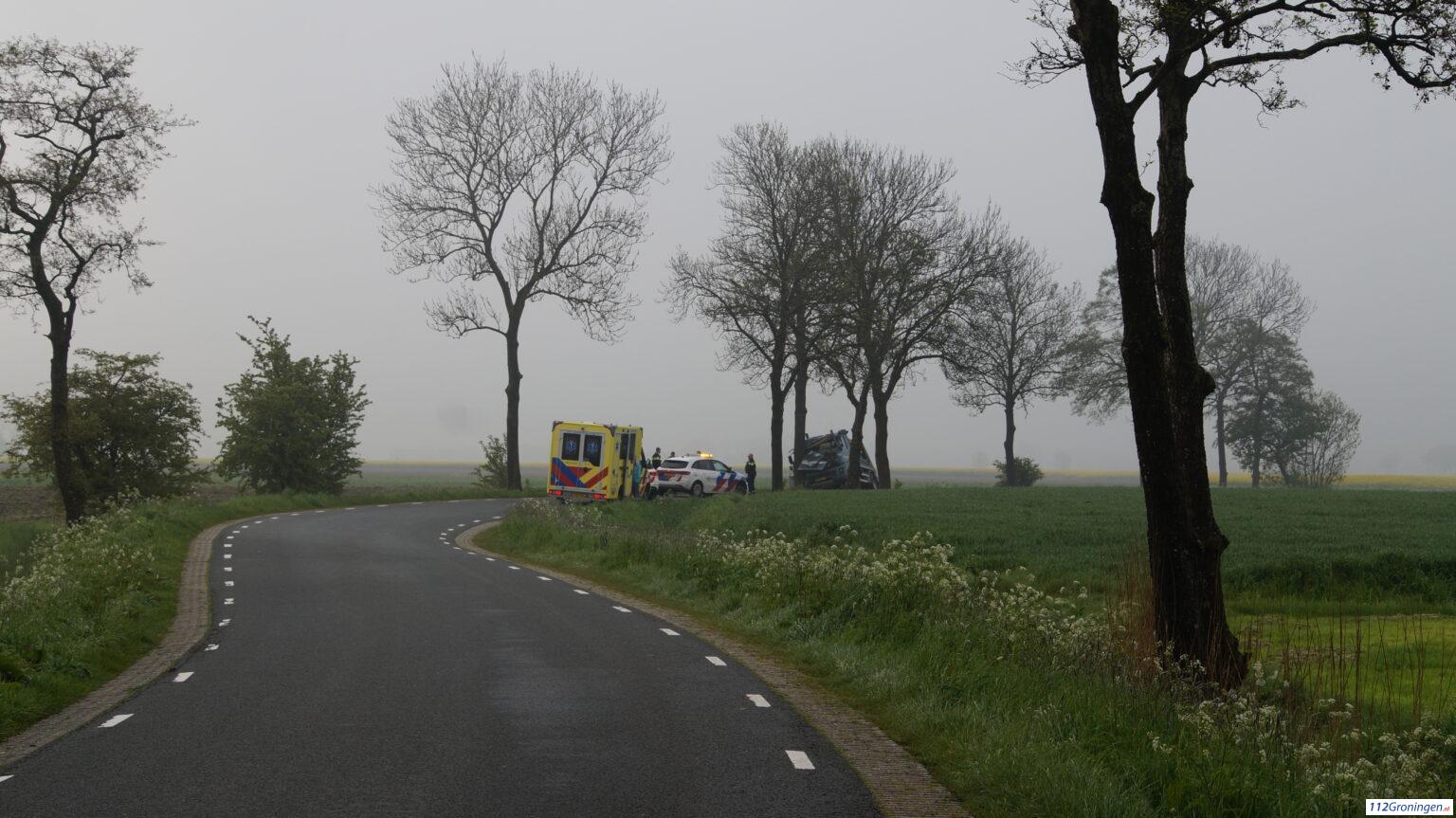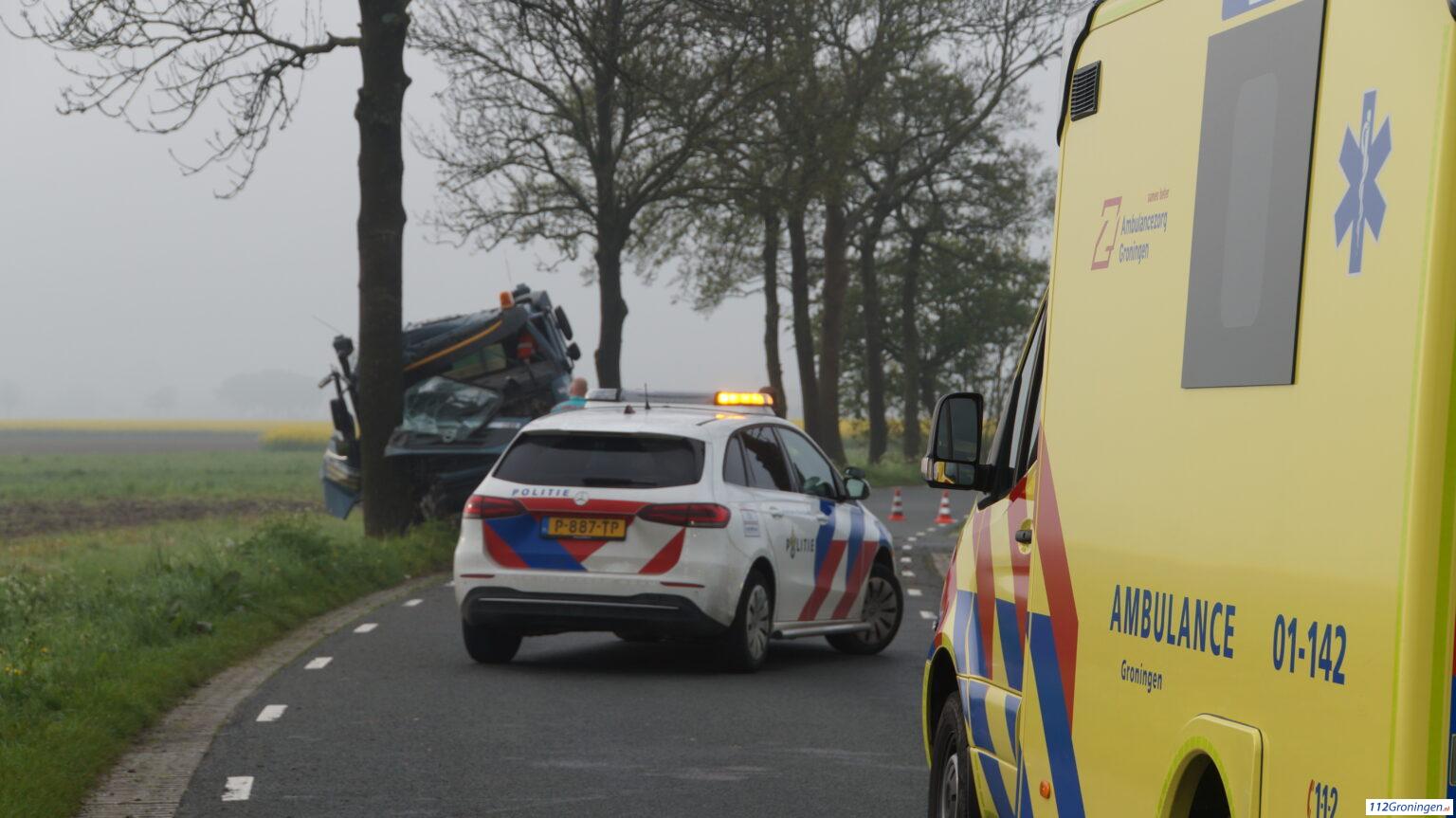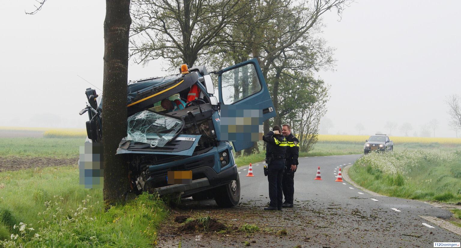 Loppersum – Zaterdagmorgen rond de klok van 07:30 uur is er een vrachtwagen tegen een boom gereden op de Delleweg bij Loppersum.
