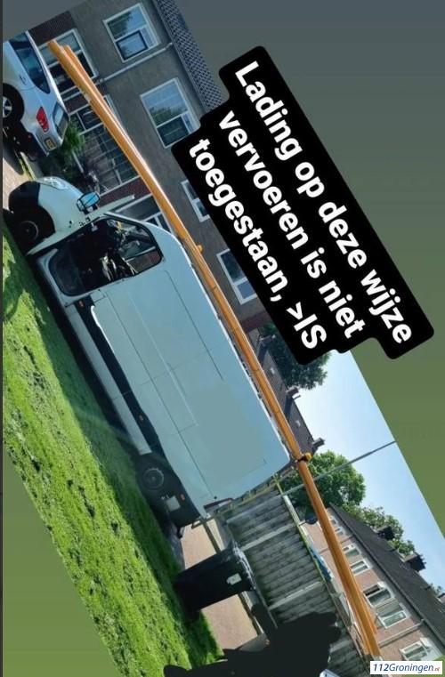 Stadskanaal – Bij een bestelbus mag de lading niet aan de voorzijde uitsteken. Dus niet voorbij de bumper. Aan de achterzijde mag de lading maar maximaal een(1) meter uitsteken.