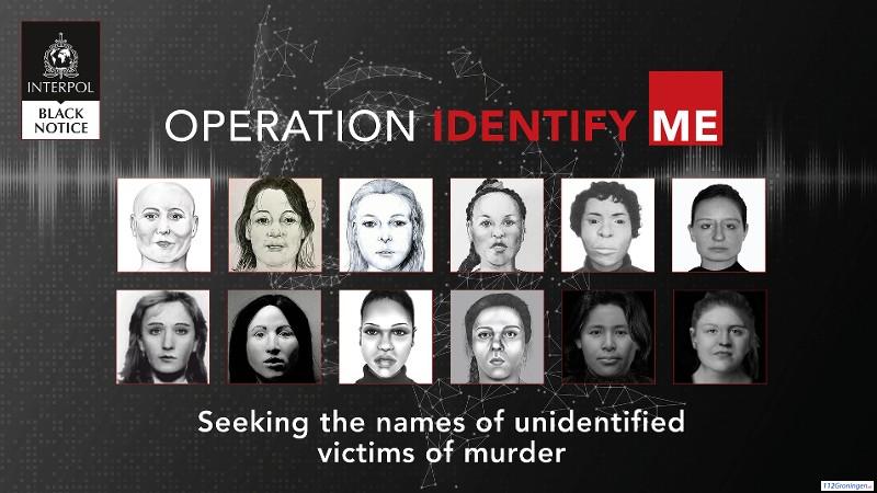 Op woensdag 10 mei werd de internationale campagne Operation Identify Me gelanceerd door het Bundeskriminalamt in Duitsland, de Federale politie in België, de politie in Nederland en INTERPOL. Op www.interpol.int/im  staan sindsdien 22 zaken die bekeken kunnen worden door het publiek. Alle slachtoffers in de campagne zijn ongeïdentificeerde vrouwen en in de meeste gevallen is het zeer waarschijnlijk dat het slachtoffer om het leven is gebracht. Lees meer op www.Politie.nl