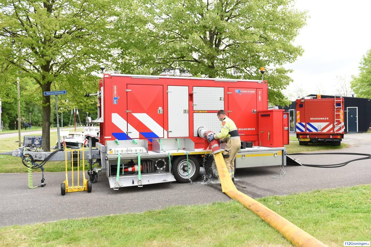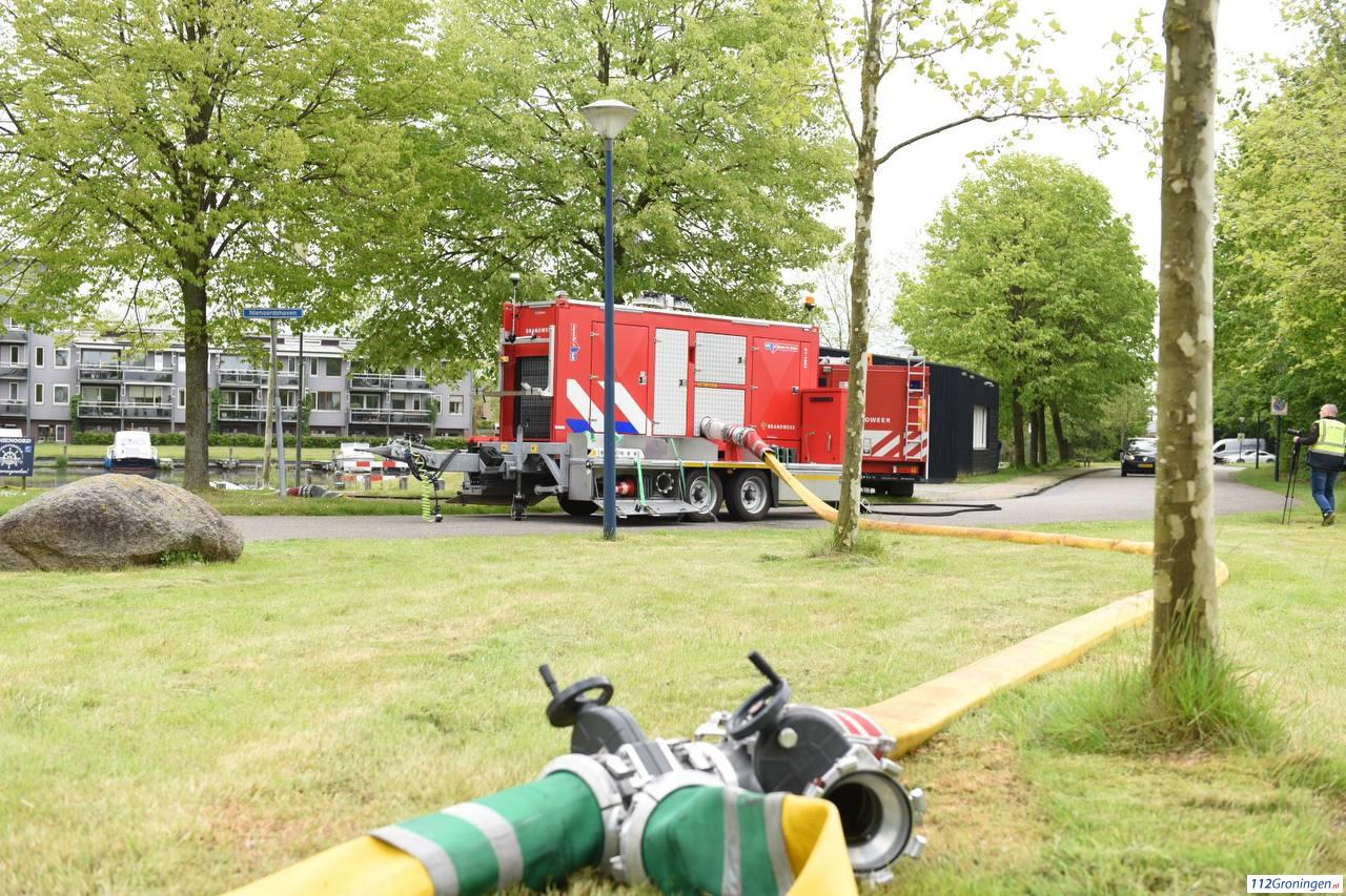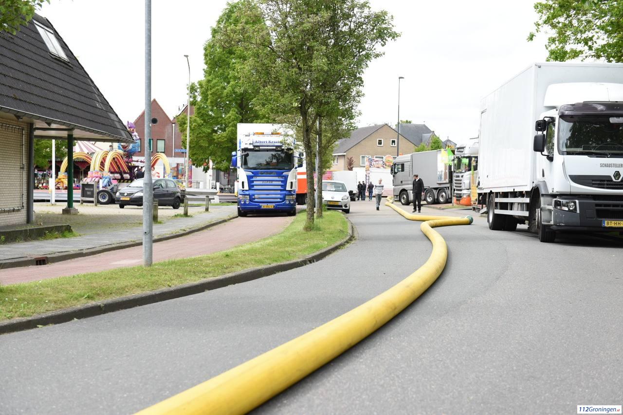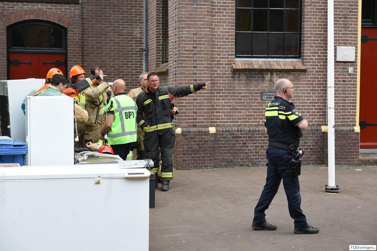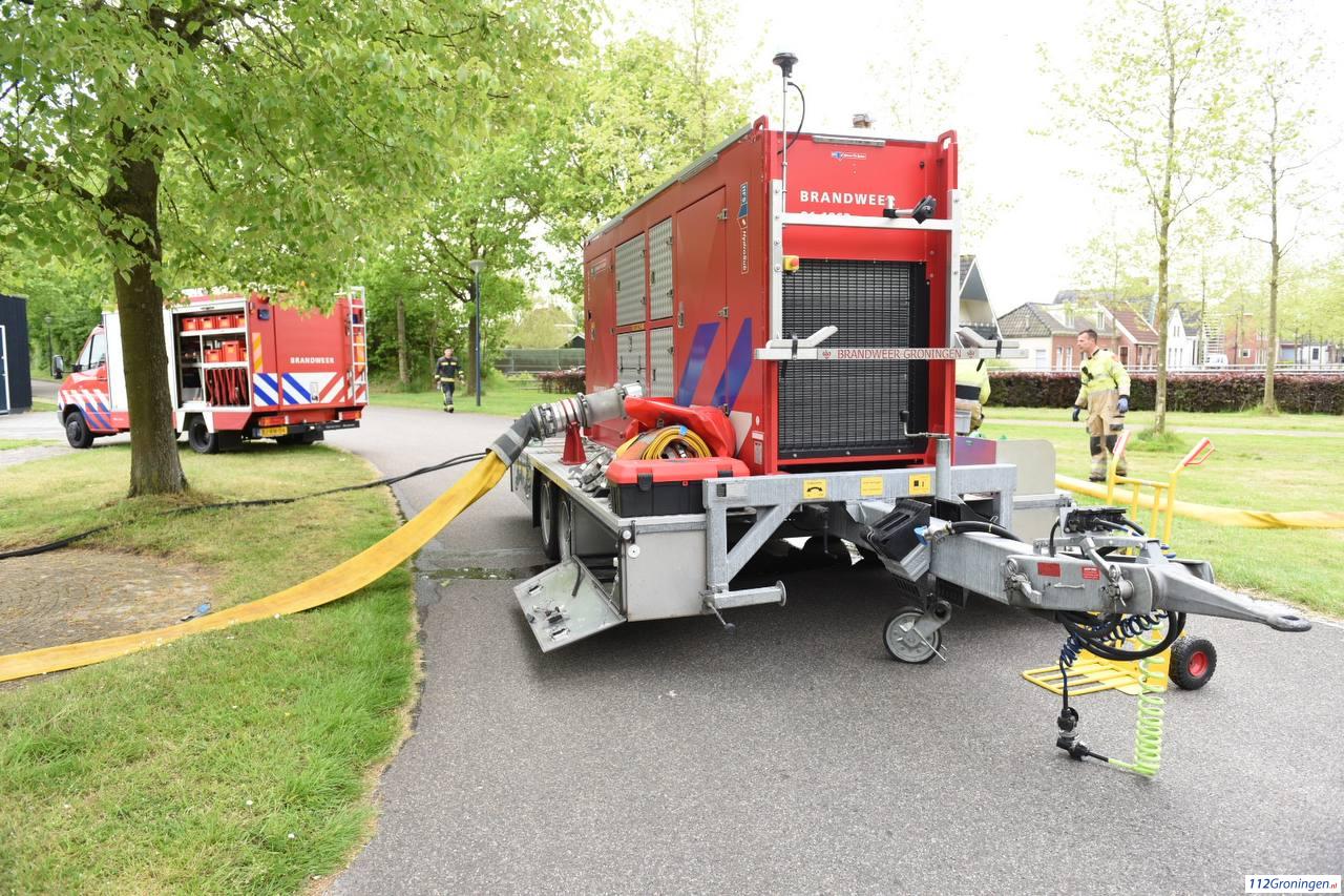 Overslag naar omliggende panden hebben ze kunnen voorkomen. Een mobiele kraan komt op locatie om te slopen, zodat bluswerkzaamheden beter uitgevoerd kunnen worden.