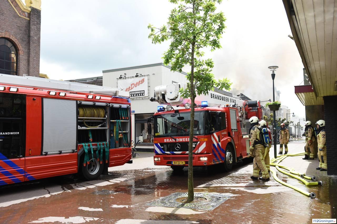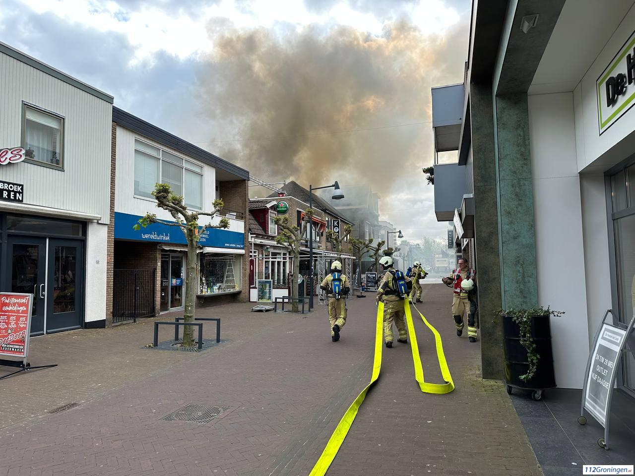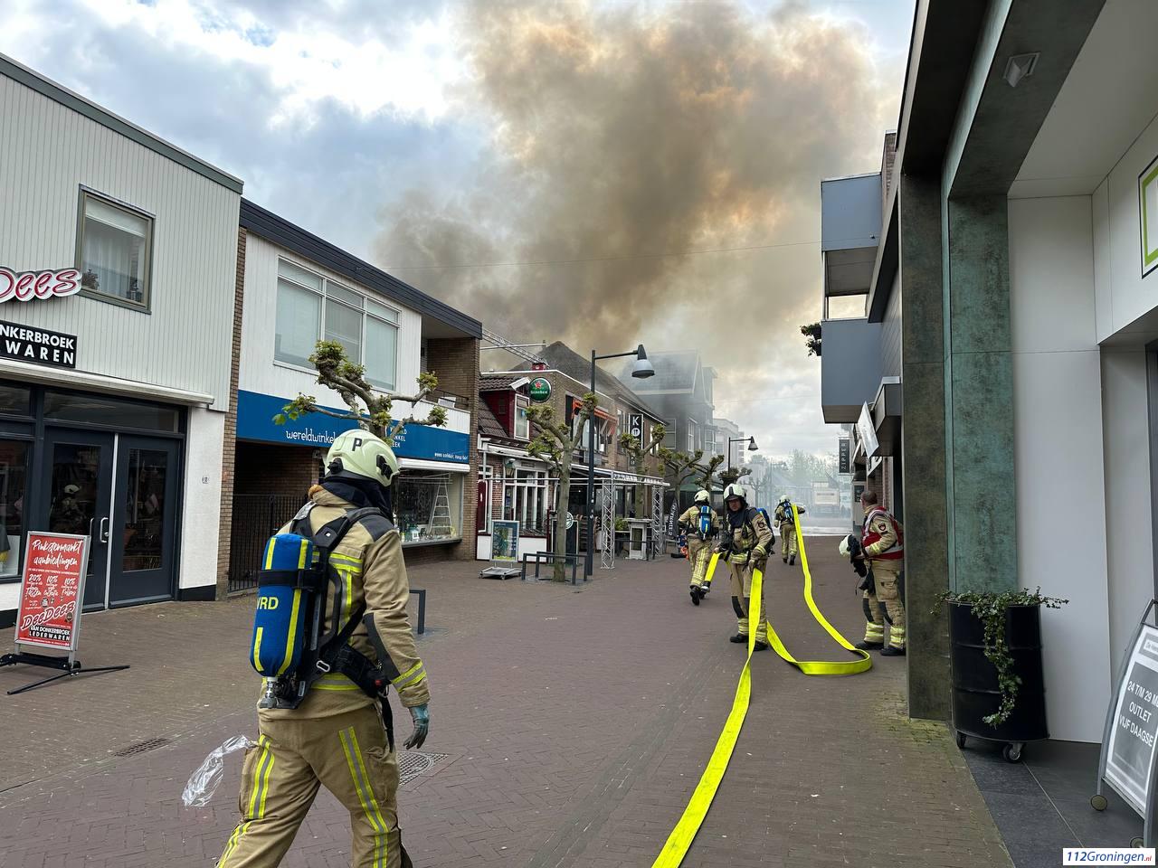 De brandweer zet vol in op het voorkomen van overslag naar naastgelegen panden; het centrum is erg dicht bebouwd. We hebben daarom uit voorzorg een tweede peloton opgeroepen, dat betekent dat er vier extra blusvoertuigen komen die we direct in kunnen zetten zodra ze nodig zijn.