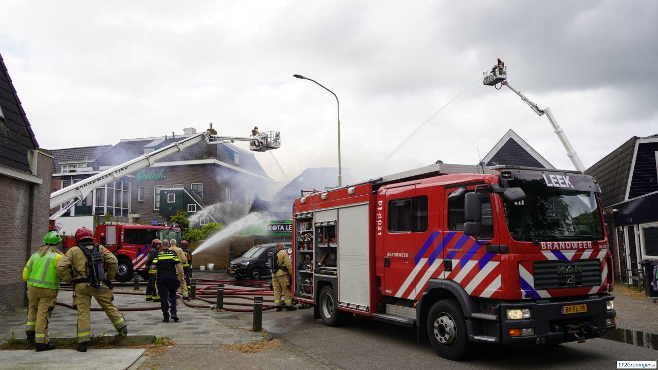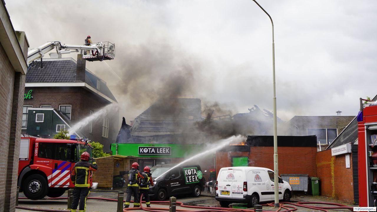 Terugblik: Leek – In een restaurant(Kota) aan de Tolberterstraat in Leek is woensdagmorgen een grote brand uitgebroken. De brand bij de chinees was gelijk uitslaand, iedereen was uit het pand. Er werd Grip 2 gegeven. Gezien de oude bebouwing en de ontwikkeling van de brand is opgeschaald naar zeer grote brand. Vanwege de forse rookontwikkeling is er ook een NL Alert verstuurd. Kom niet naar de brand toe en geef hulpverleners de ruimte.