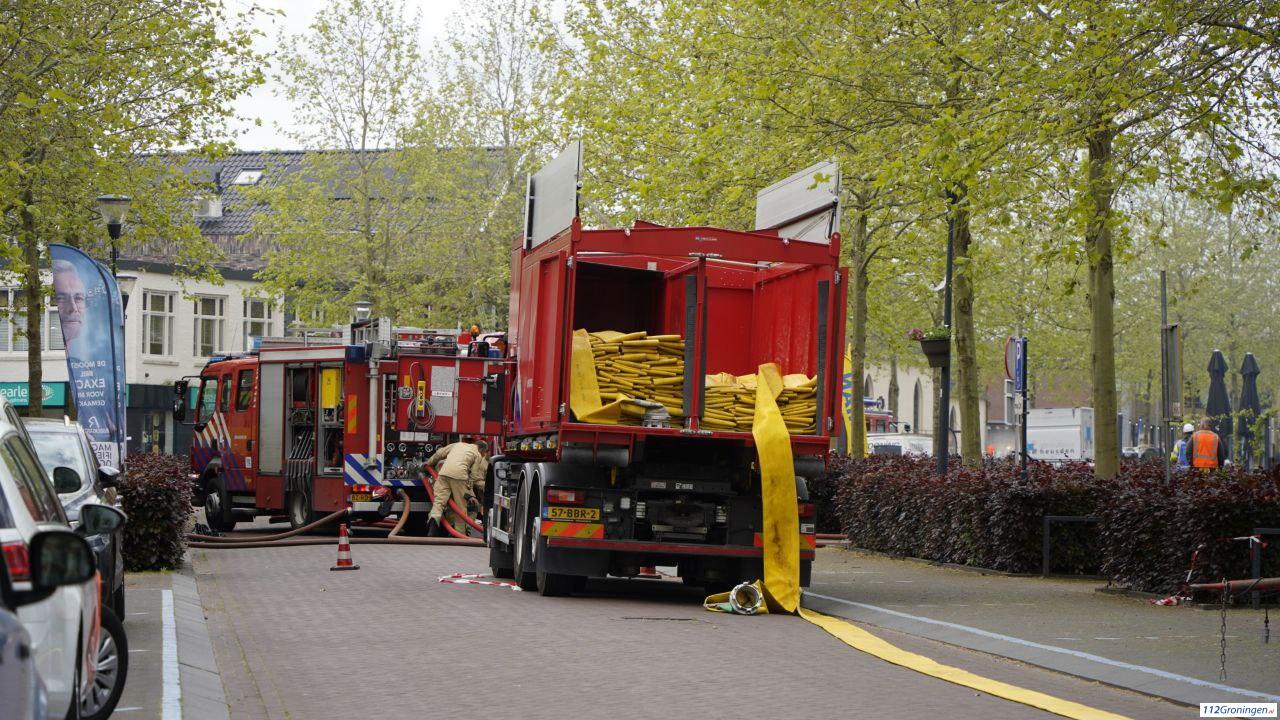 De brandweer zet vol in op het voorkomen van overslag naar naastgelegen panden; het centrum is erg dicht bebouwd. We hebben daarom uit voorzorg een tweede peloton opgeroepen, dat betekent dat er vier extra blusvoertuigen komen die we direct in kunnen zetten zodra ze nodig zijn. Overslag naar omliggende panden hebben ze kunnen voorkomen. Een mobiele kraan komt op locatie om te slopen, zodat bluswerkzaamheden beter uitgevoerd kunnen worden. Het tweede peloton is niet ingezet voor deze brand en retour kazernes. Video hier.