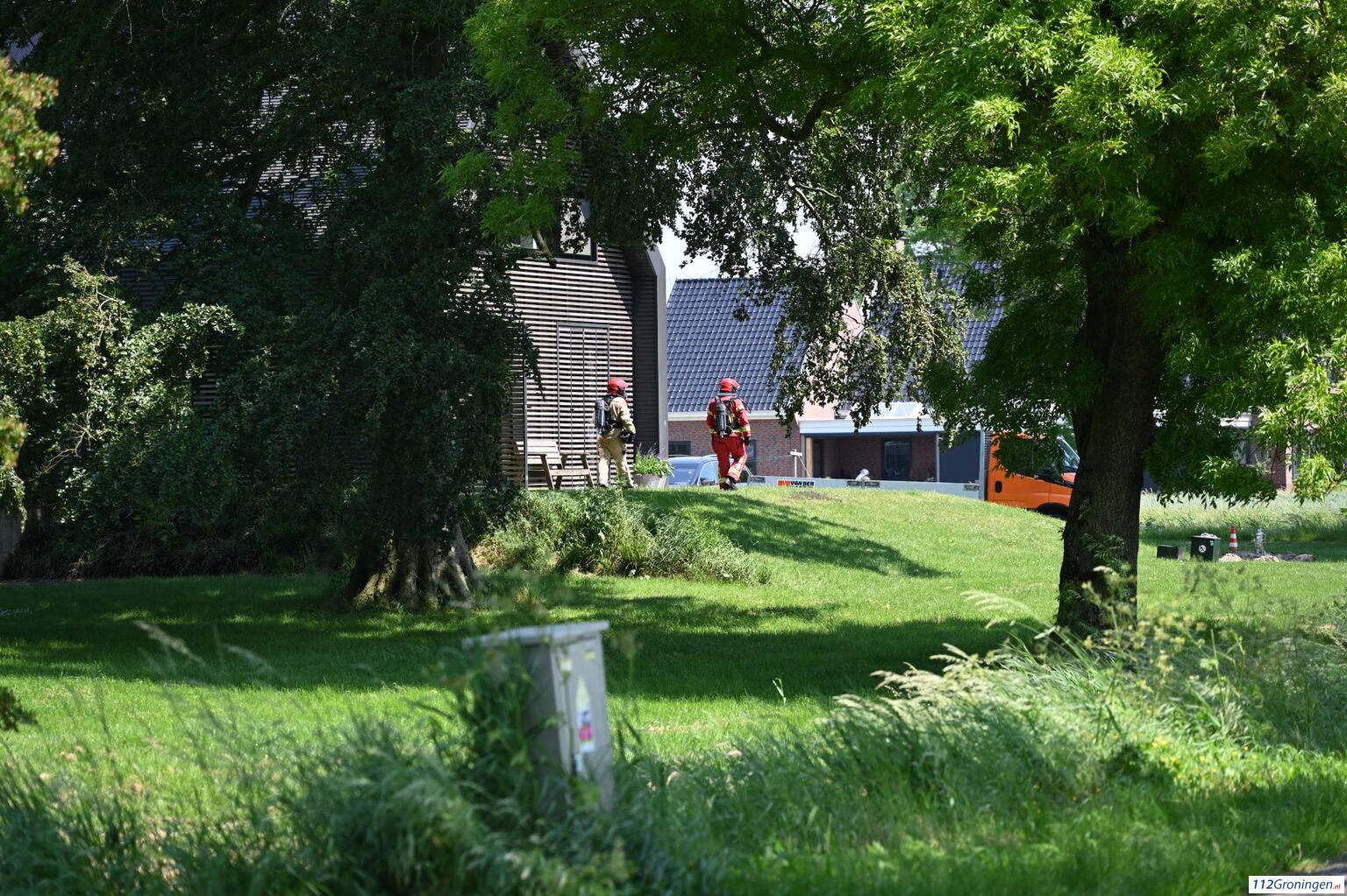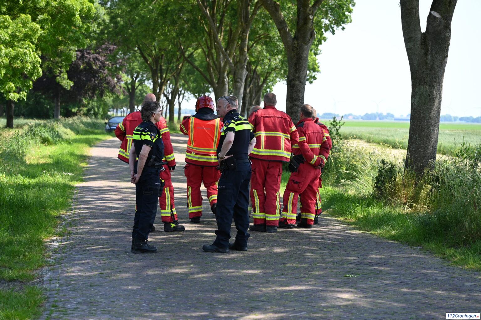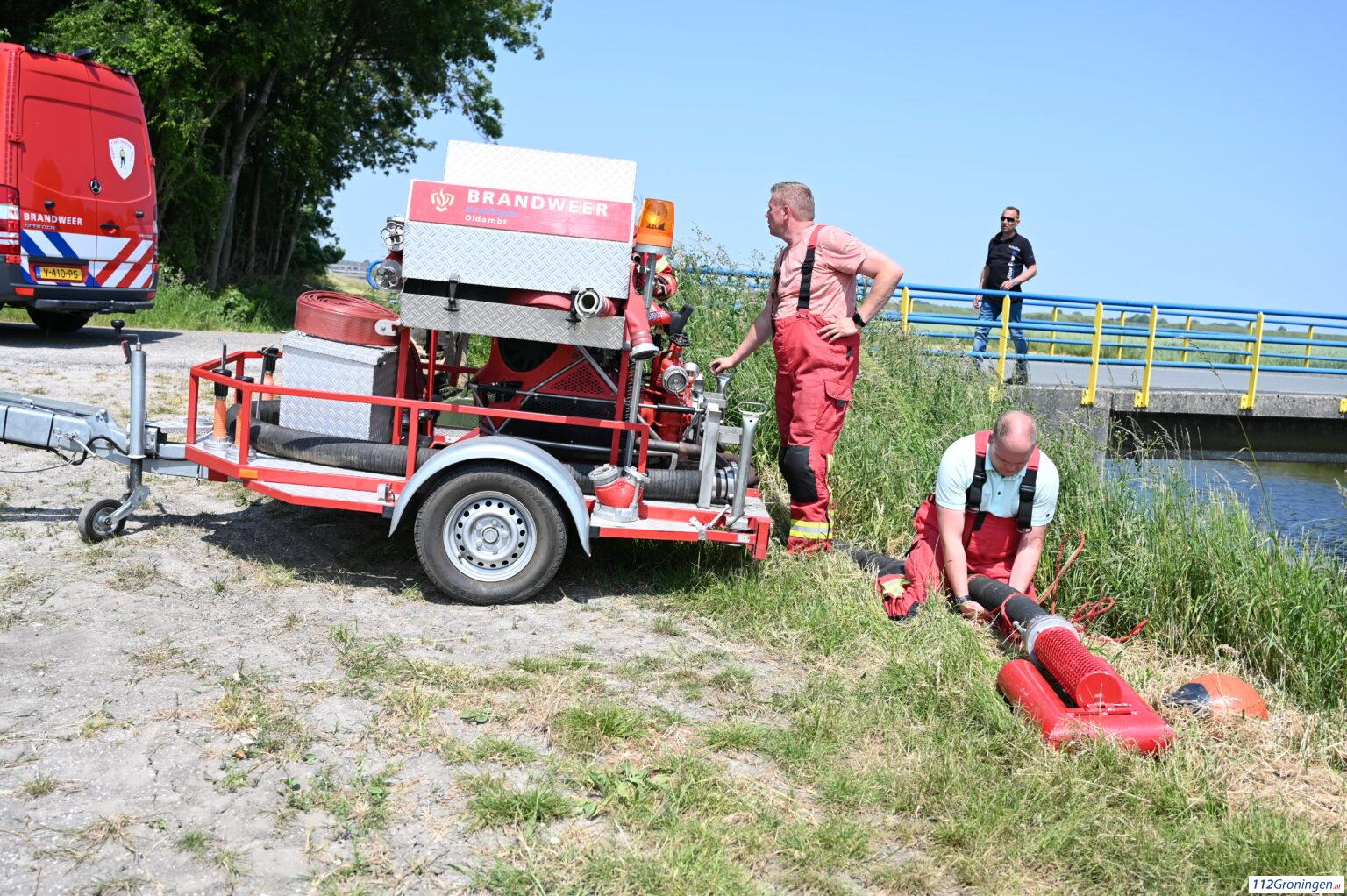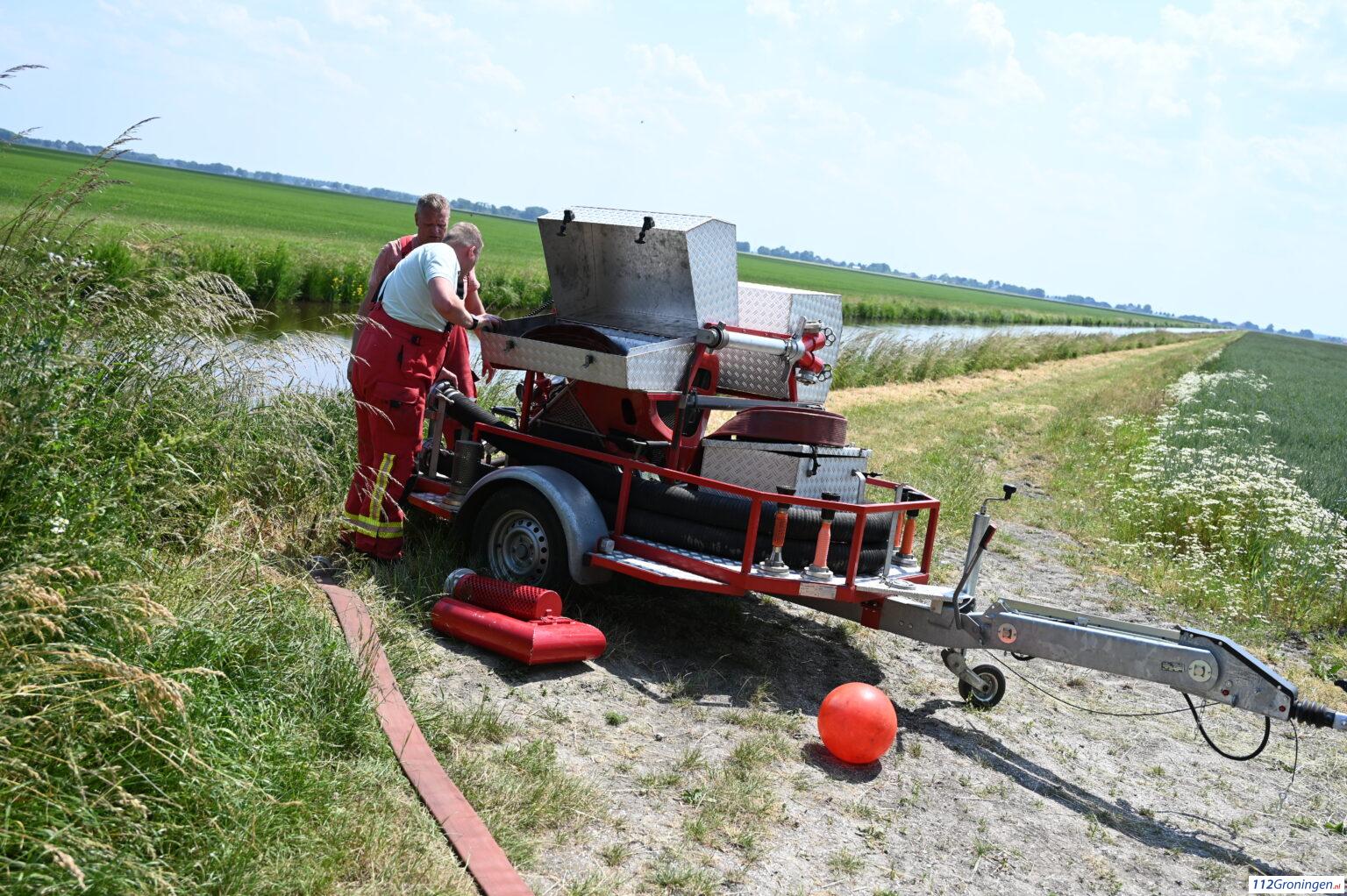 De brandweer heeft een waterwinning in een naastgelegen sloot gelegd, het is onbekend waarvoor.
