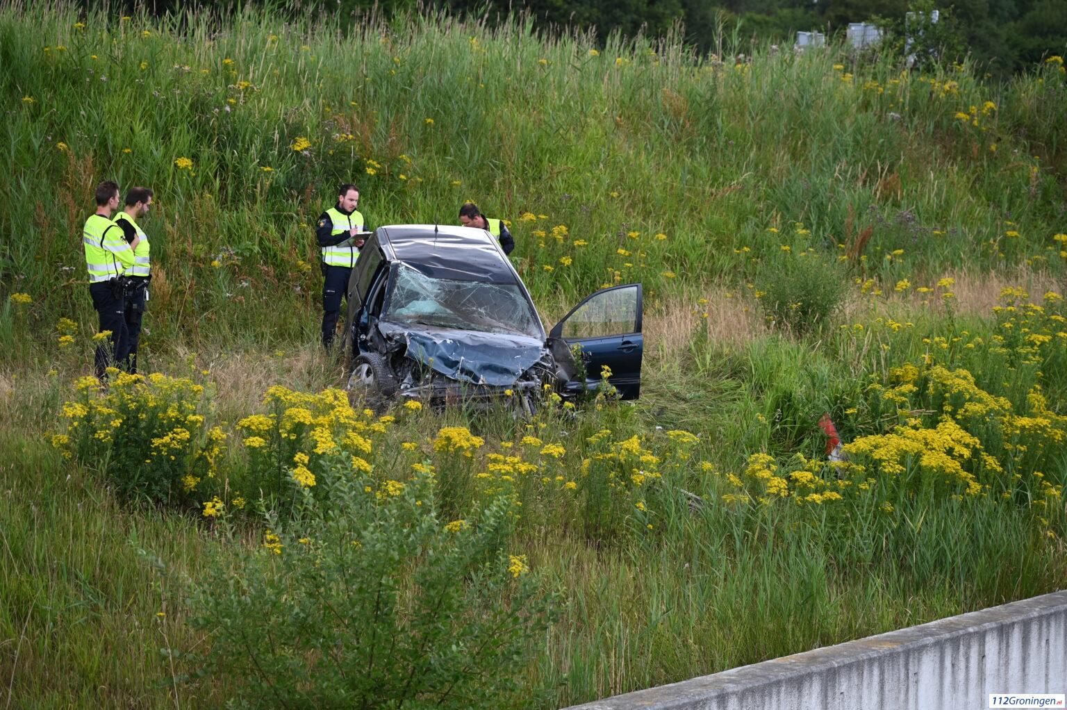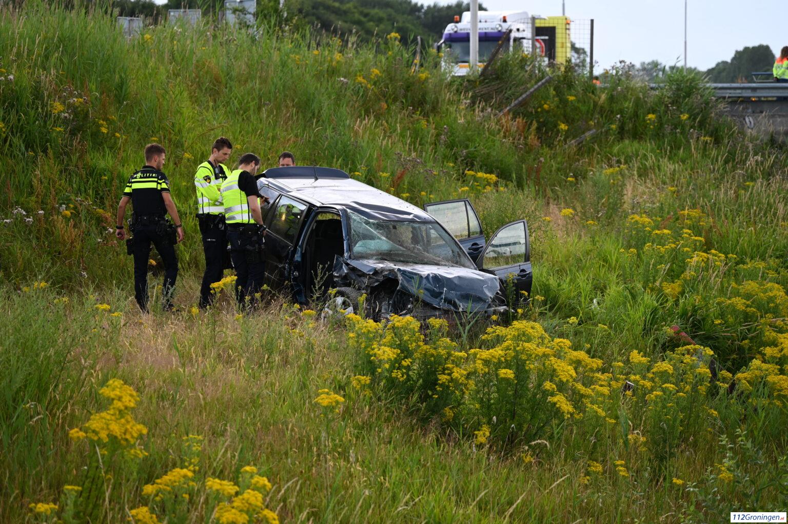 Op de afrit vanaf de A7 richting Winschoten is door nog onbekende oorzaak een auto van het talud gereden. De hulpdiensten rukten groots uit, en ook het MMT kwam ter plaatse. De inzittende(n) van de auto zijn door het ambulancepersoneel nagekeken en vervoerd naar het ziekenhuis. Het is nog onbekend hoe het ongeval heeft kunnen gebeuren. Het verkeer stond vast rondom de Blauwe Roos. Een berger heeft de auto geborgen.