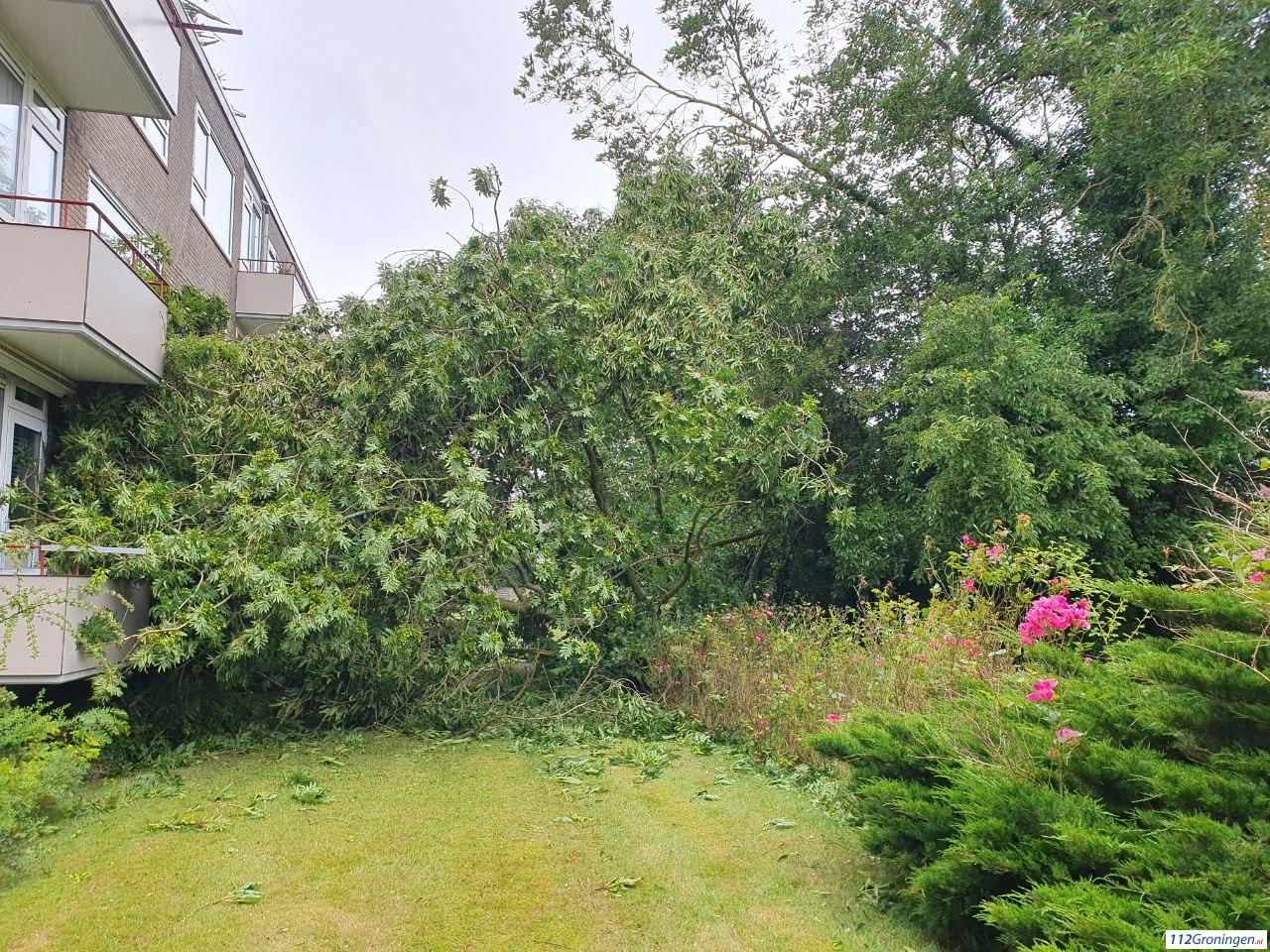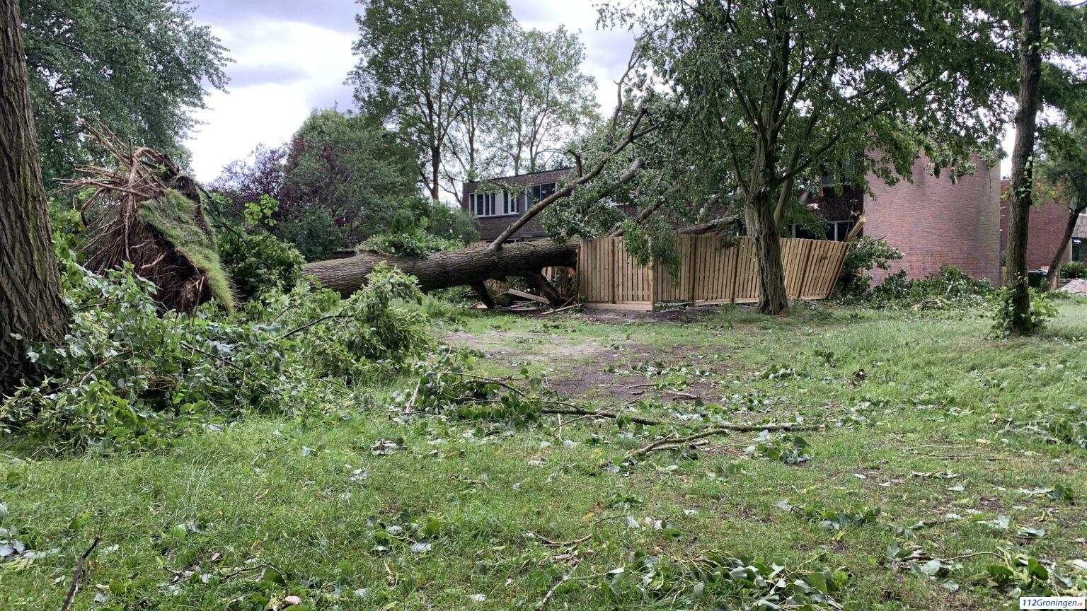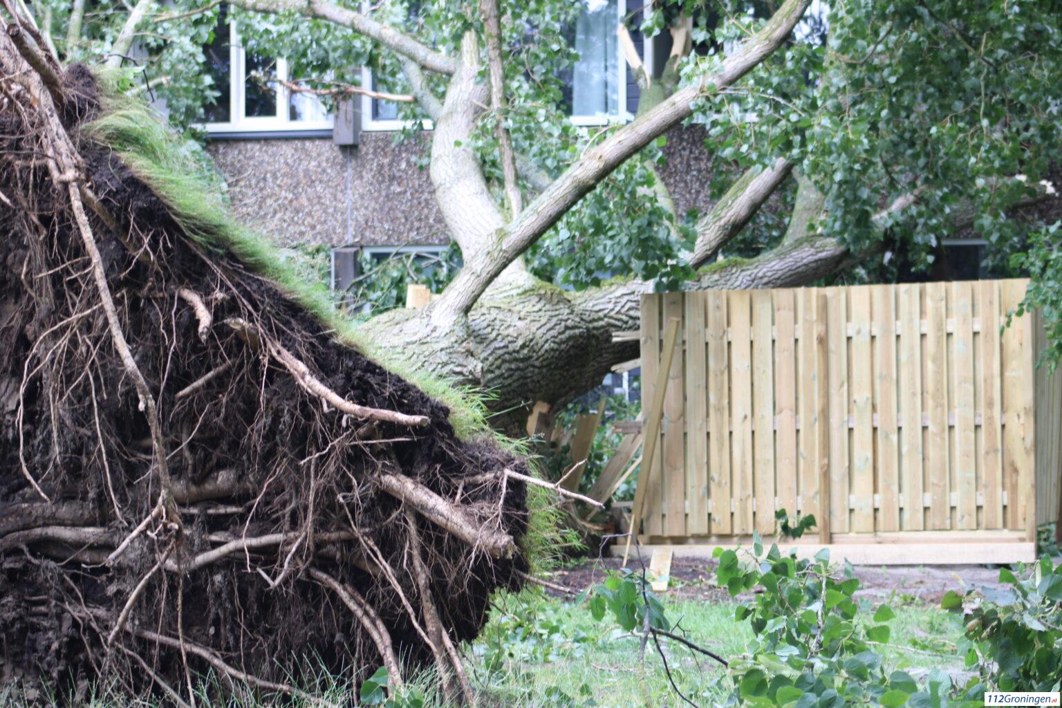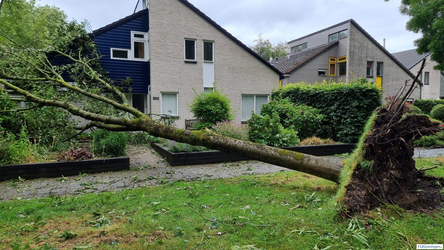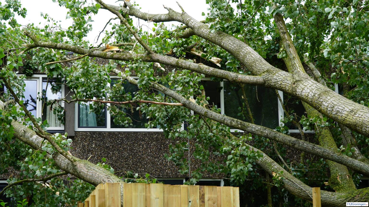 Groningen – Aan de Du Perronlaan in de Weijert zuid is een boom op een woning gevallen.
