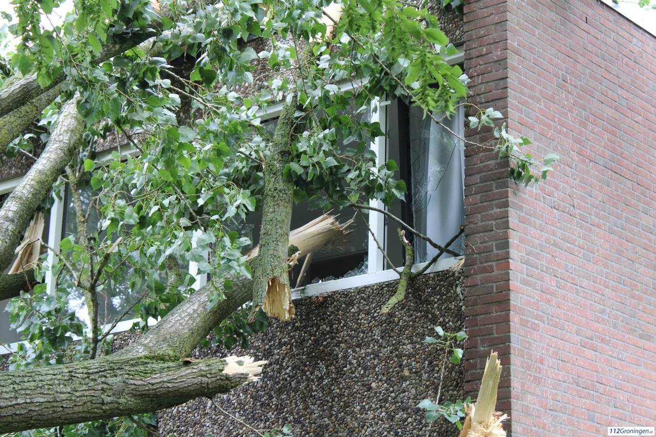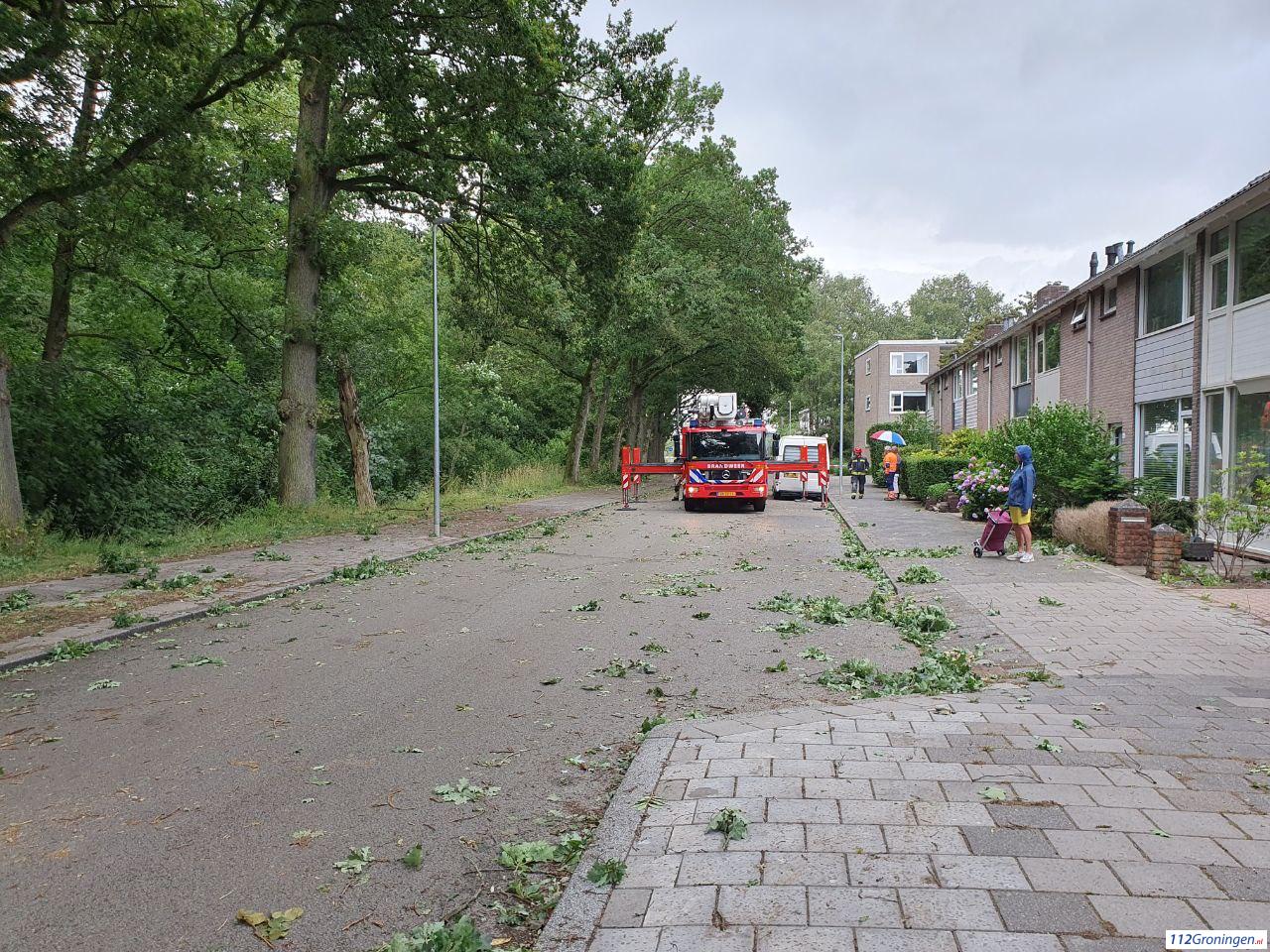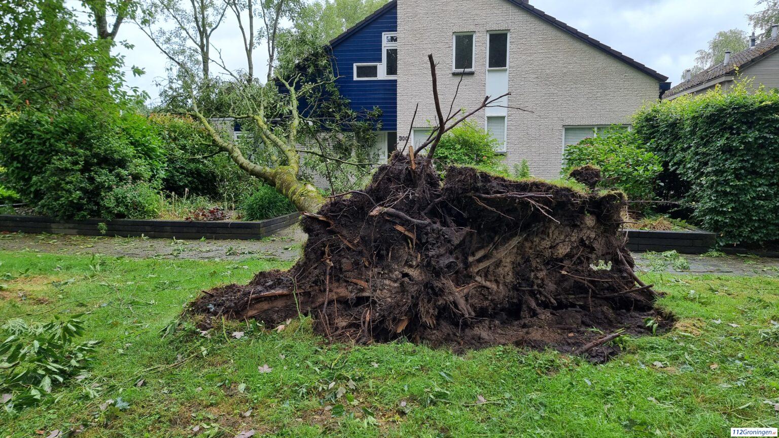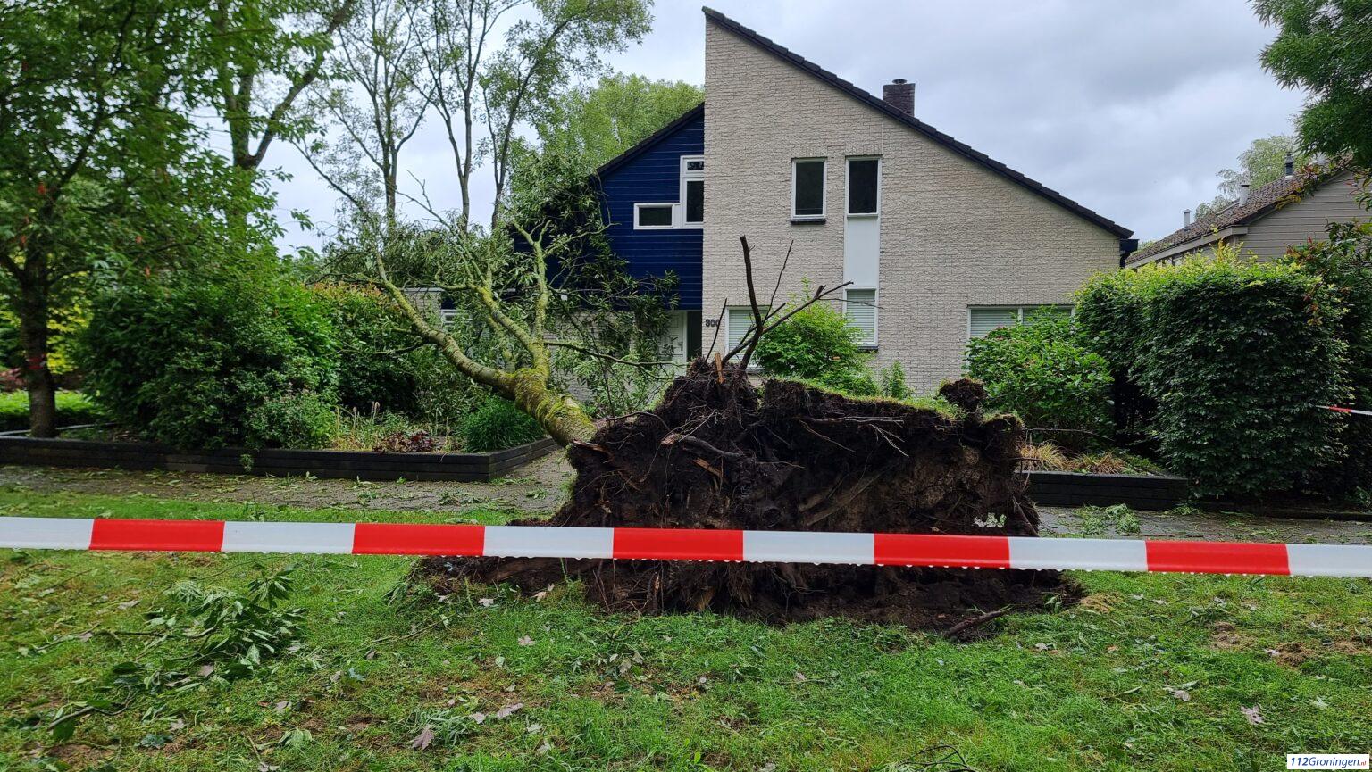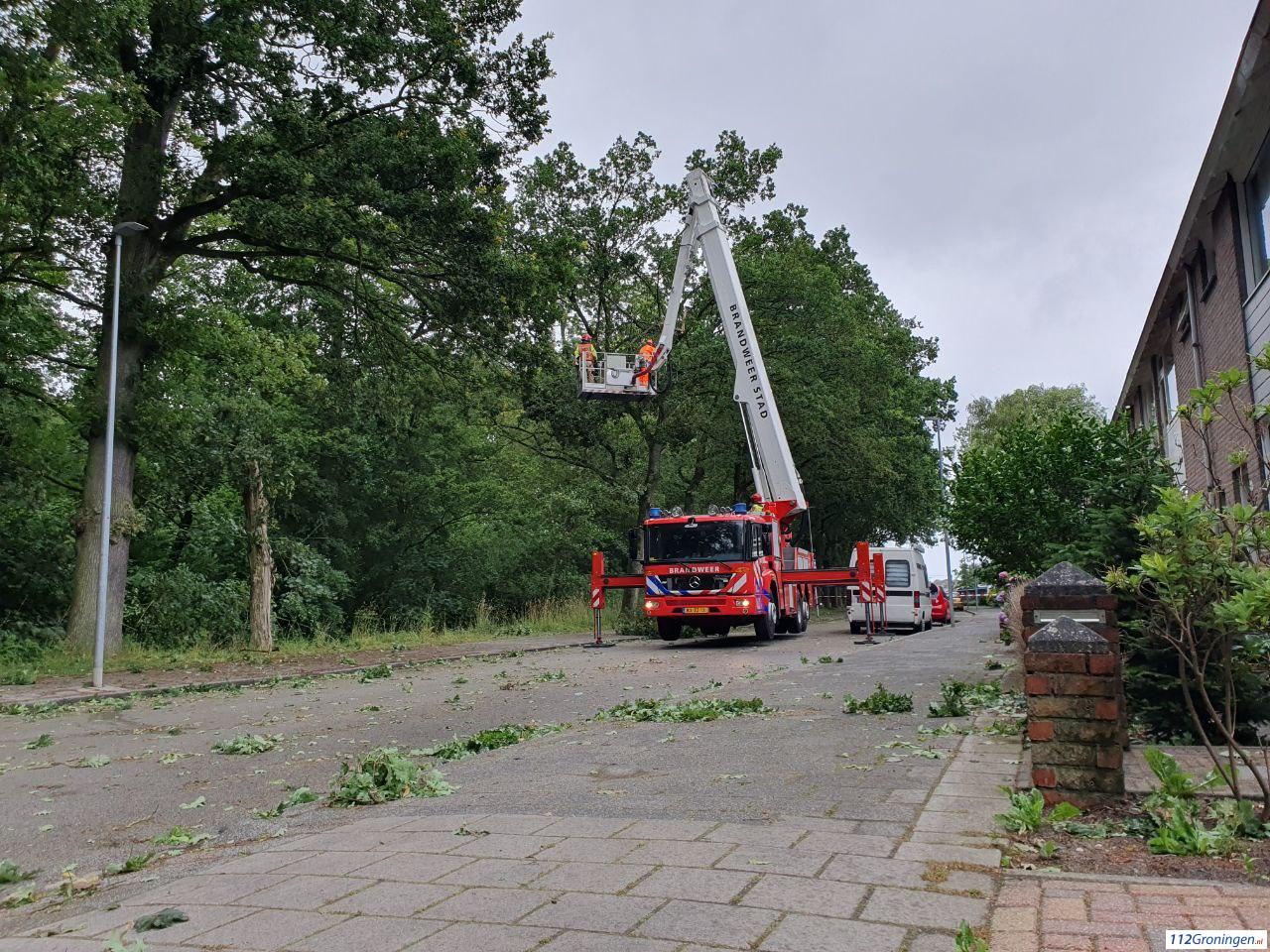 Groningen – Aan de Du Perronlaan in de Weijert zuid is een boom op een woning gevallen.