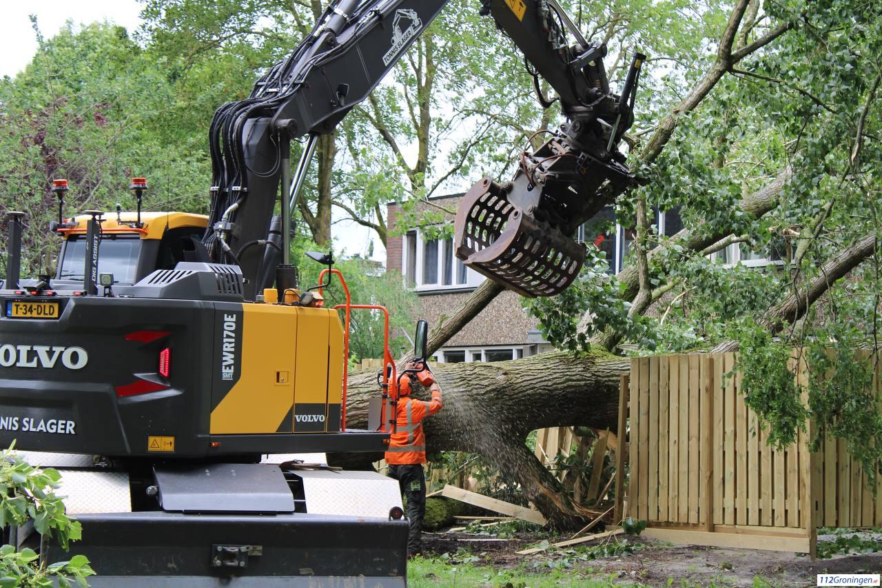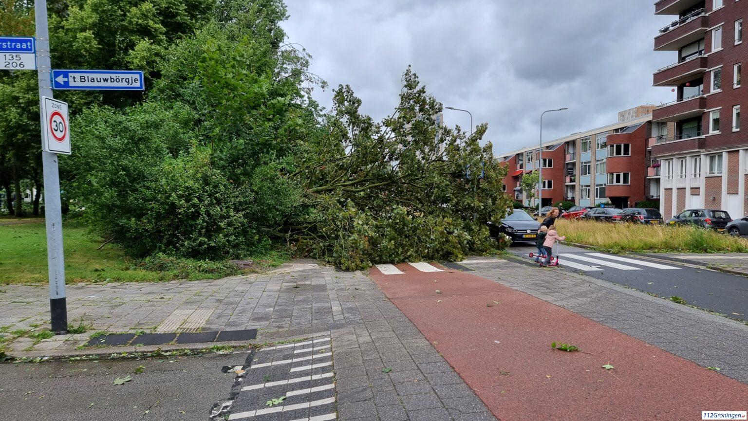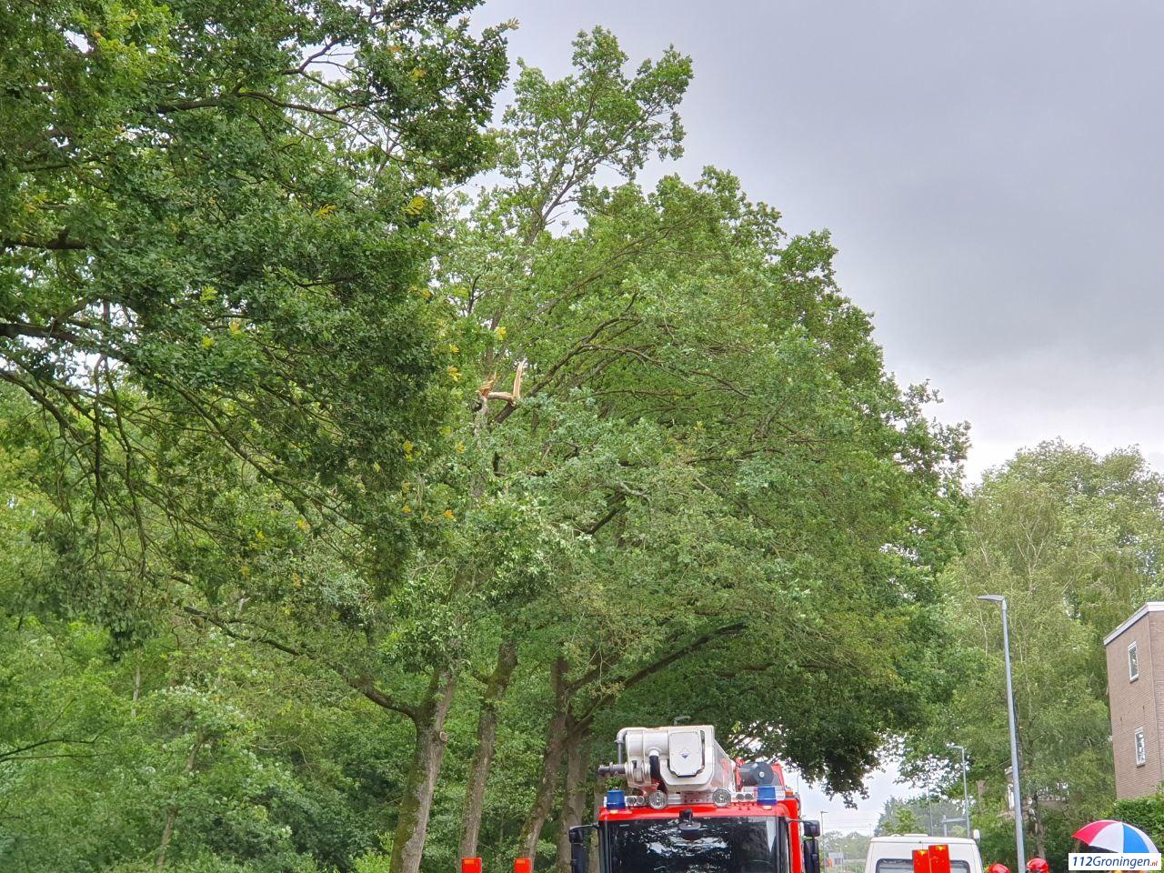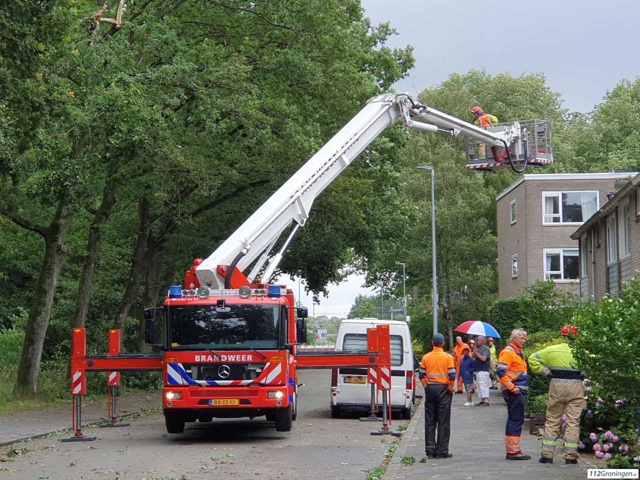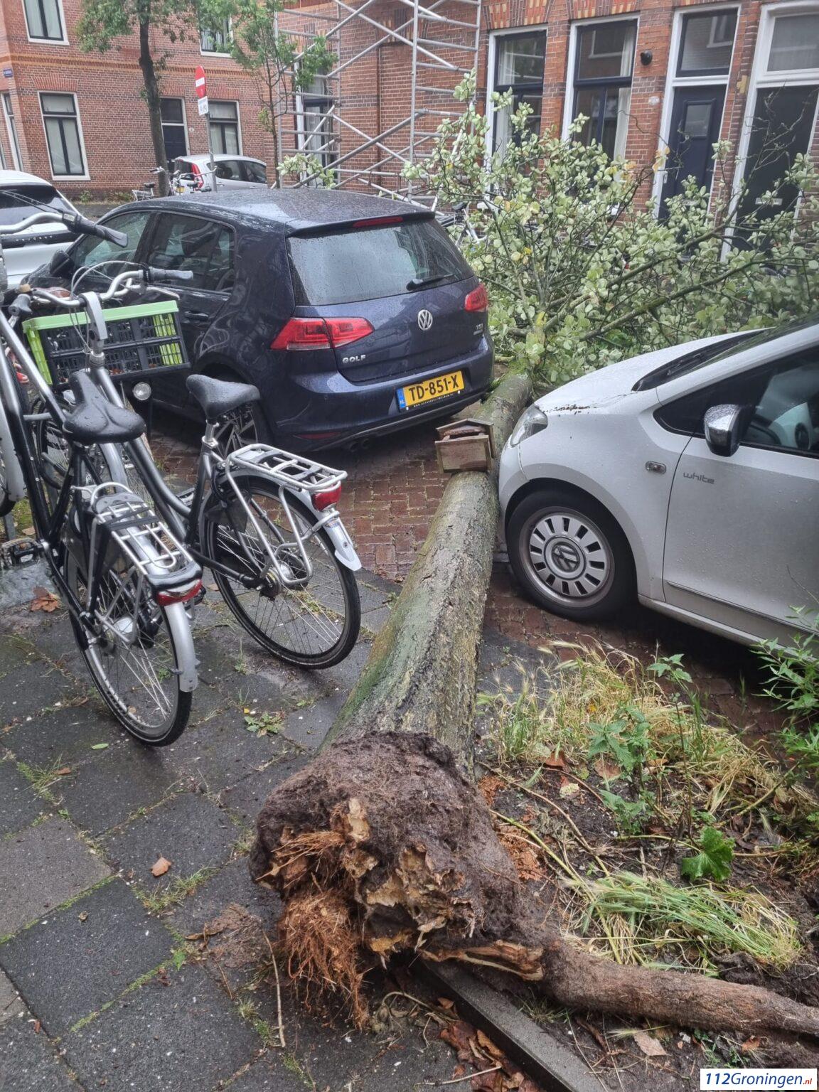Groningen – Aan de Du Perronlaan in de Weijert zuid is een boom op een woning gevallen.