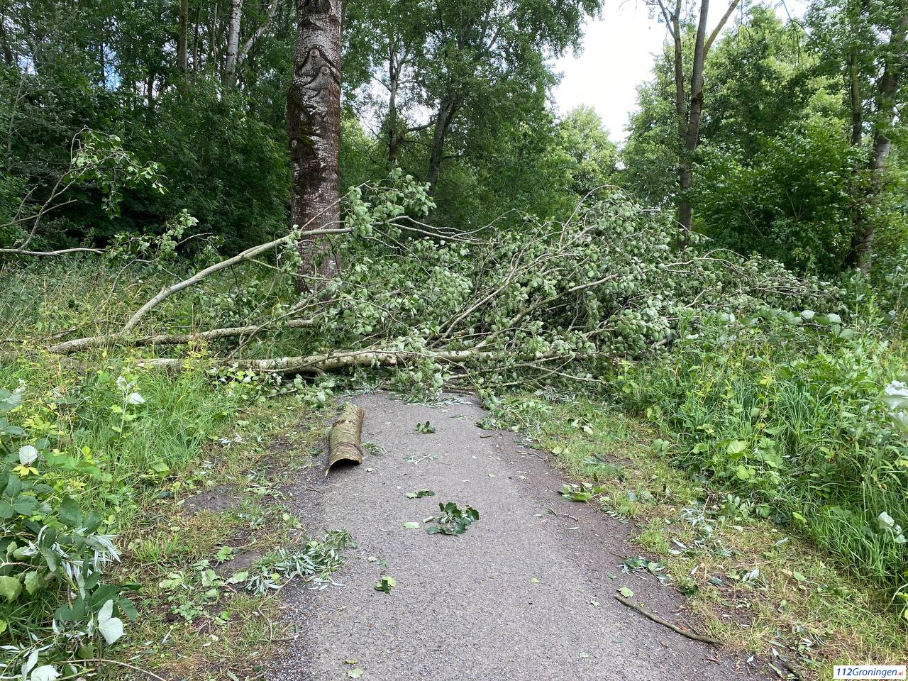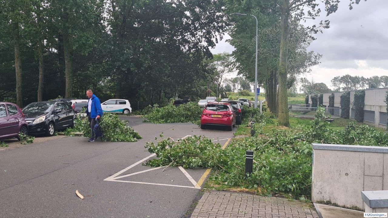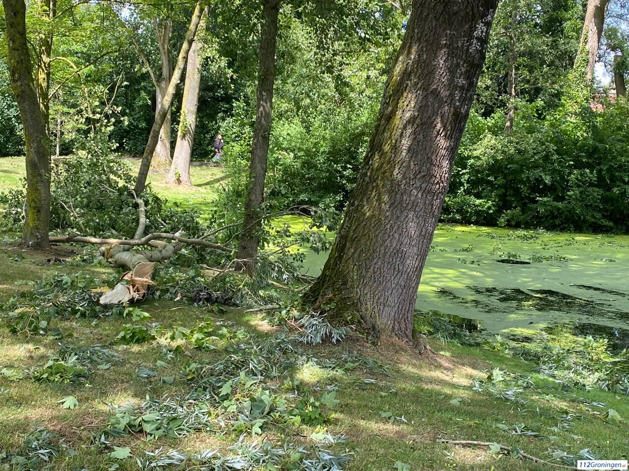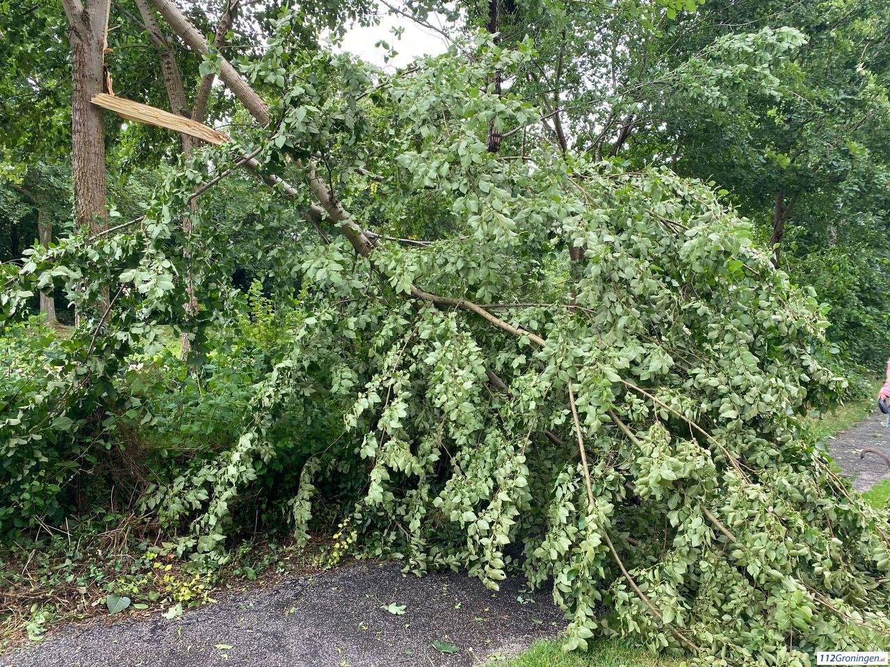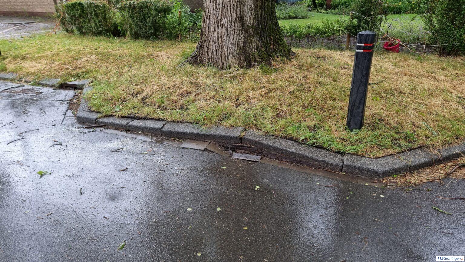 Groningen – Aan de Du Perronlaan in de Weijert zuid is een boom op een woning gevallen.