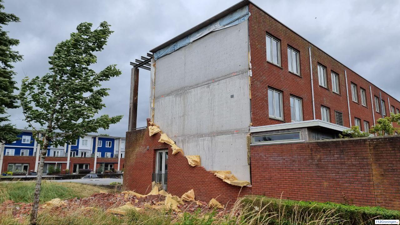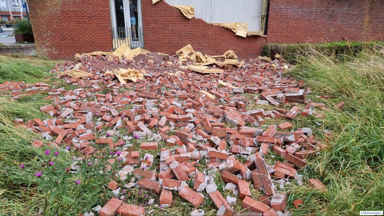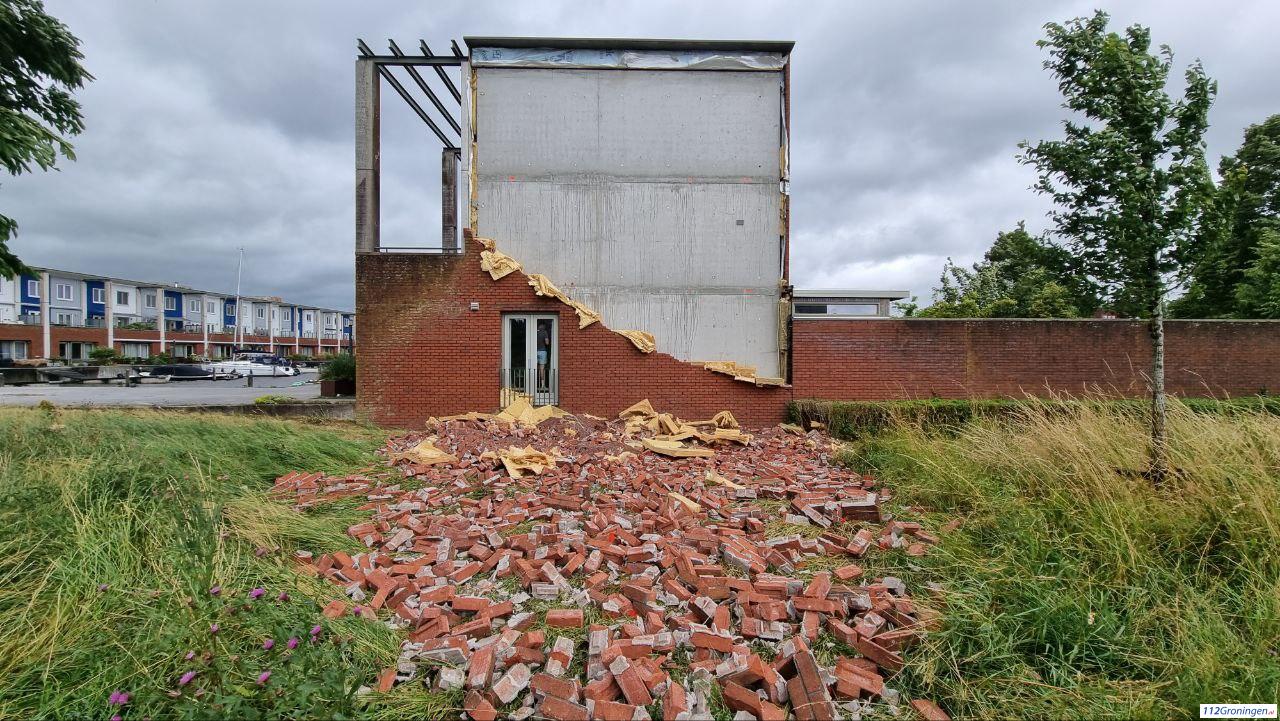 Groningen – Bij de Voermanhaven in Paddepoel is woensdagmiddag een complete muur ingestort door storm Poly. De omgeving was enorm geschrokken. Code oranje.