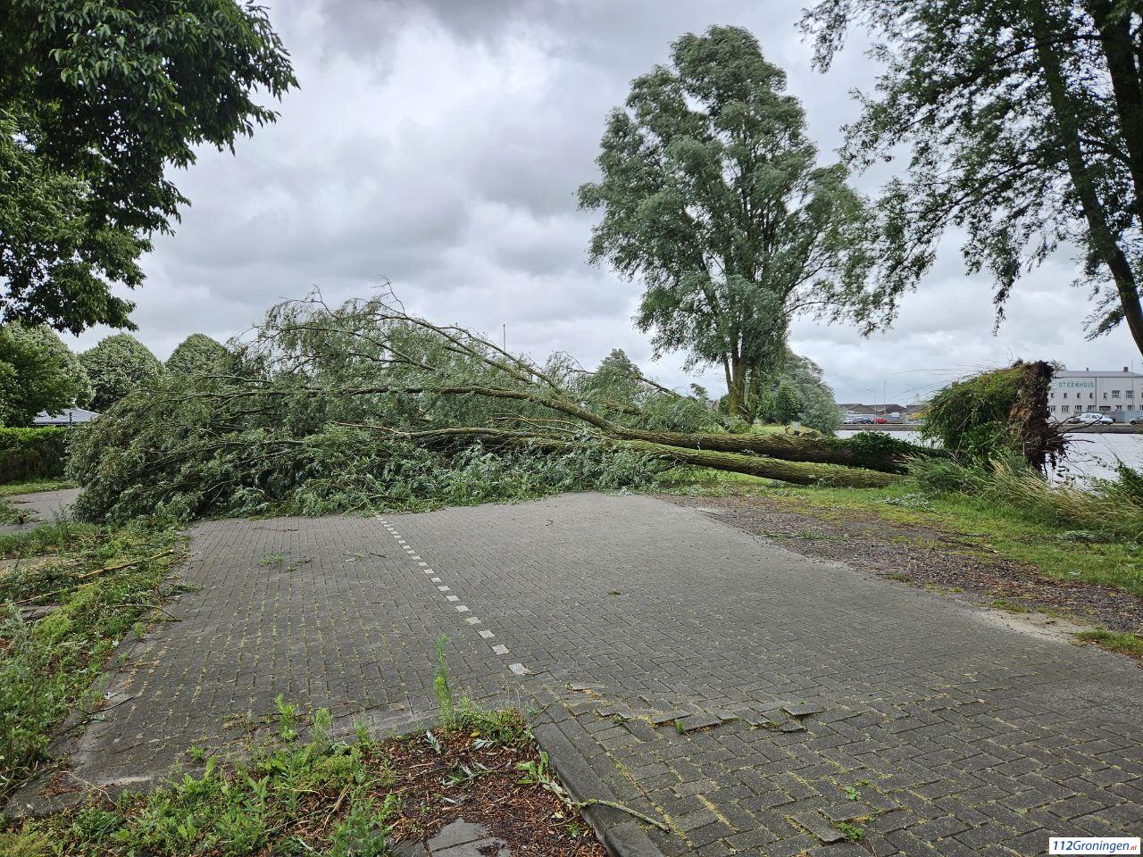 Ook zijn er bomen omgevallen op de Beertsterweg(foto) bij de jachthaven in Winschoten. Op de Avondsterlaan in Paddepoel viel een boom op een BMW meldt een getuige. Bij Ruskenborg kwamen glasplaten van 3 hoog naar beneden. En aan de Purperreige in Wildervank een stormschade. En bij de Ubbo Wilkensstraat in Veendam ook stormschades.