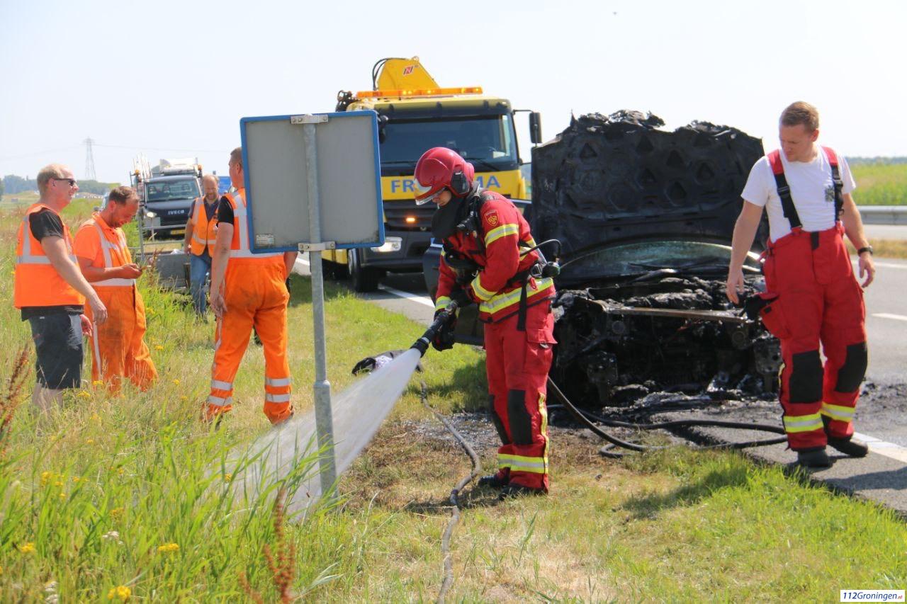 Meeden – Zaterdagmiddag is een deel van een auto volledig uitgebrand, dat gebeurde op de N33 bij Meeden. De brandweer van Veendam kwam ter plaatse om de brand te blussen.
