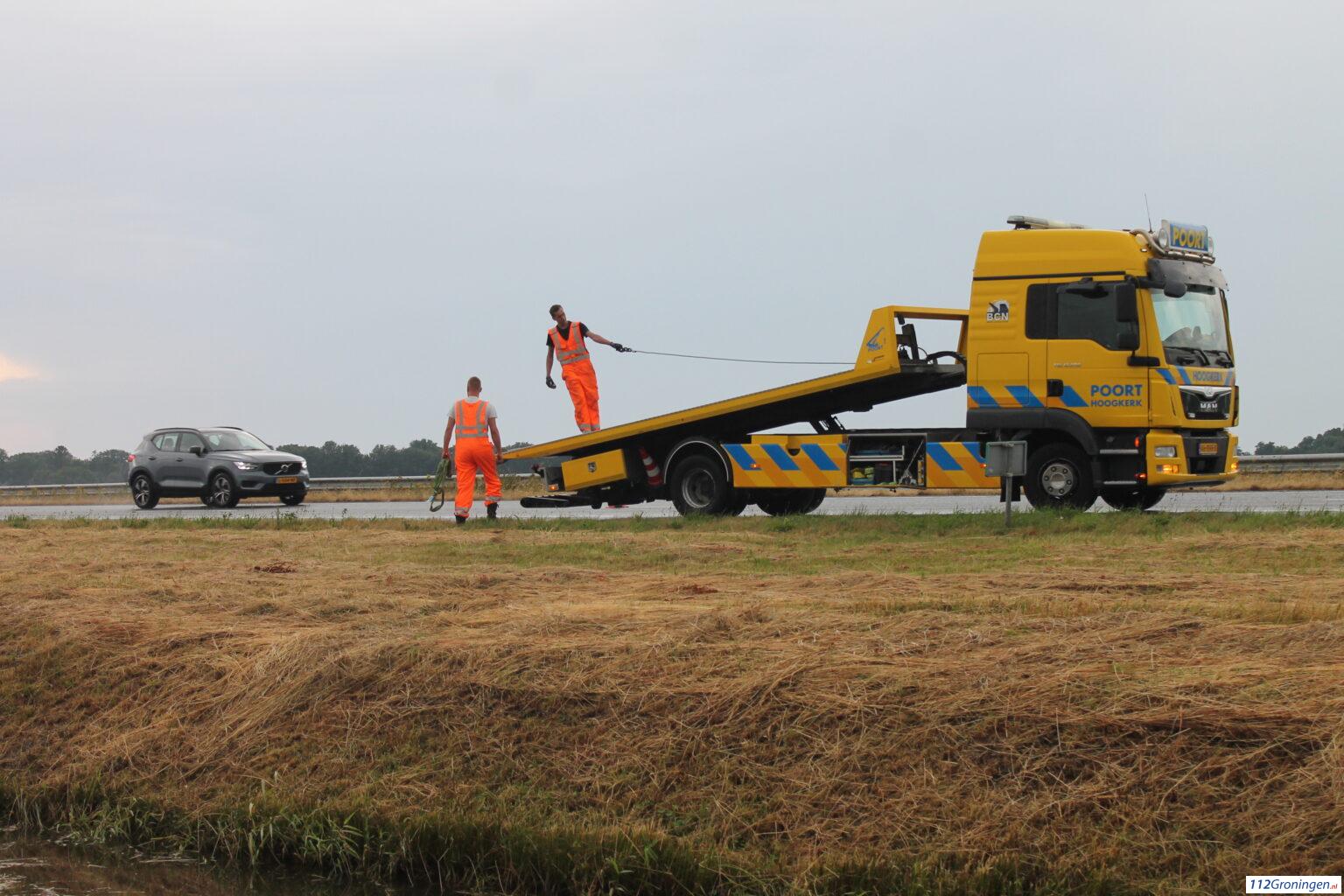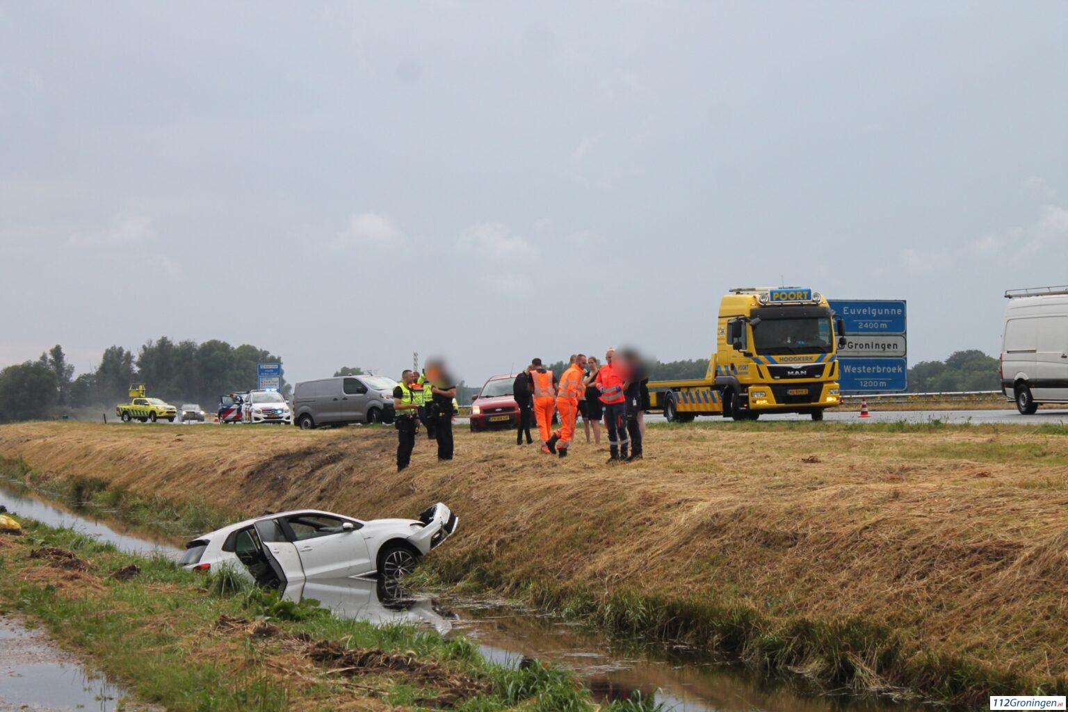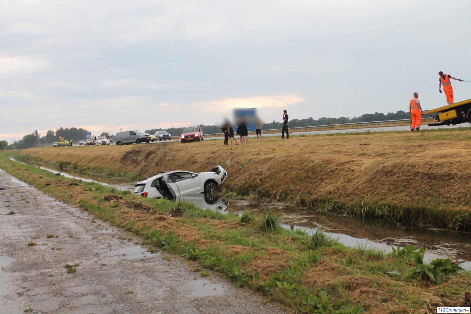 Groningen – Zondagavond kwam er een melding van een auto in de sloot langs de A7, bij het ongeval raakte niemand gewond.