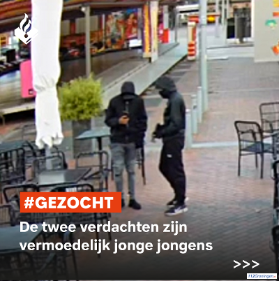 Er zijn duidelijke beelden van de twee verdachten, die gefilmd worden terwijl ze het vuurwapen op een pand aan het Marktplein richten. We delen daarbij het volgende signalement van de twee verdachten: