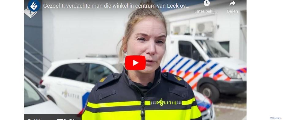 Leek – De politie is op zoek naar de verdachte die op donderdagmiddag 11 mei een winkel aan de Bosweg in Leek overvalt. De verdachte komt rond 15.00 uur de winkel binnen, waar op dat moment twee medewerkers en een klant aanwezig zijn. Hij duwt een van de medewerkers ruw opzij, probeert op of over de balie te springen.
