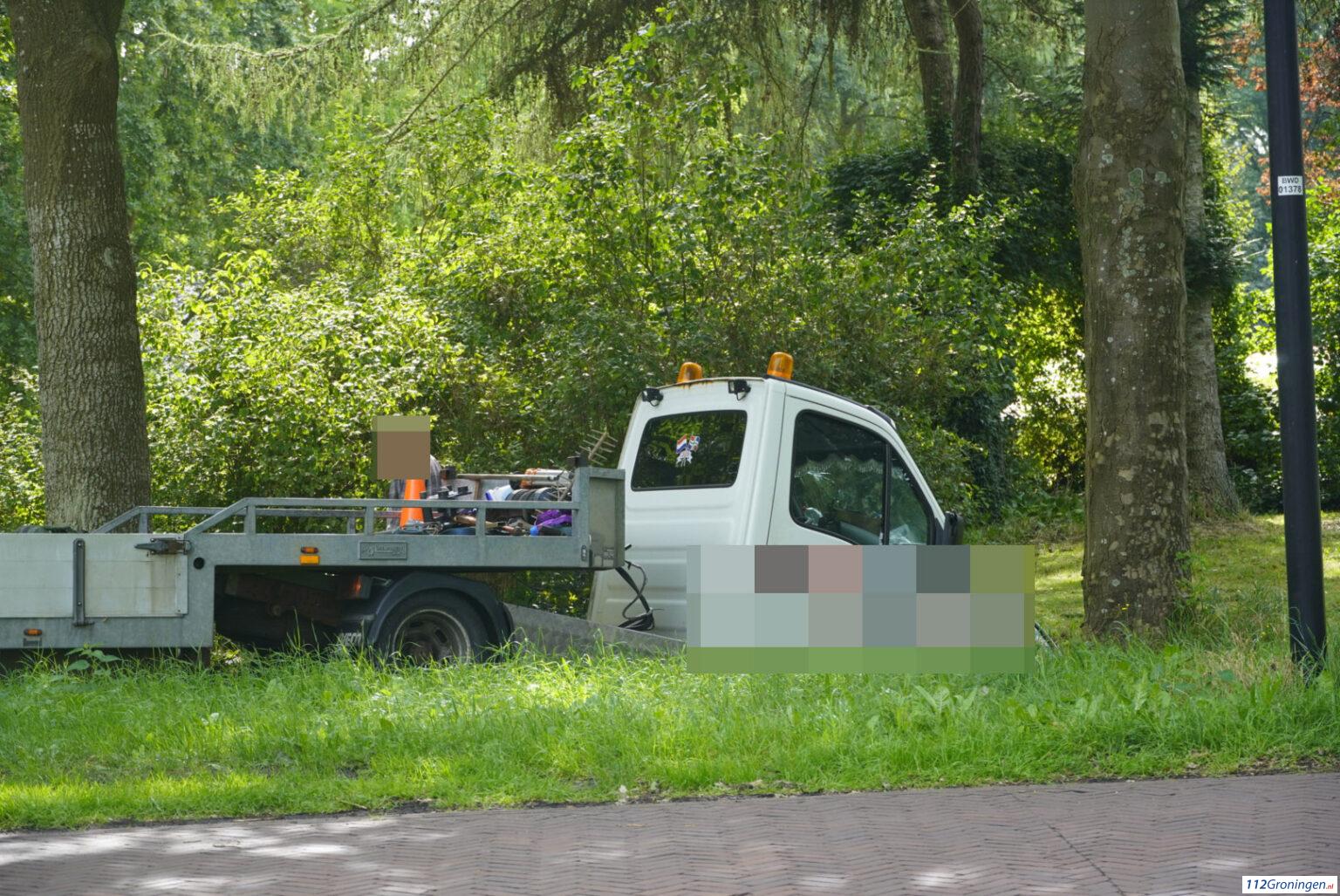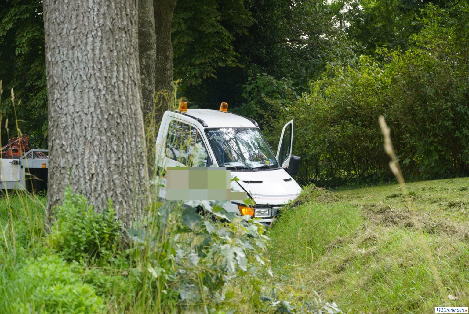 Volgens de bestuurder van de bedrijfswagen met dieplader erachter sloeg de auto op hol midden in een bocht. Hij kwam in een berm terecht voor een tuin van een woning. De persoon werd gecontroleerd in een ambulance maar hoefde niet naar het ziekenhuis. De politie onderzoekt nu wat er exact gebeurd was.