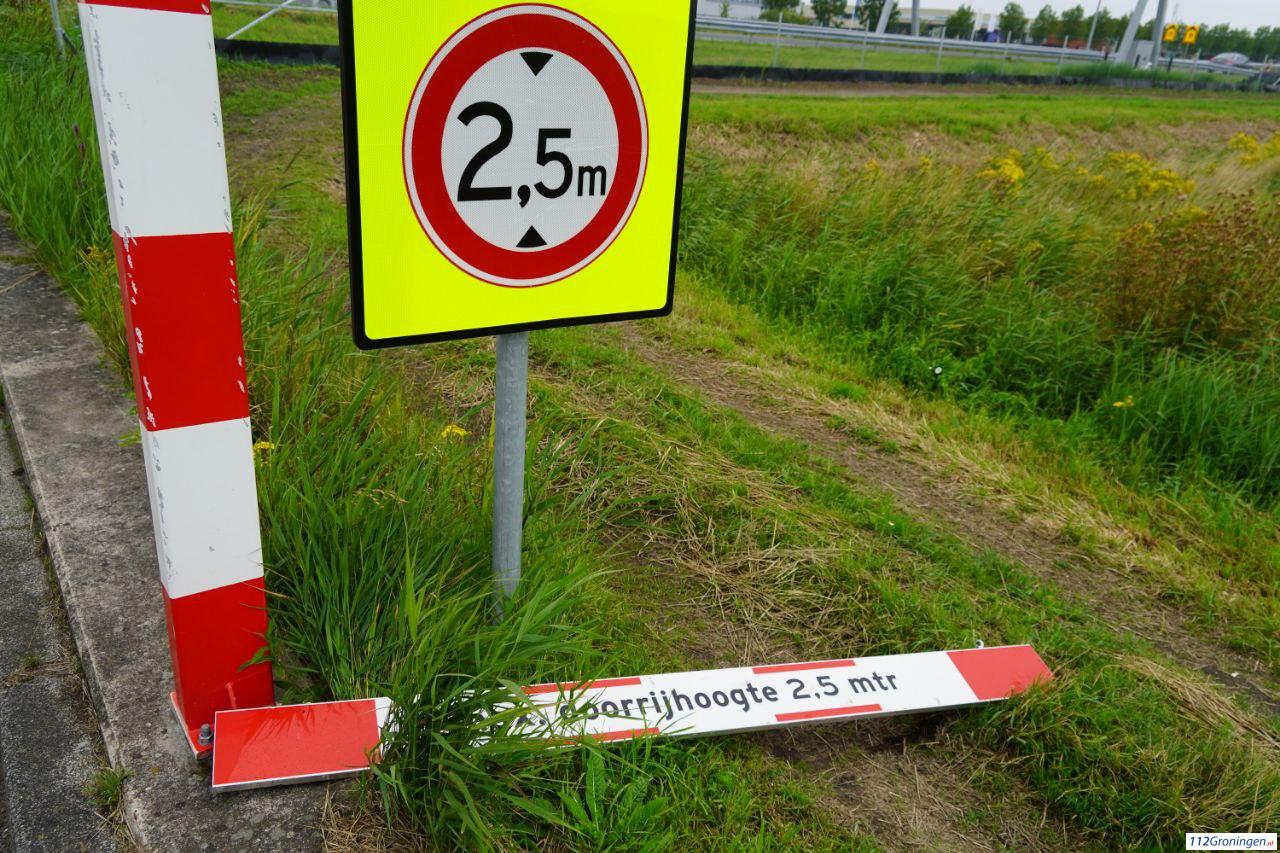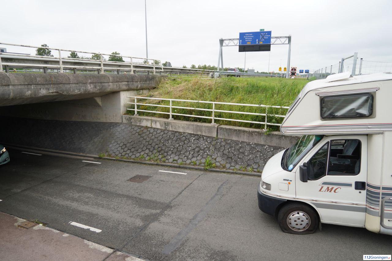 Het viaduct is dus lager. Het gaat vaak mis op deze plek. De Gemeente moet `de bungelende waarschuwingsborden aan de kettingkjes` weer terughangen zegt de eigenaar van de camper, deze liggen in de bosjes. De banden lieten ze leeglopen, zo kon het voertuig met een kapot dakluik en wat schaafplekken er onderweg. Ze zijn alsnog onderweg naar hun vakantiebestemming.