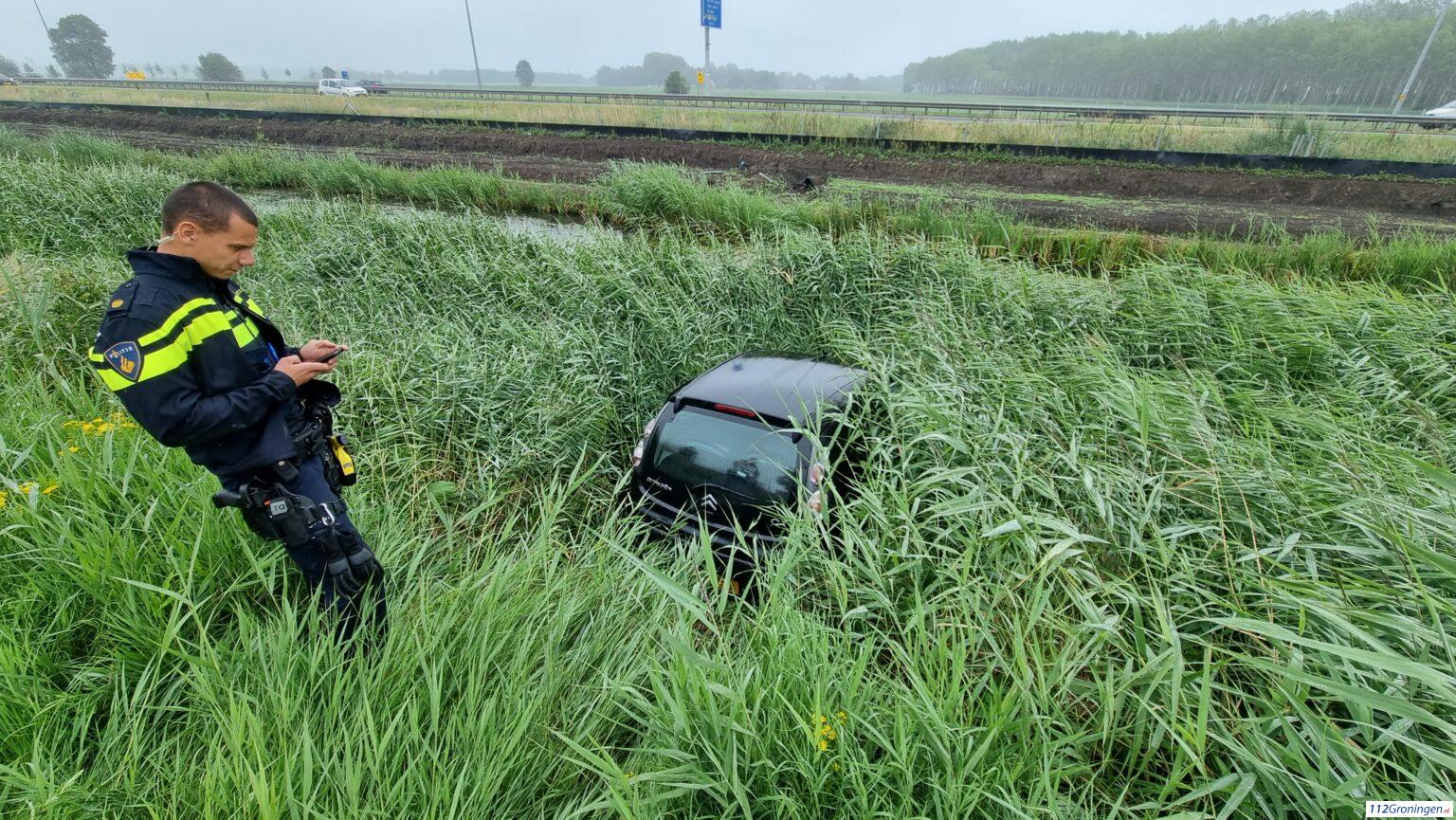 De toedracht is niet bekend. Het gebeurde in de bocht waar vorige week een frontale aanrijding plaats had gevonden. Niemand raakte gewond, wel werd de bestuurder gecontroleerd. De auto werd afgesleept door Poort uit Hoogkerk.