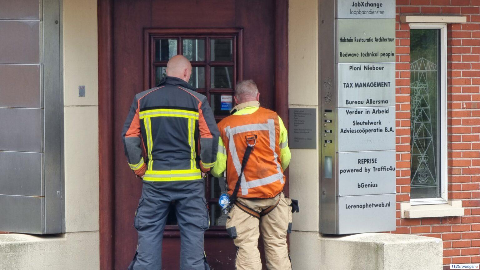 De brandweer heeft de sleutel gekregen van de persoon op het dak en gaan de persoon bevrijden vanuit binnen.
