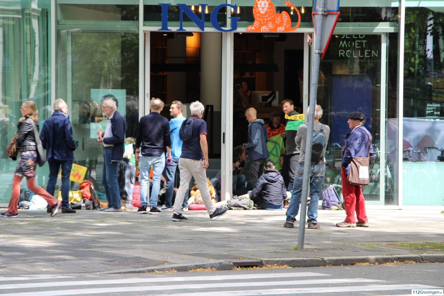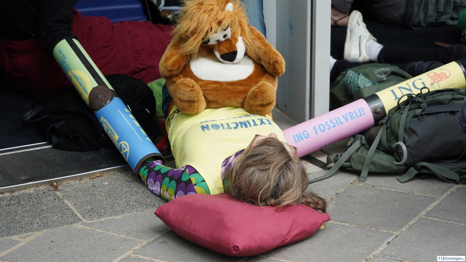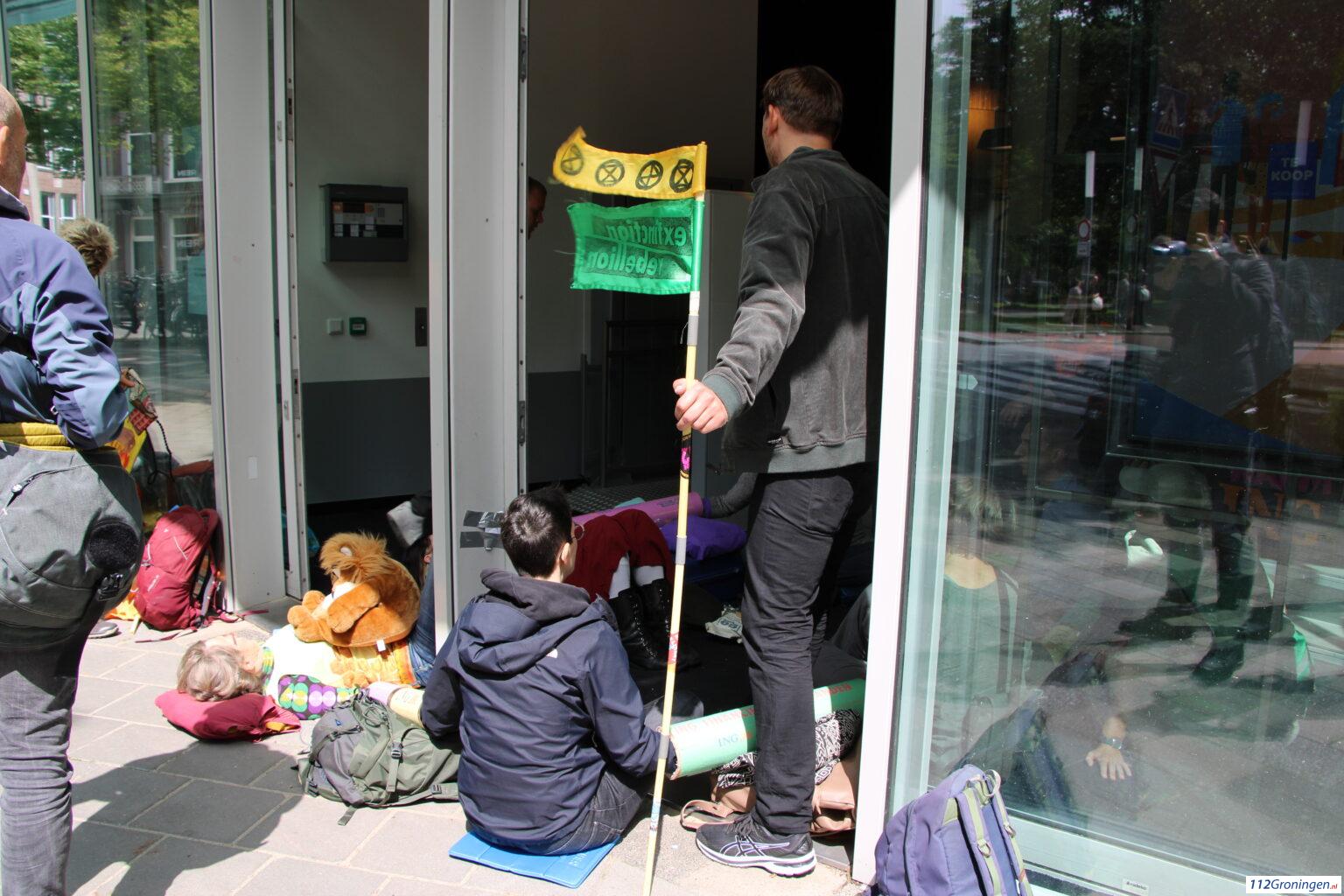 Groningen – Zaterdagmiddag hebben leden van Extinction Rebellion zich vast gemaakt aan elkaar bij de ingang van de ING in Groningen, het ging om het kantoor aan het Hereplein.