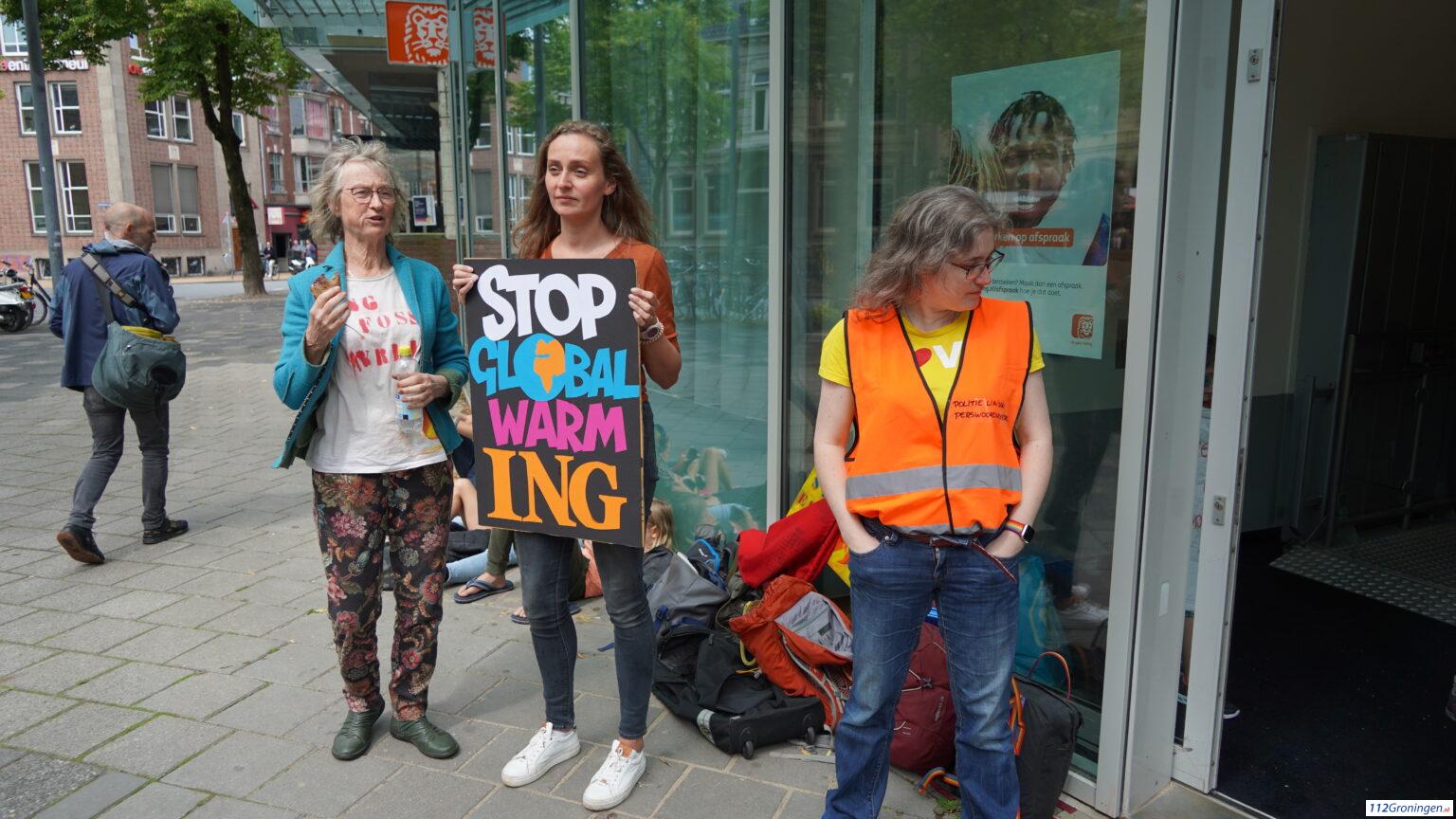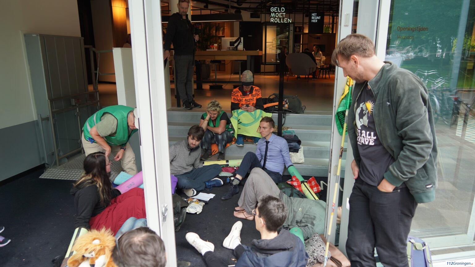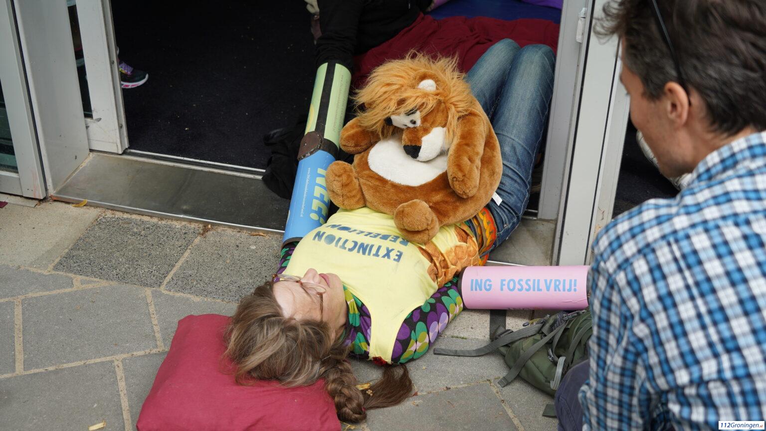 Groningen – Zaterdagmiddag hebben leden van Extinction Rebellion zich vast gemaakt aan elkaar bij de ingang van de ING in Groningen, het ging om het kantoor aan het Hereplein.