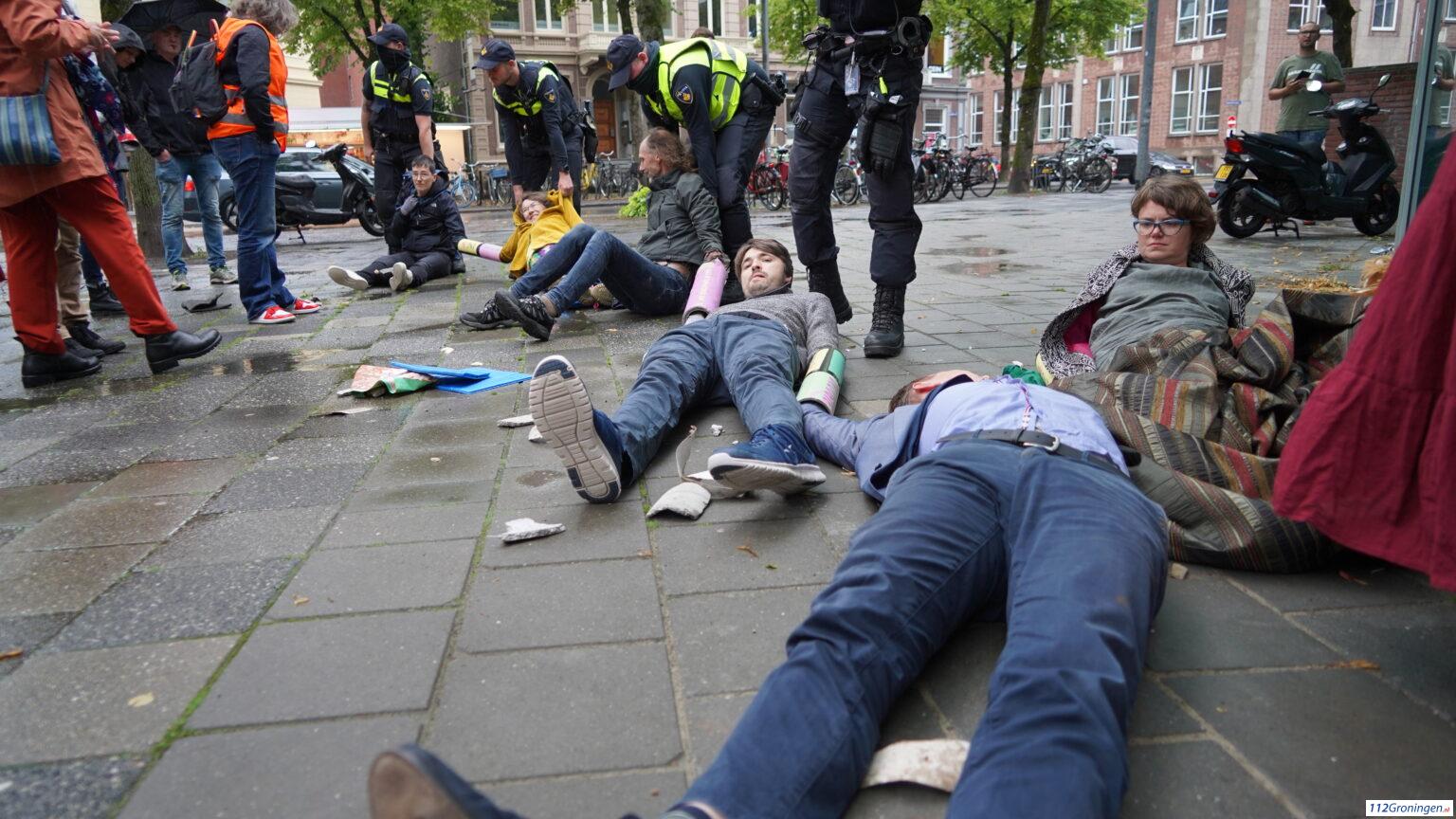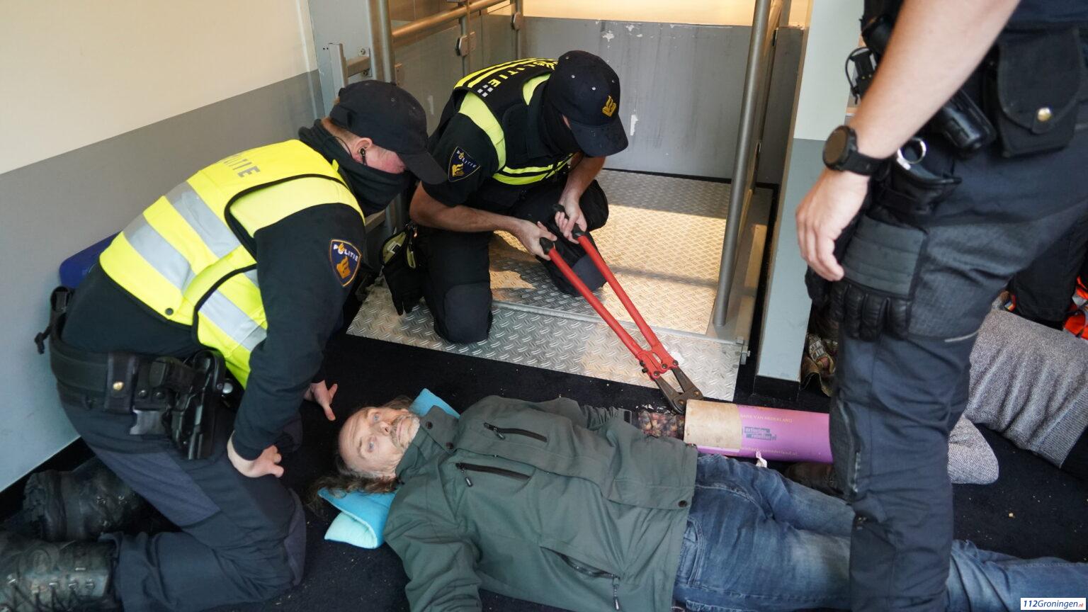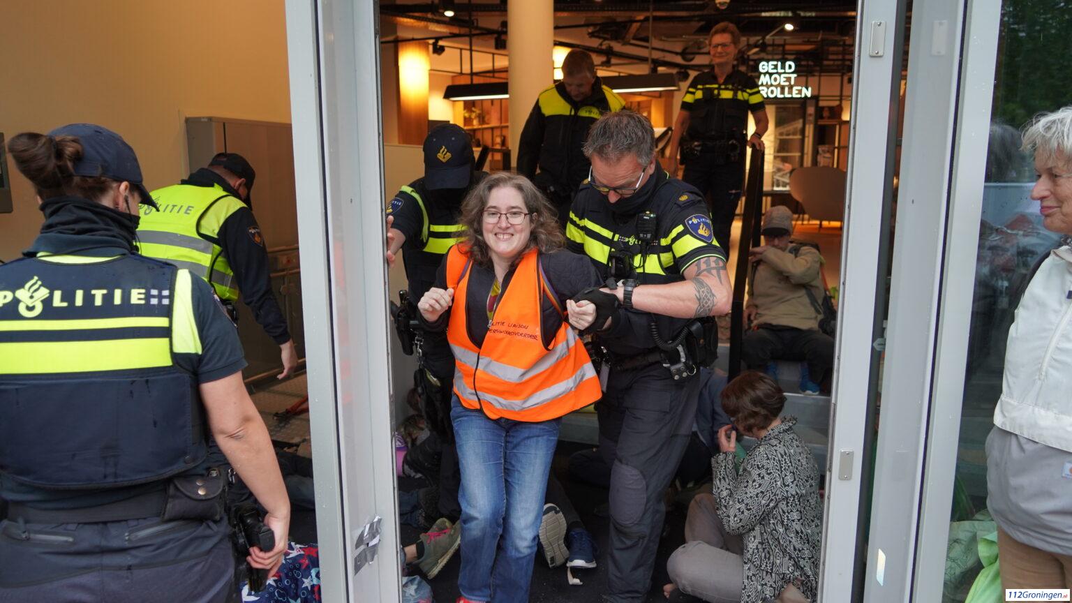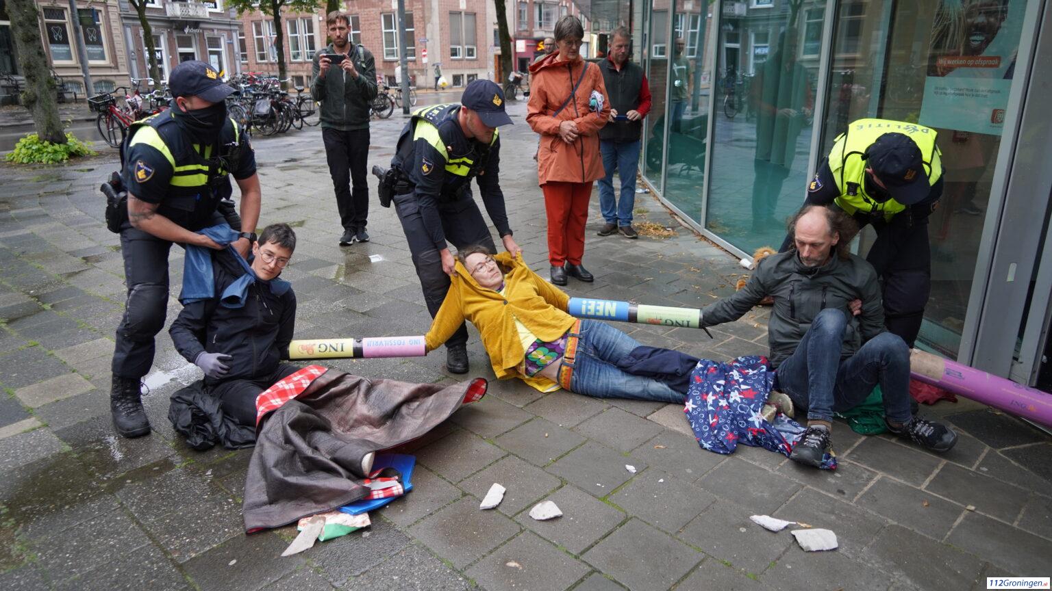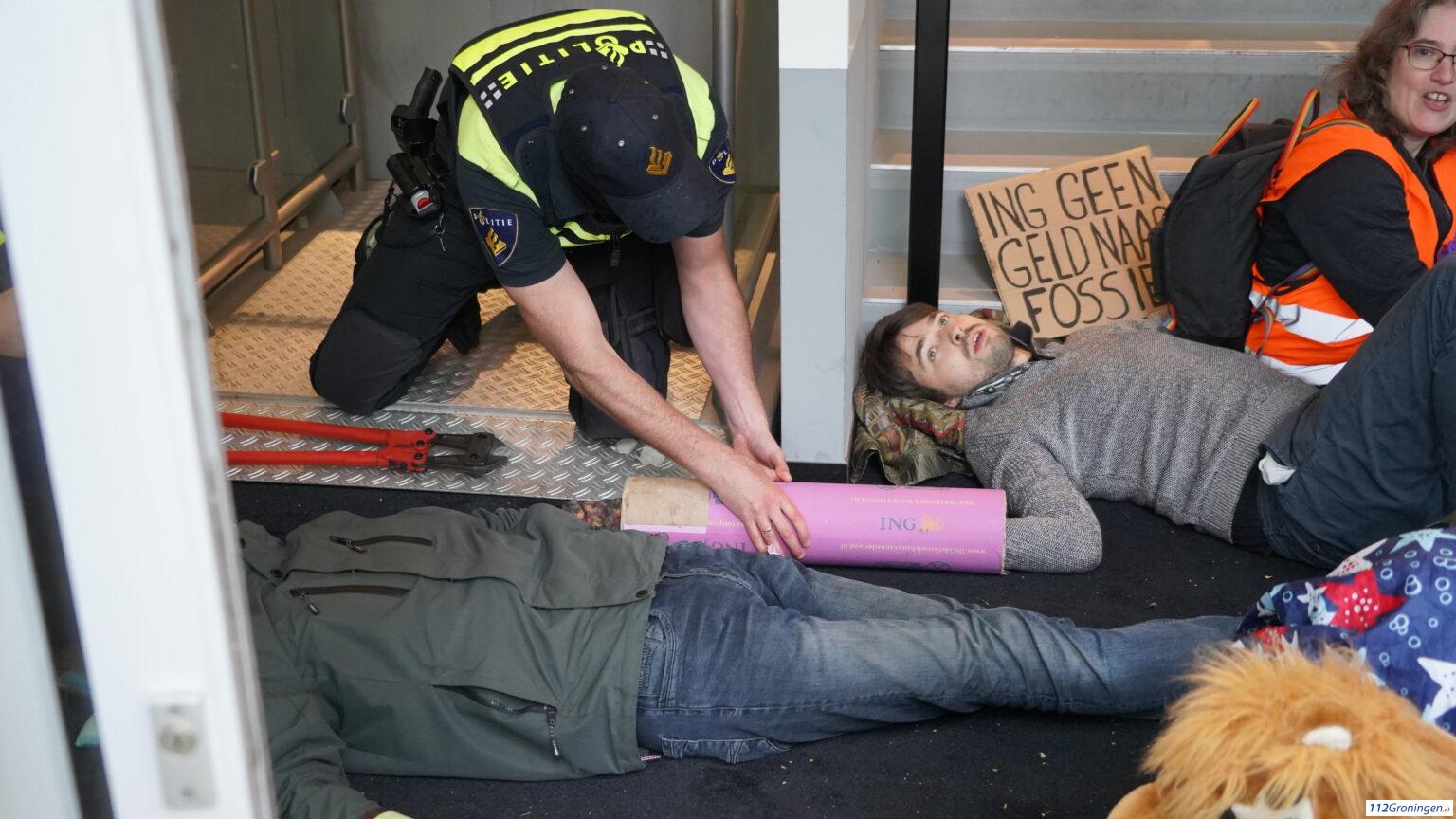 Groningen – Zaterdag aan het einde van de middag heeft politie de demonstranten die in de ingang van het ING gebouw zaten zijn losgeknipt.