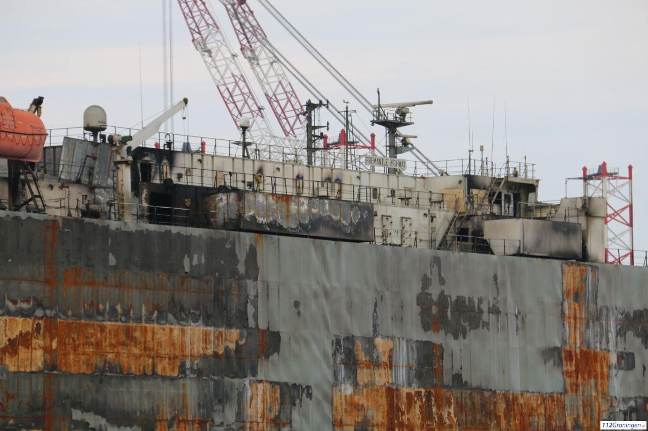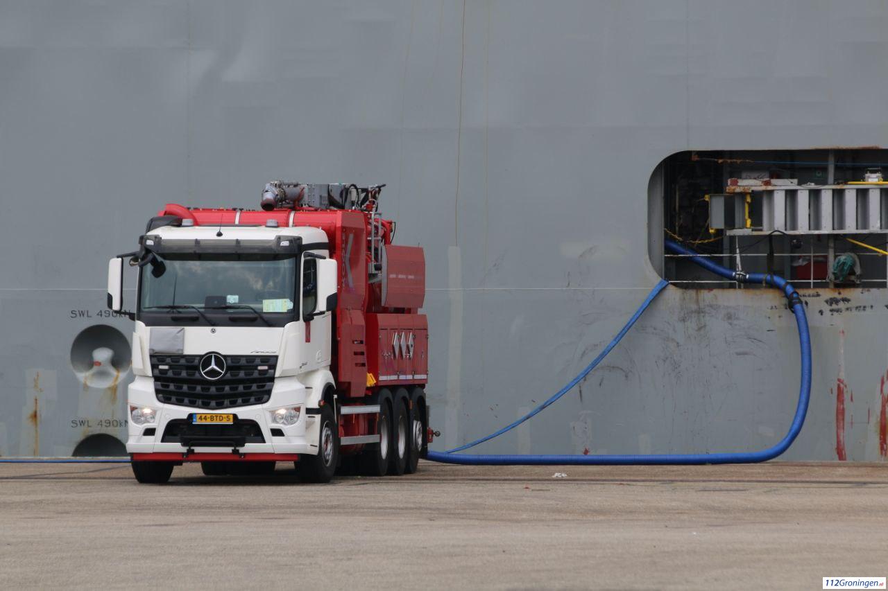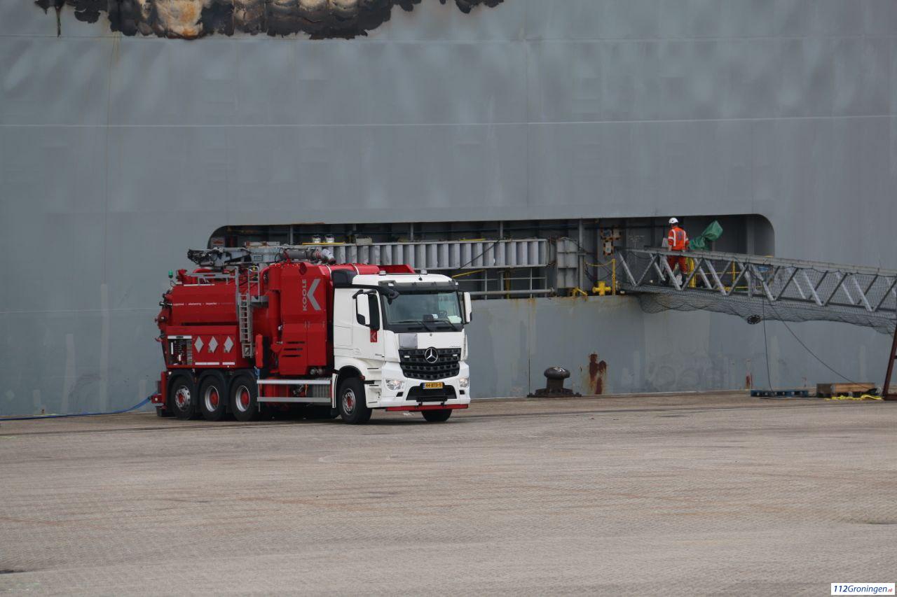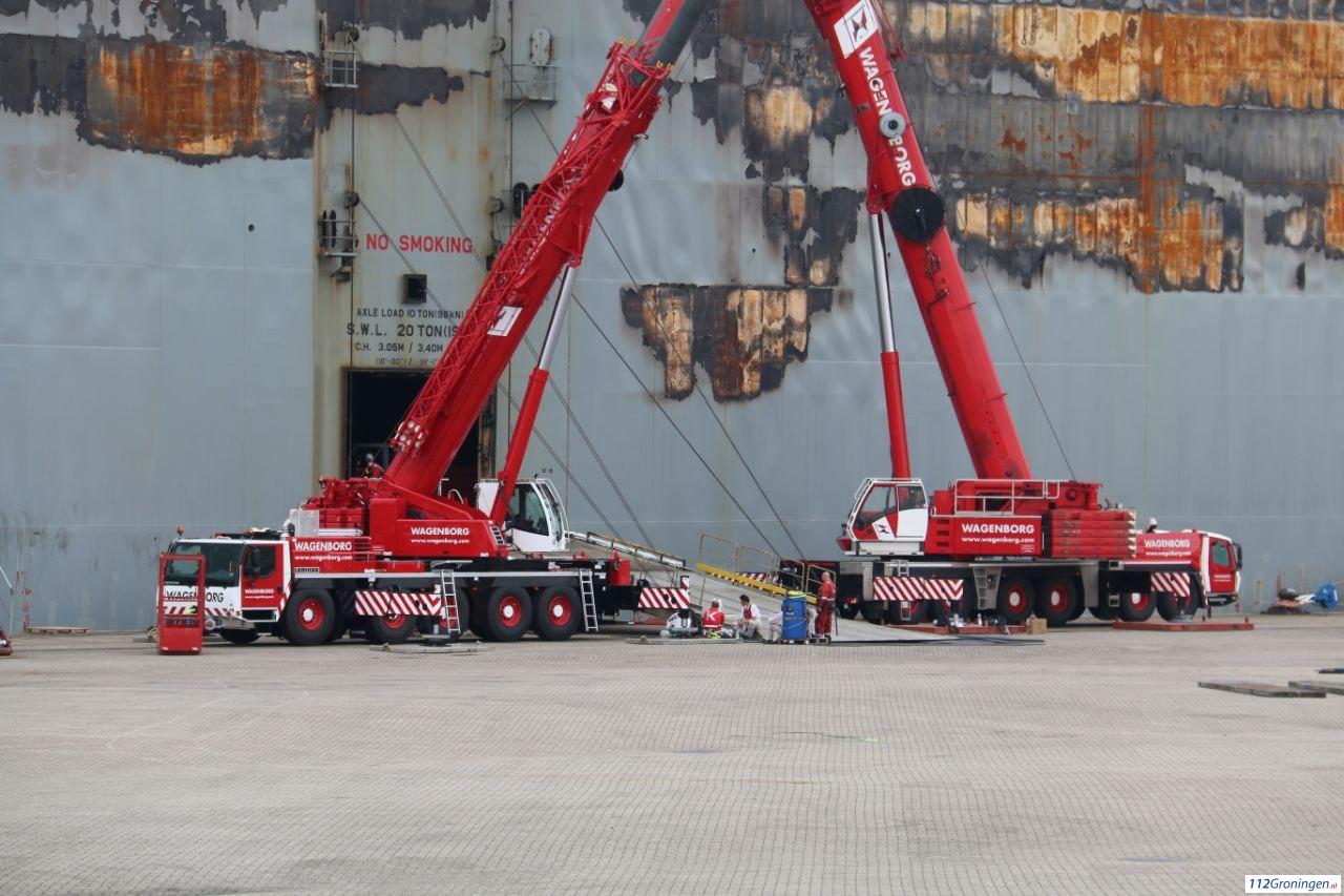 Eemshaven – Bergingsbedrijven zijn zaterdagochtend begonnen met het van boord halen van de auto’s aan boord van vrachtschip Fremantle Highway.