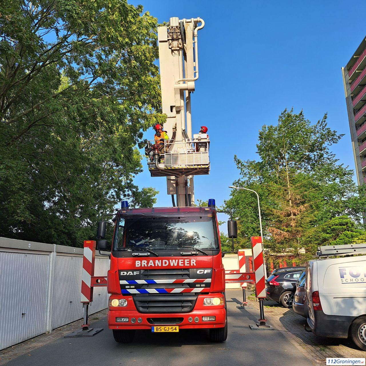 De brandweer kwam ter plaatse aan de Kustweg in Delfzijl. Met een hoogwerker en een ladder probeerde men de kat uit de boom te halen maar dat lukte niet. De brandweer heeft uiteindelijk de kat uit de boom gespoten.