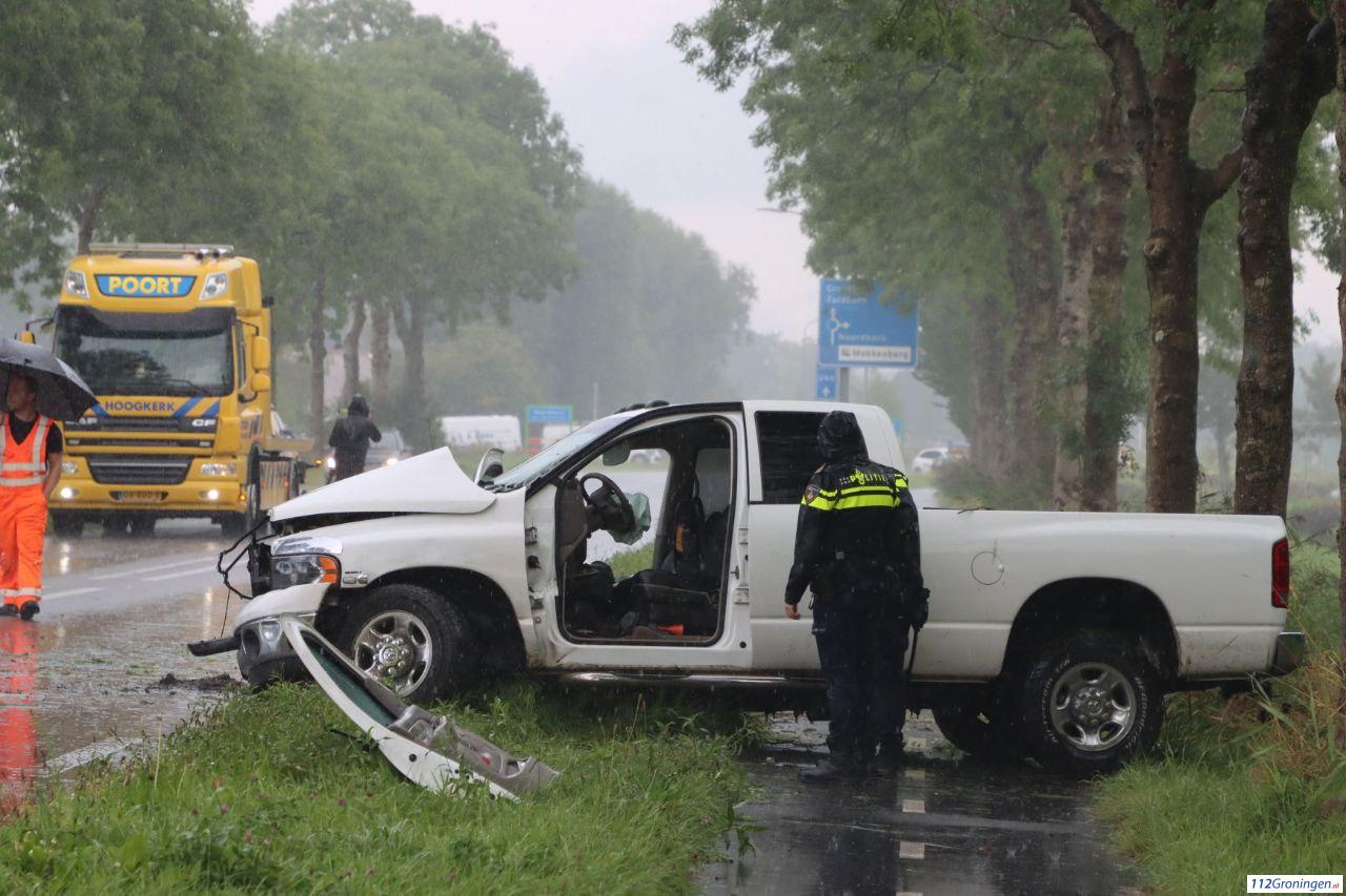 Een pick-up was van de weg geraakt en tegen een boom tot stilstand gekomen. Verschillende hulpdiensten, waaronder de brandweer en het Mobiel medisch team kwamen ter plaatse. Bij het ongeval zou mogelijk een persoon gewond zijn geraakt.