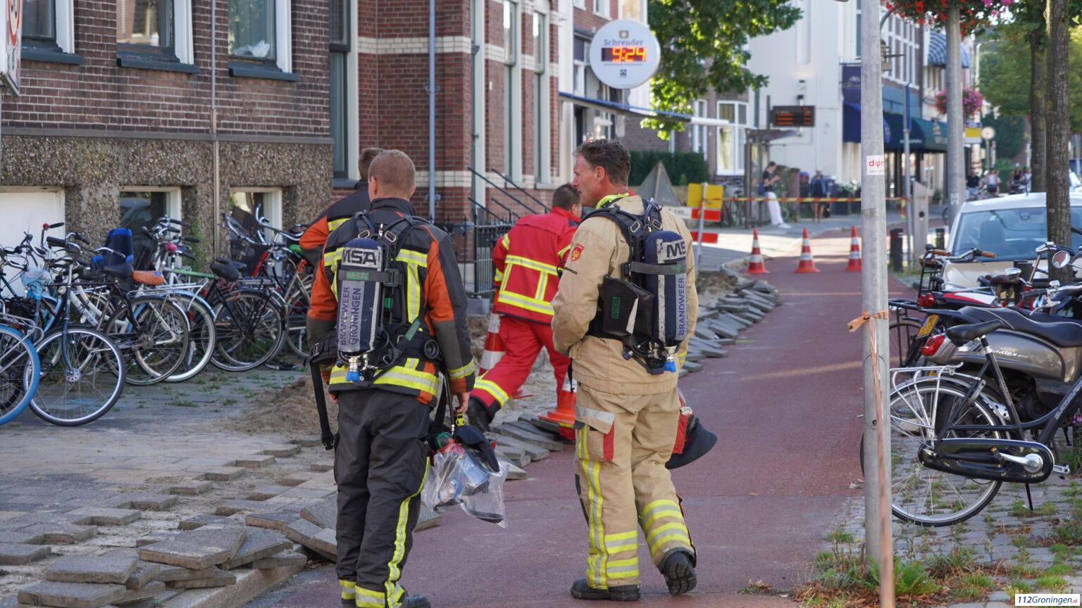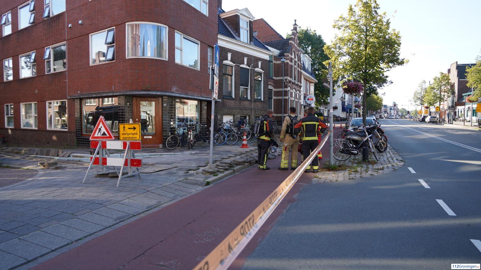 Groningen- Op de Verlengde Hereweg/Helper Oostsingel is tijdens het aanleggen van glasvezel donderdagmorgen een gasleiding geraakt.