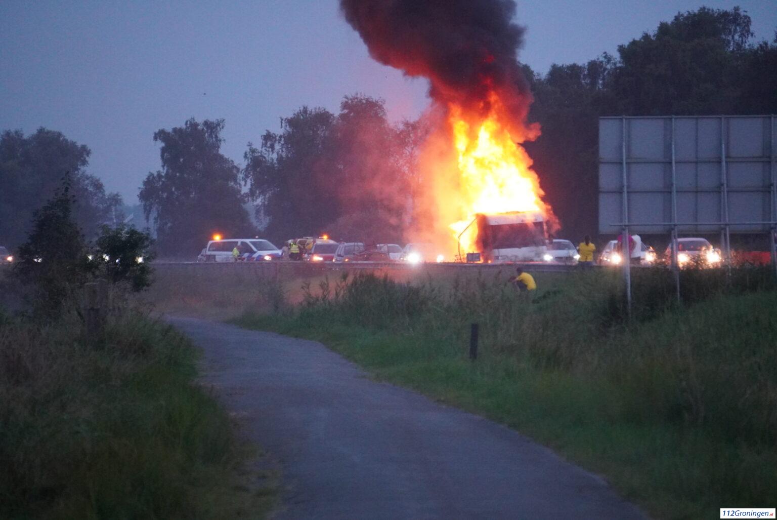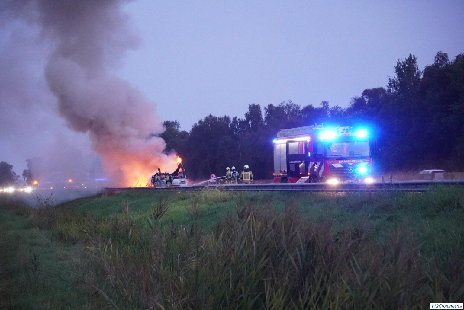 Haren – Zondagavond kwam er een melding van een brand wegvervoer op de A28 ter hoogte van Haren, ter plaatse stond een camper volledig in de brand. Veel mensen waren getuige van de vuurzee.