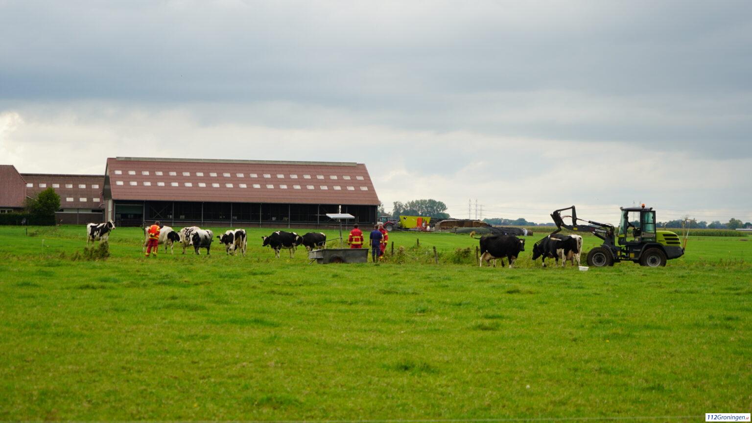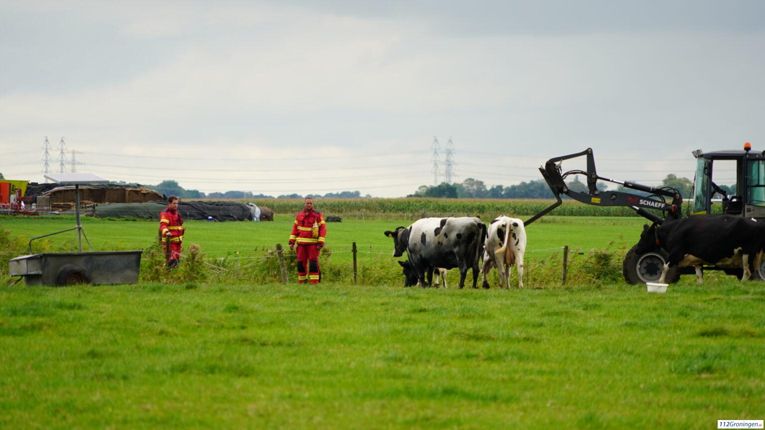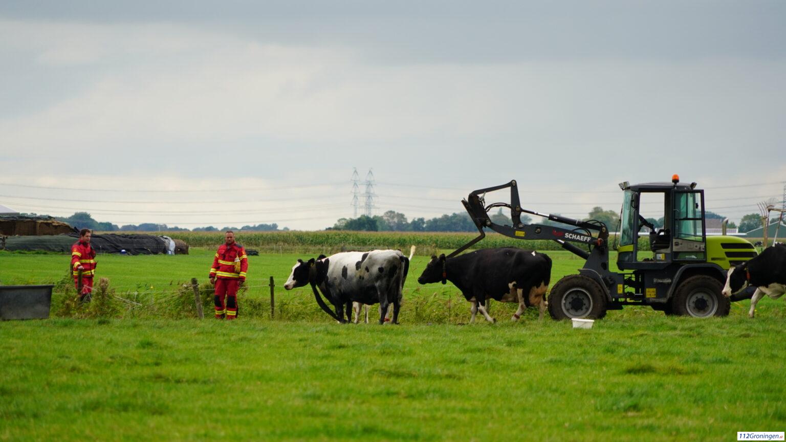 Ter plaatse bleek het te gaan om een koe die in een sloot was geraakt. De brandweer heeft samen met hulp van een shovel van de boer de koe weer op het land gekregen.
