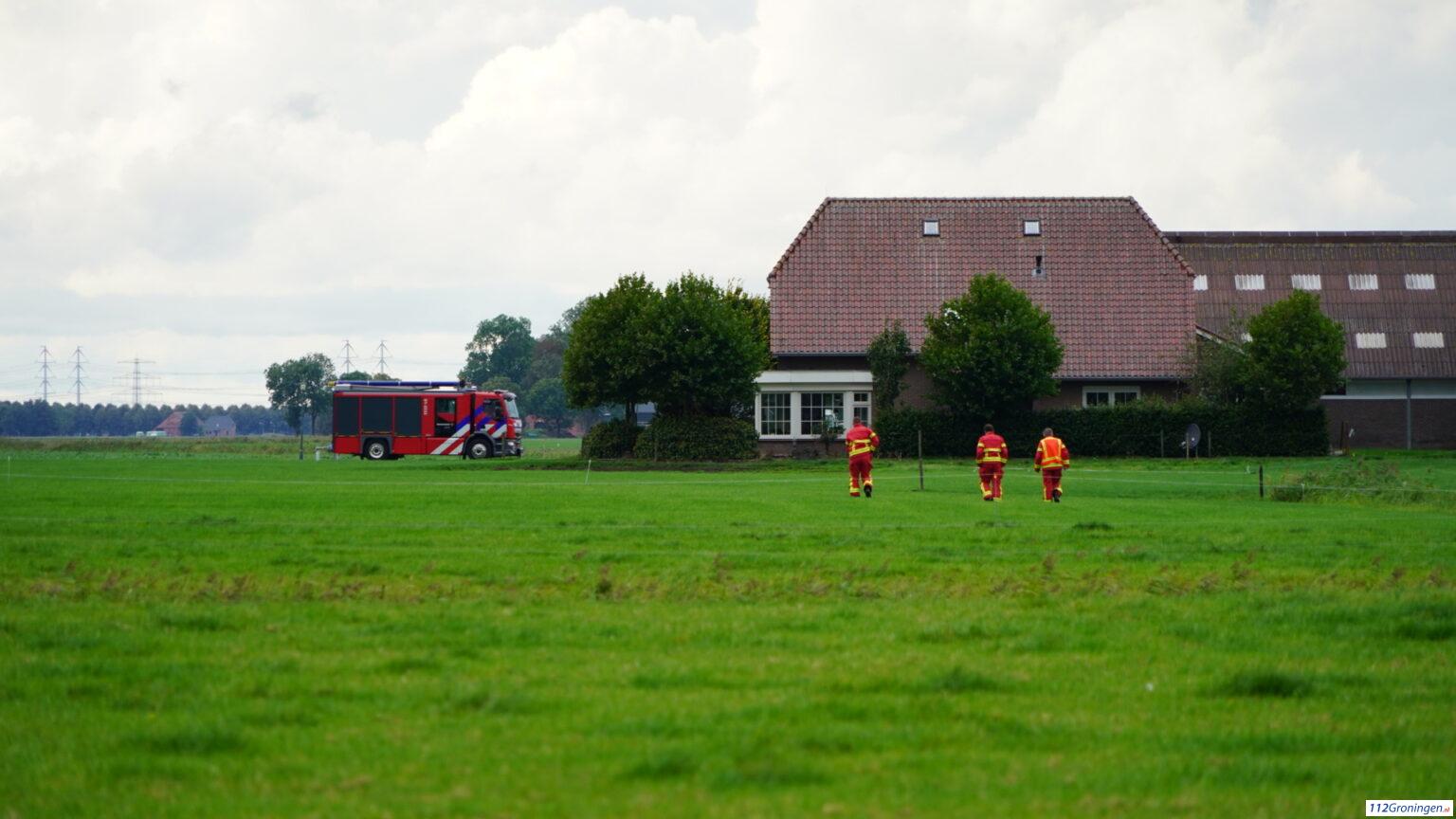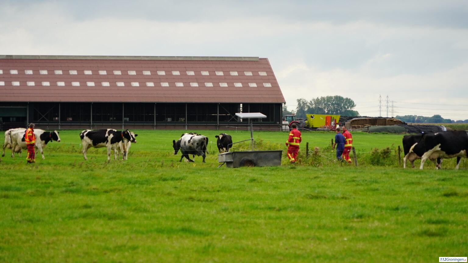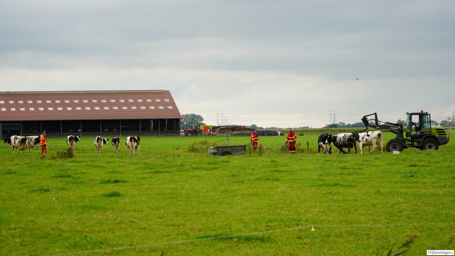 Ter plaatse bleek het te gaan om een koe die in een sloot was geraakt. De brandweer heeft samen met hulp van een shovel van de boer de koe weer op het land gekregen.