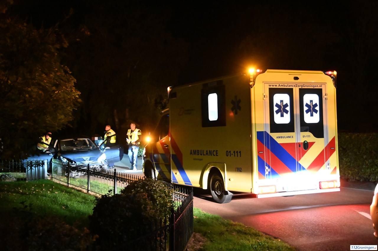De bestuurder is met zijn auto in een bocht op een steen gebotst. Een van de inzittende is mee met de ambulance voor verdere controle.