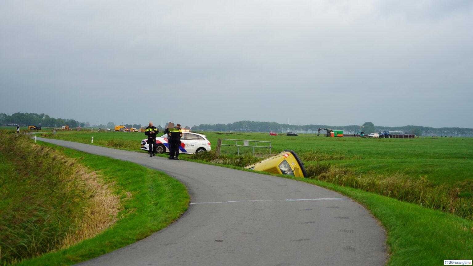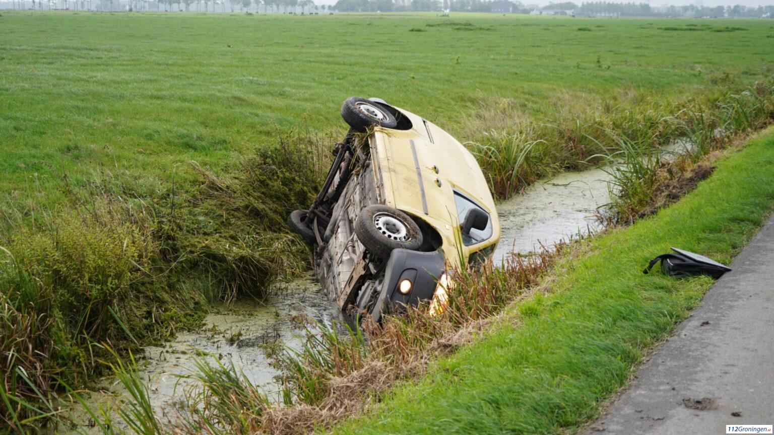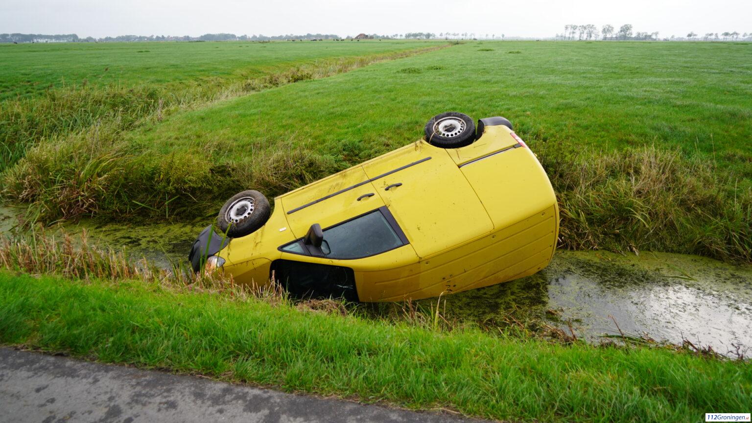Adorp – Aan de Paddestoelsterweg bij Adorp is dinsdagmorgen een bestelbusje op de kop in de sloot terecht gekomen, de exacte toedracht wordt onderzocht door de politie.