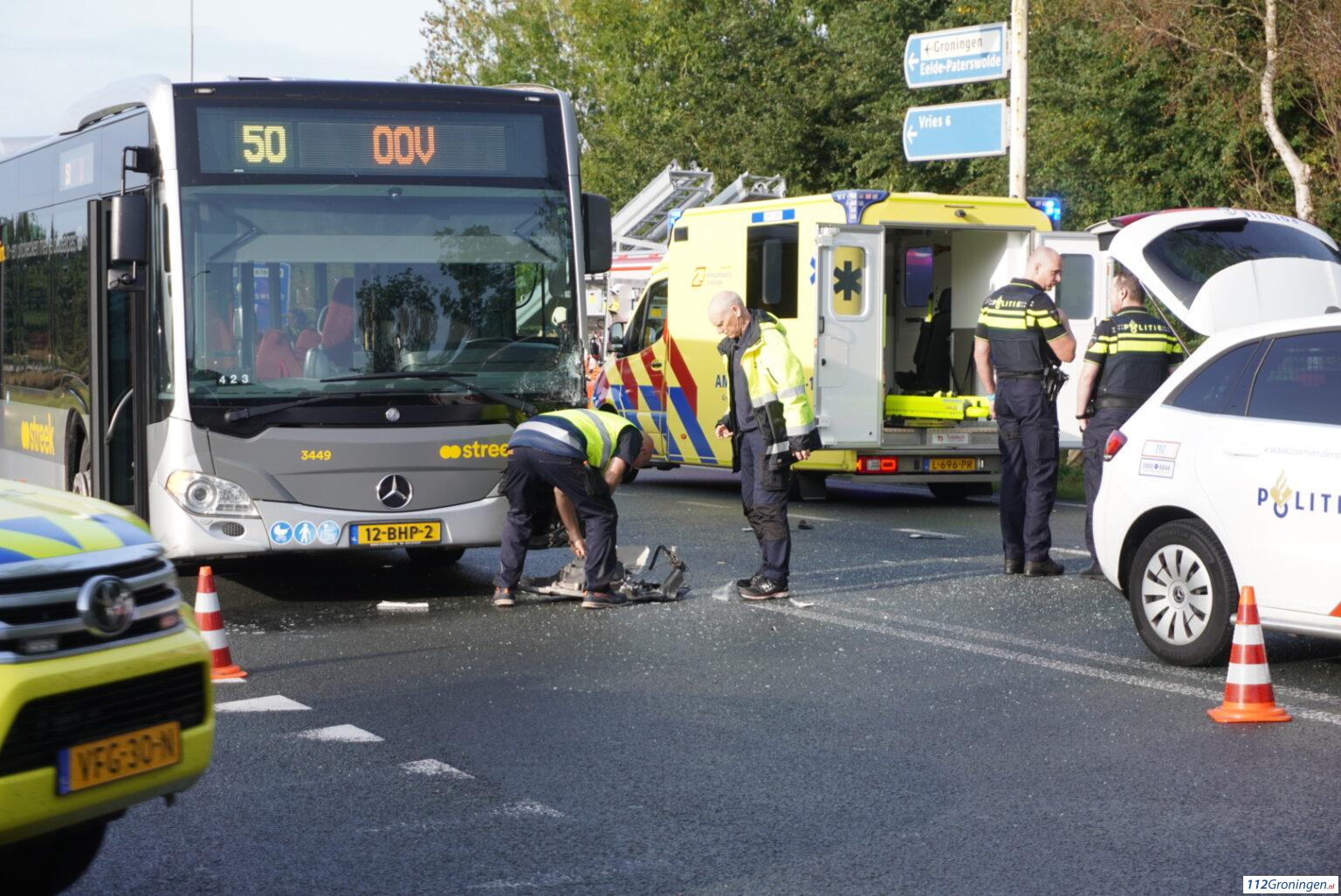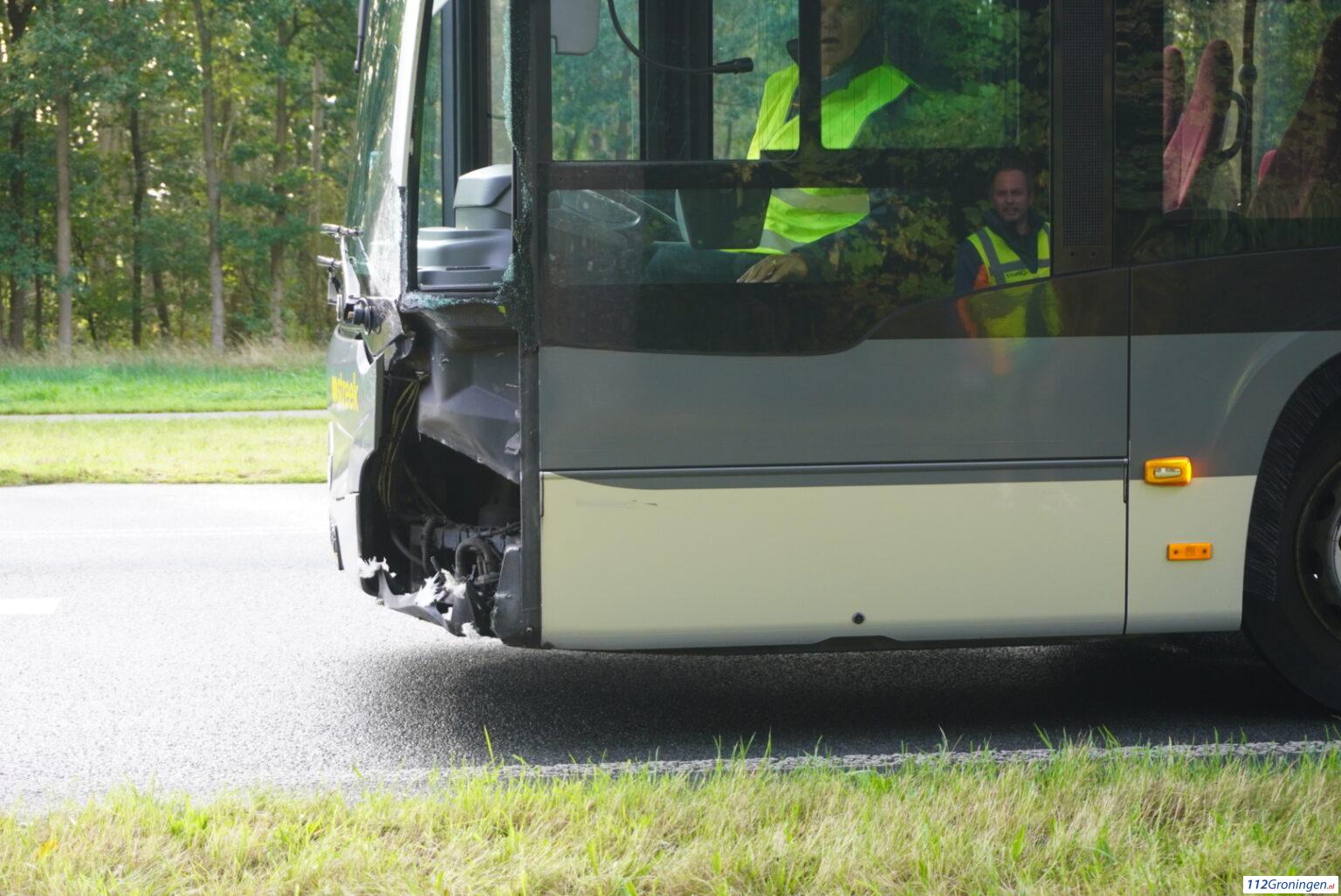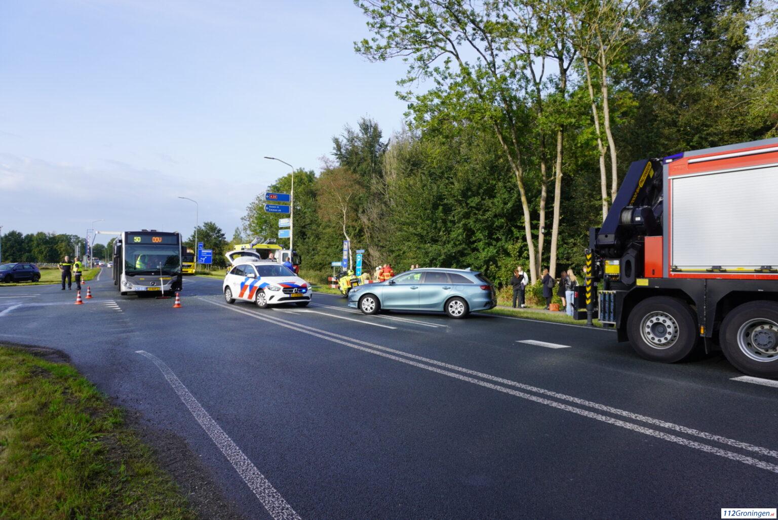 De Punt – Nabij de A28 bij De Punt zijn door nog onbekende oorzaak woensdagmorgen een bus en een auto tegen elkaar aan gebotst. De auto kwam daarbij in een sloot terecht.